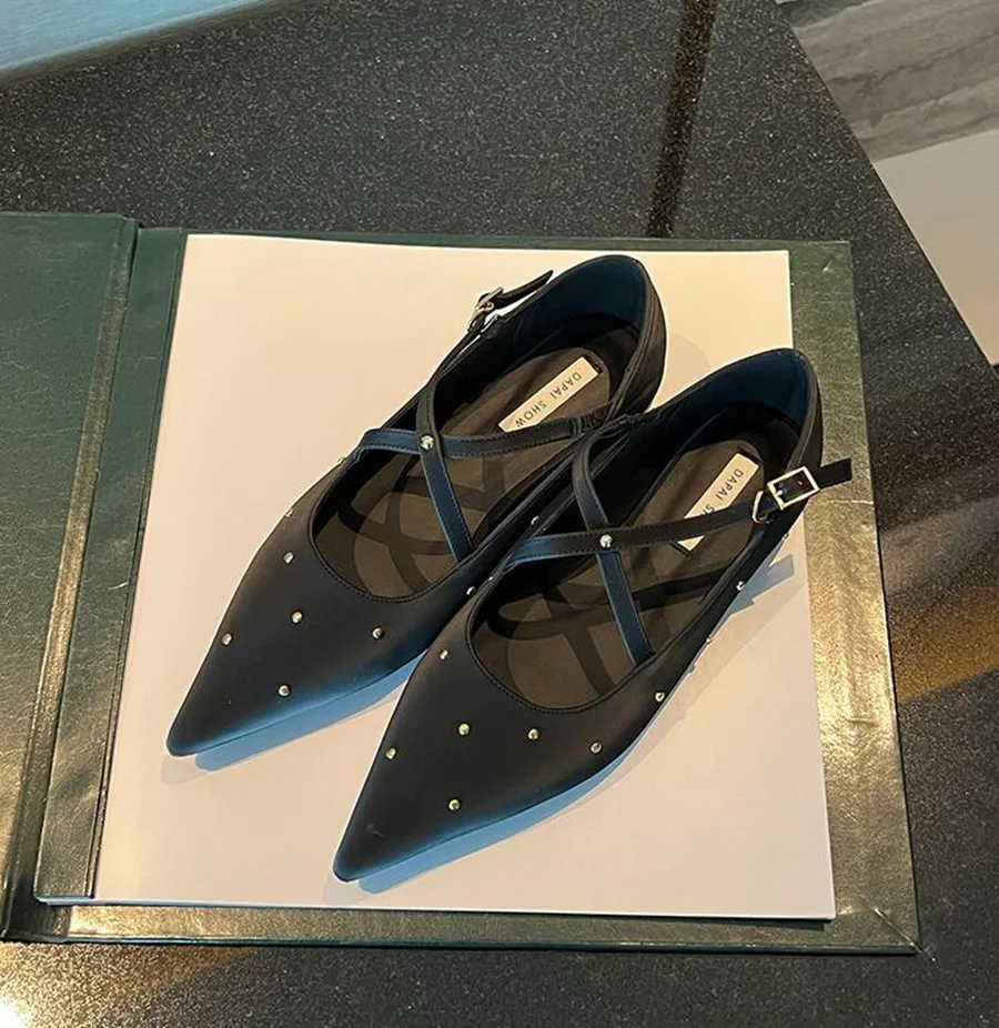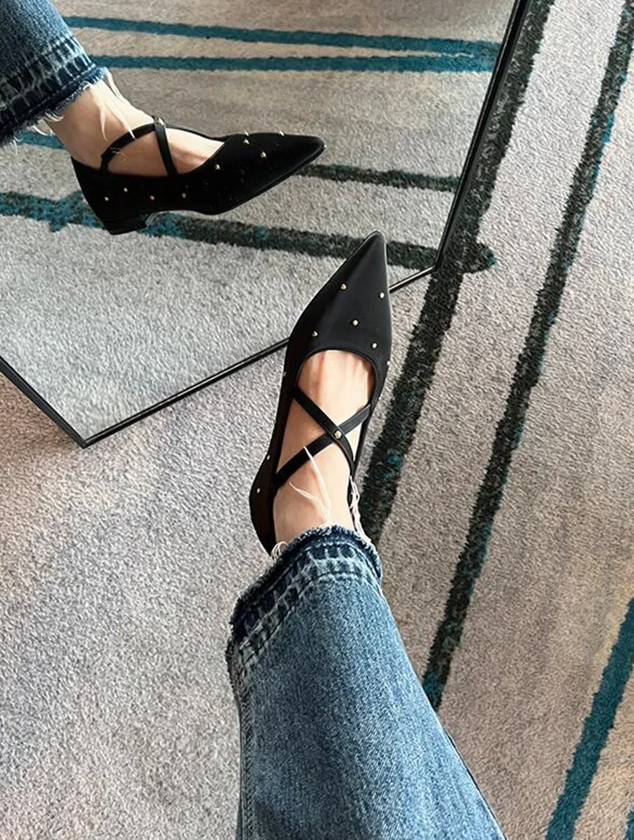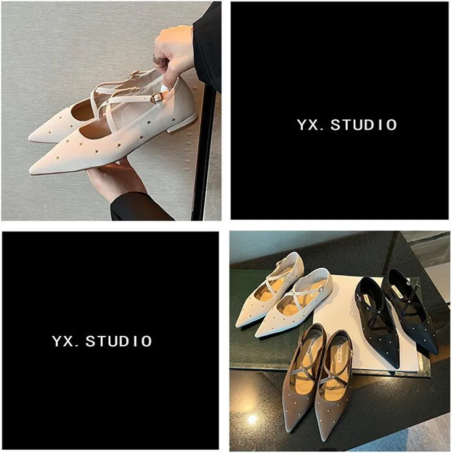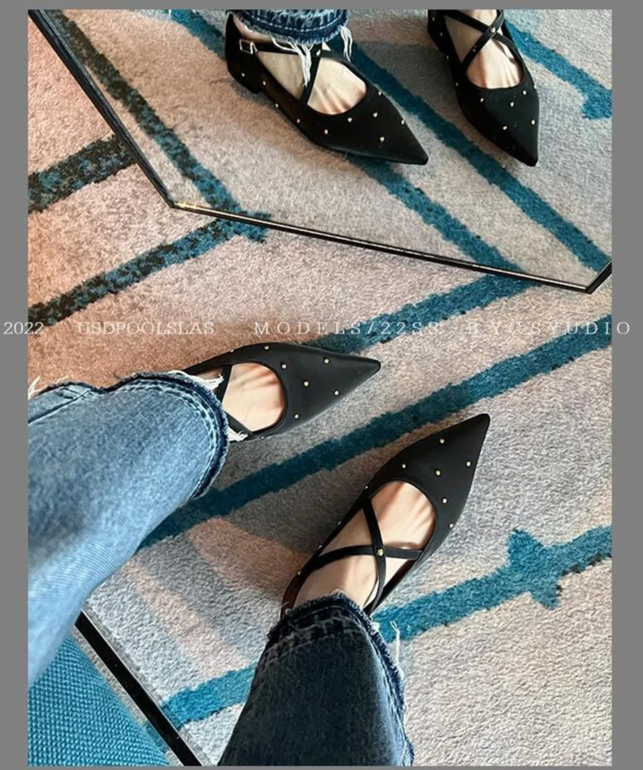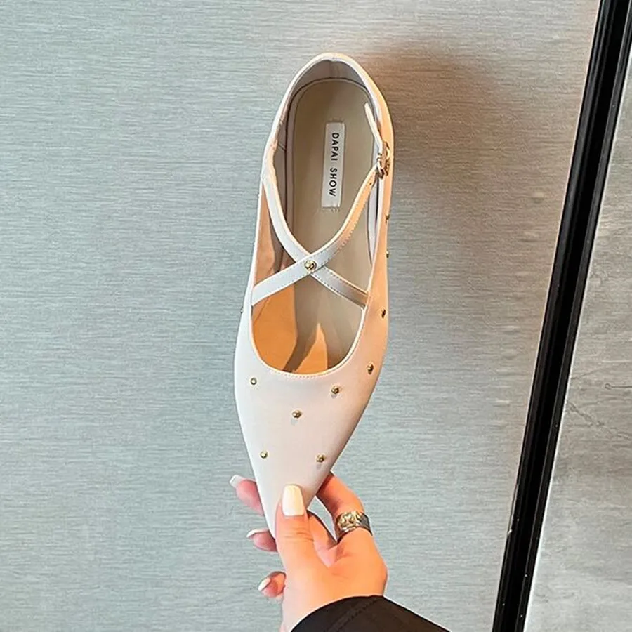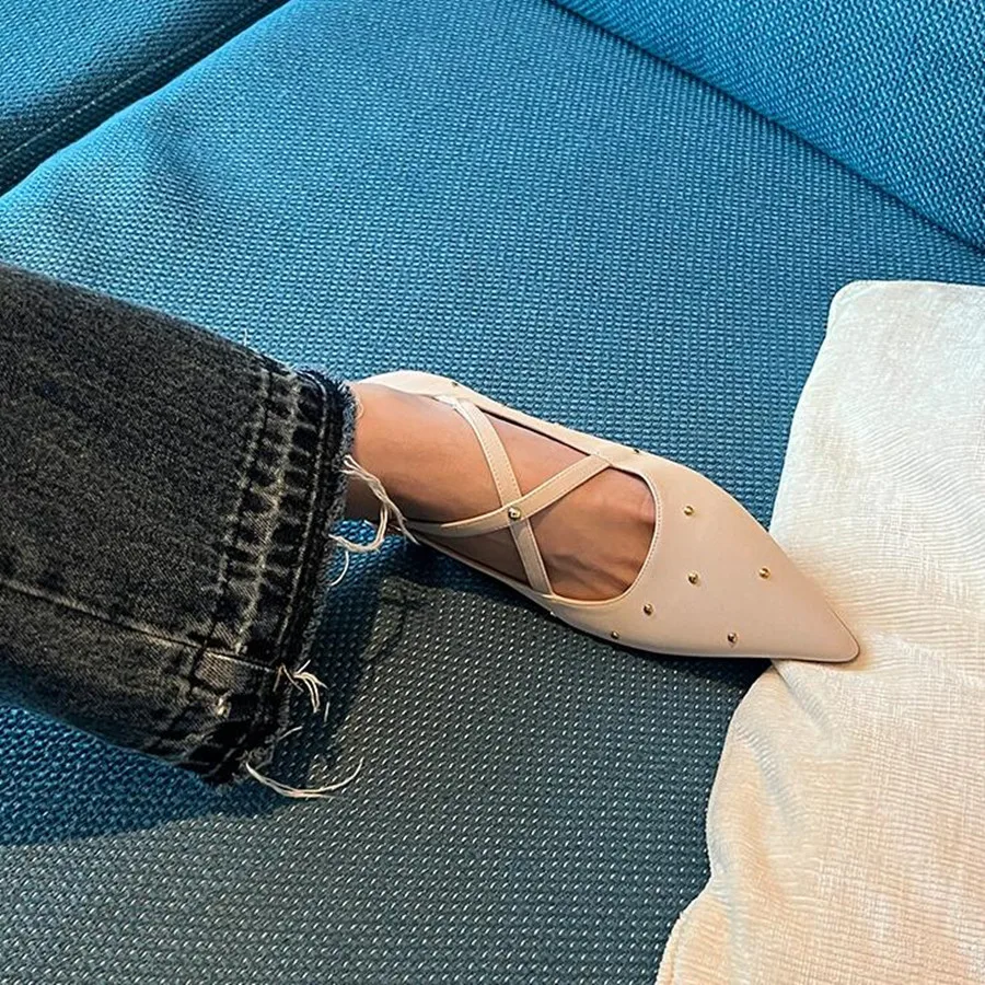 Advbridge - New Women Rivet Cross Flat Shoes Fashion Pointed Toe Shallow Ladies Elegant Dress Shoes Falt Heel Casual Ballet Shoes
