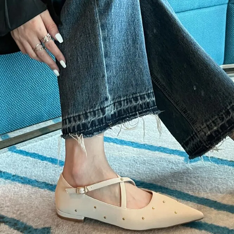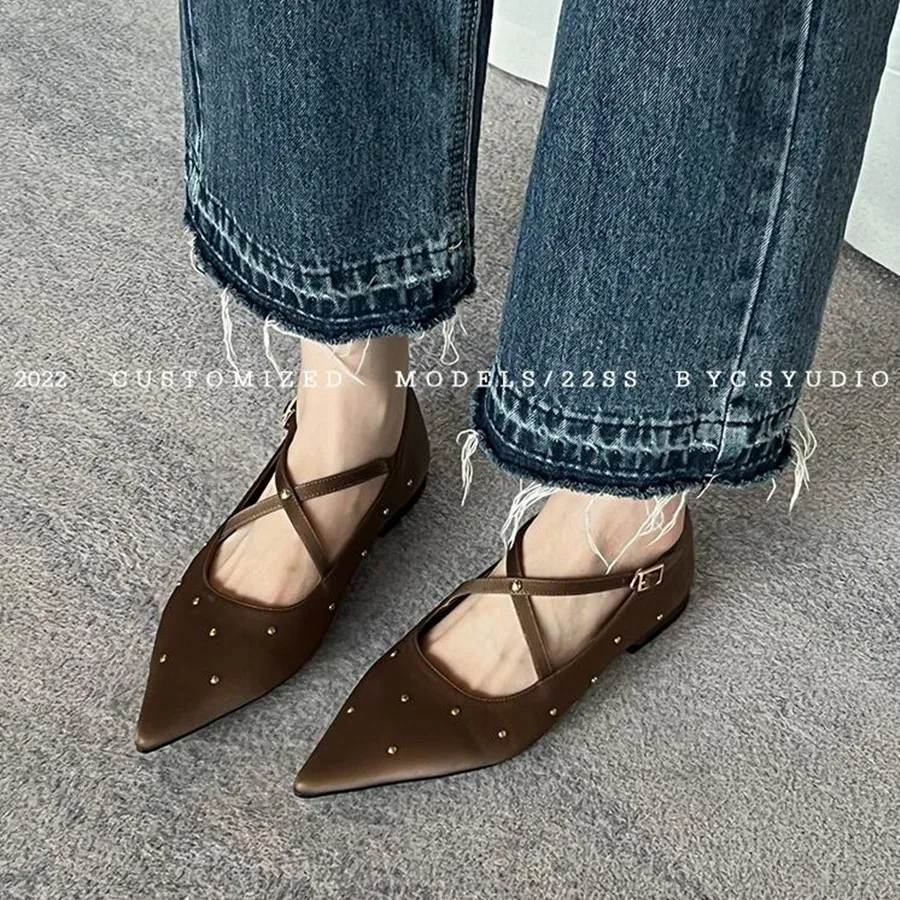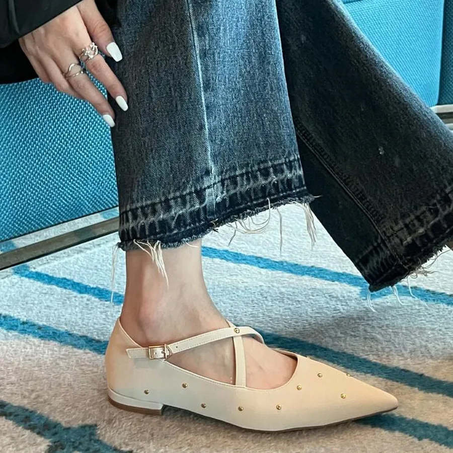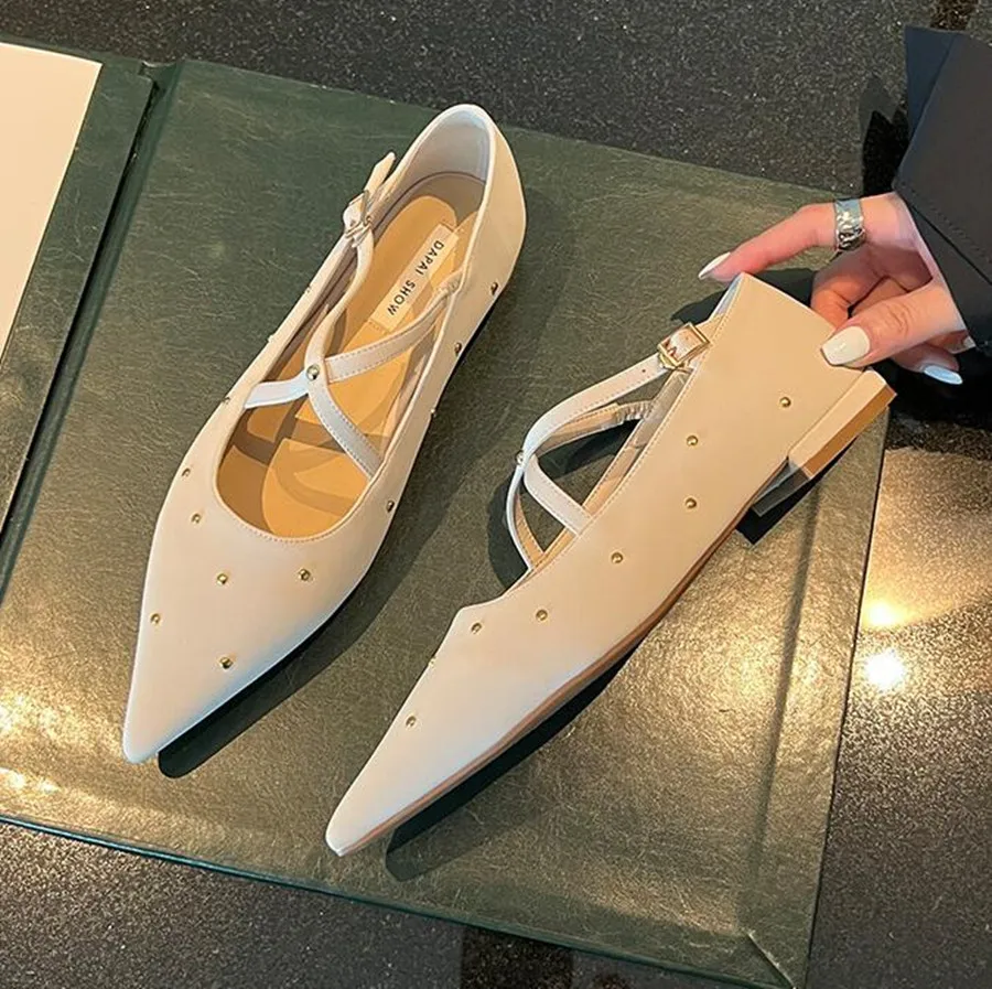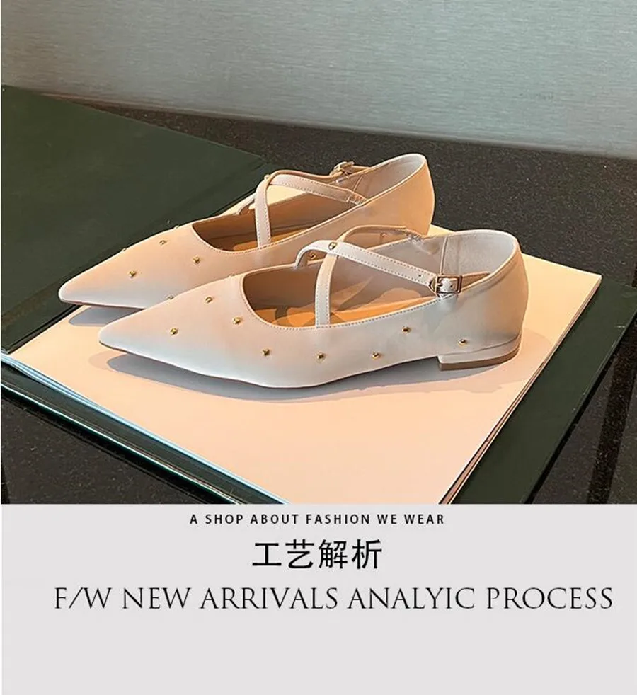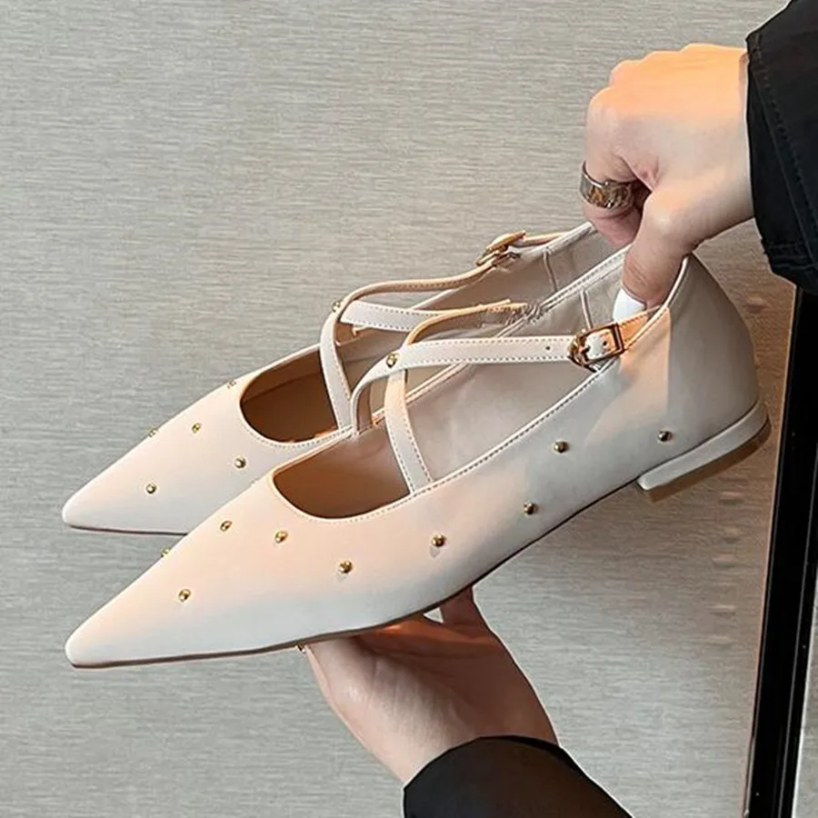 Advbridge - New Women Rivet Cross Flat Shoes Fashion Pointed Toe Shallow Ladies Elegant Dress Shoes Falt Heel Casual Ballet Shoes