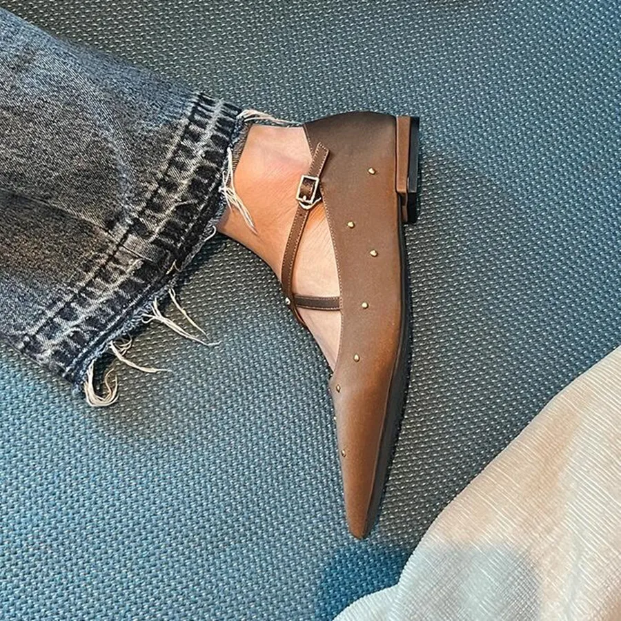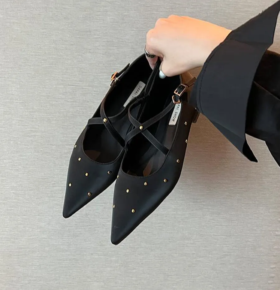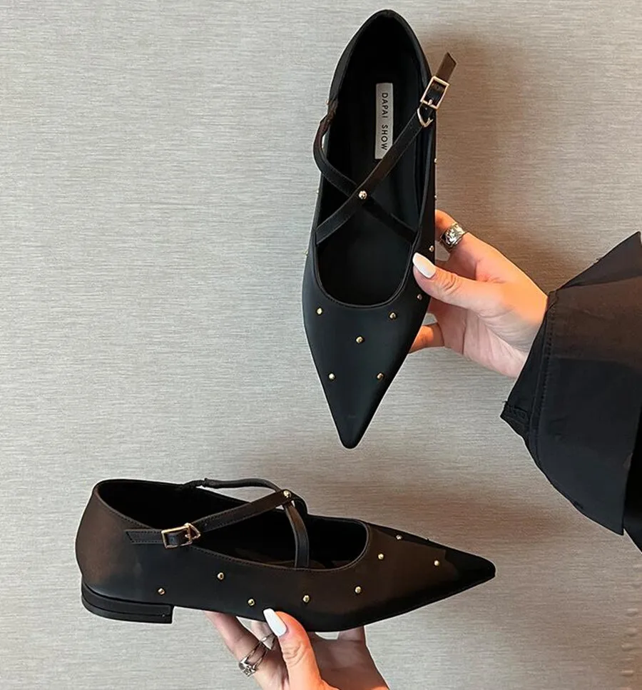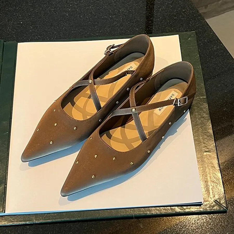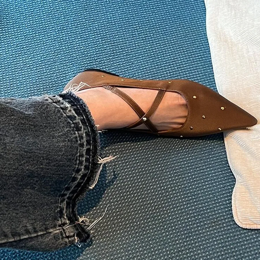 Advbridge - New Women Rivet Cross Flat Shoes Fashion Pointed Toe Shallow Ladies Elegant Dress Shoes Falt Heel Casual Ballet Shoes