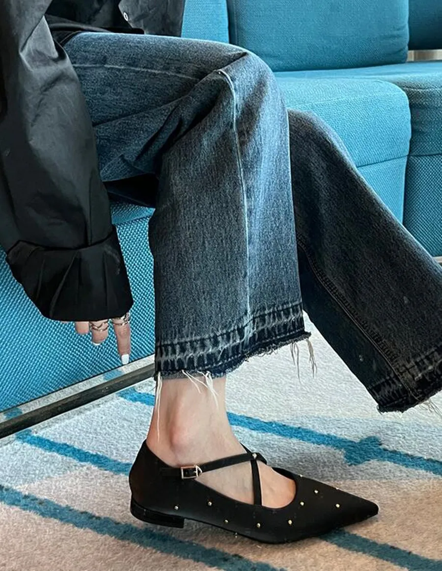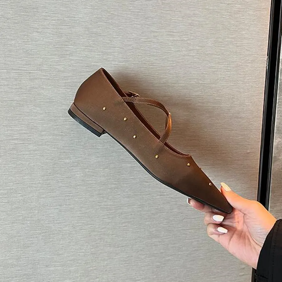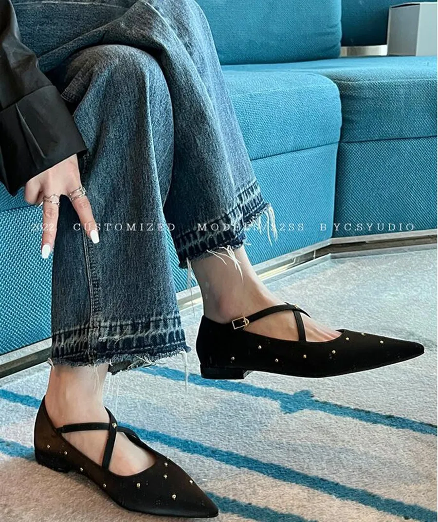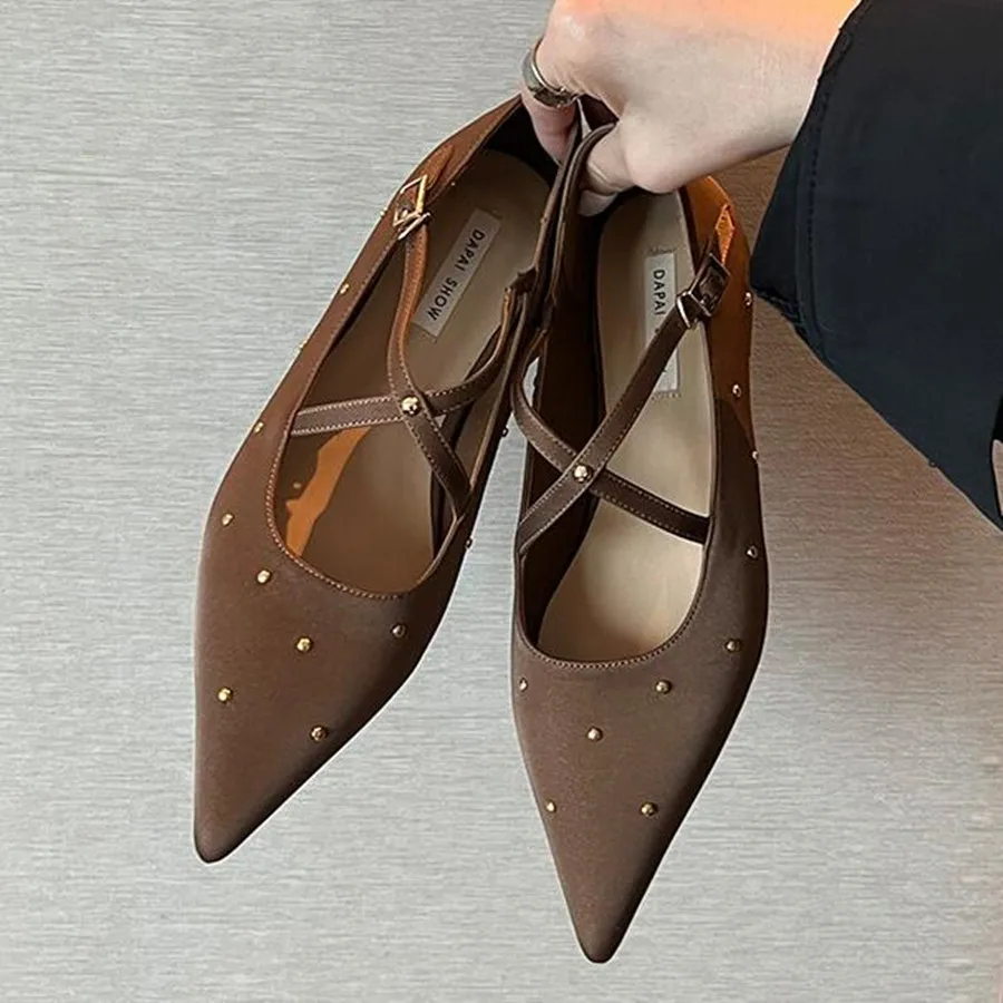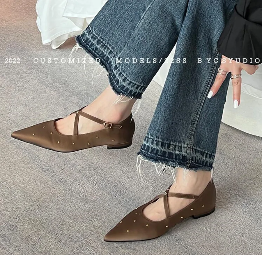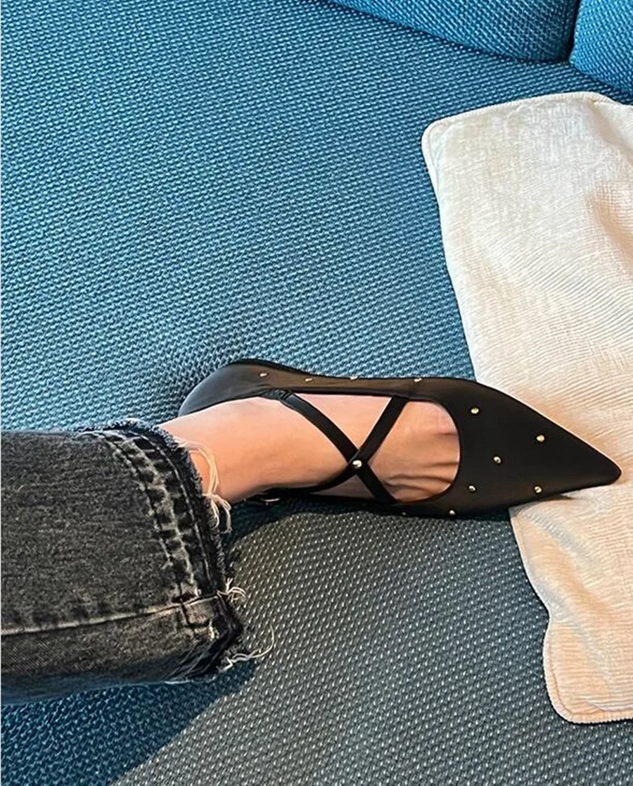 Advbridge - New Women Rivet Cross Flat Shoes Fashion Pointed Toe Shallow Ladies Elegant Dress Shoes Falt Heel Casual Ballet Shoes