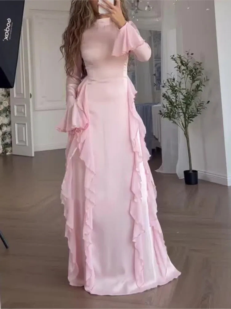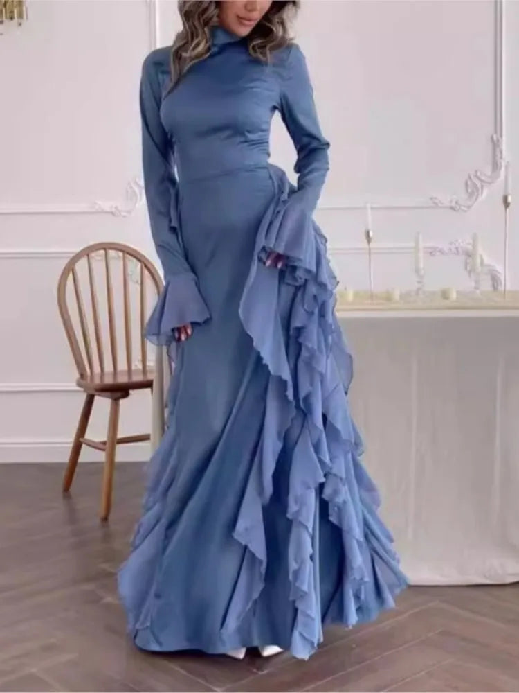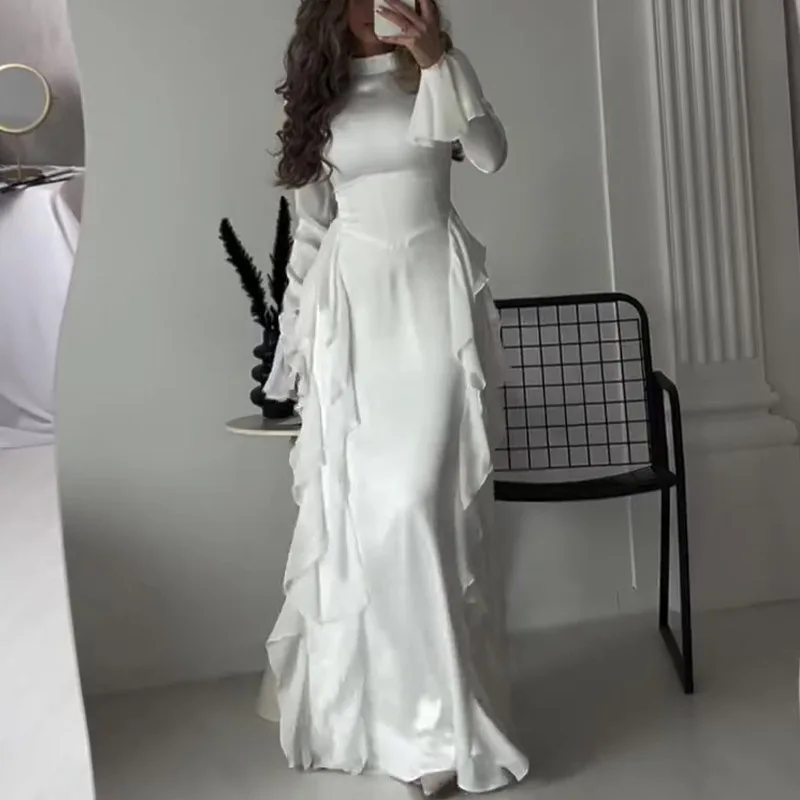 Advbridge Autumn Bodycon Maxi Dresses for Women Ruffles Flare Sleeves O-neck Wedding Evening Party Dress Slim Prom Robe Vestidios New