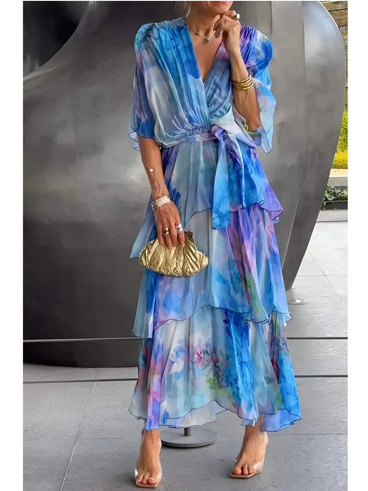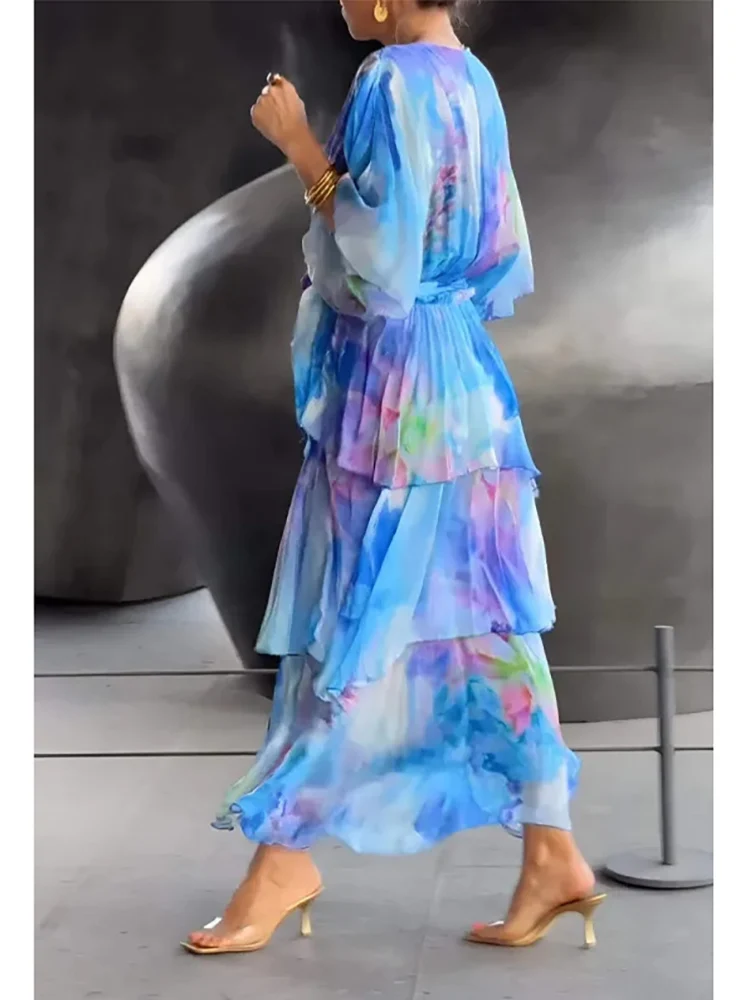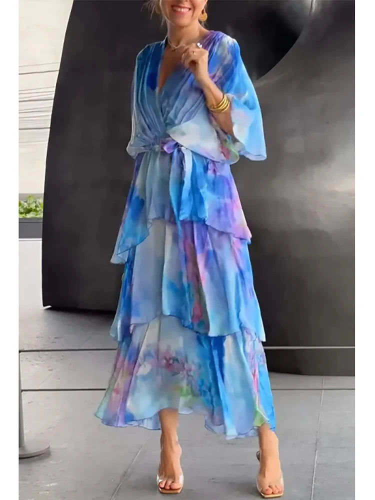 Advbridge Autumn Women's Mid Sleeve Casual Style Polyester Material 2024 New Fashion V-neck Lotus Leaf Sleeve Dress