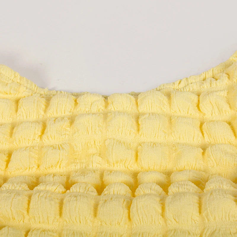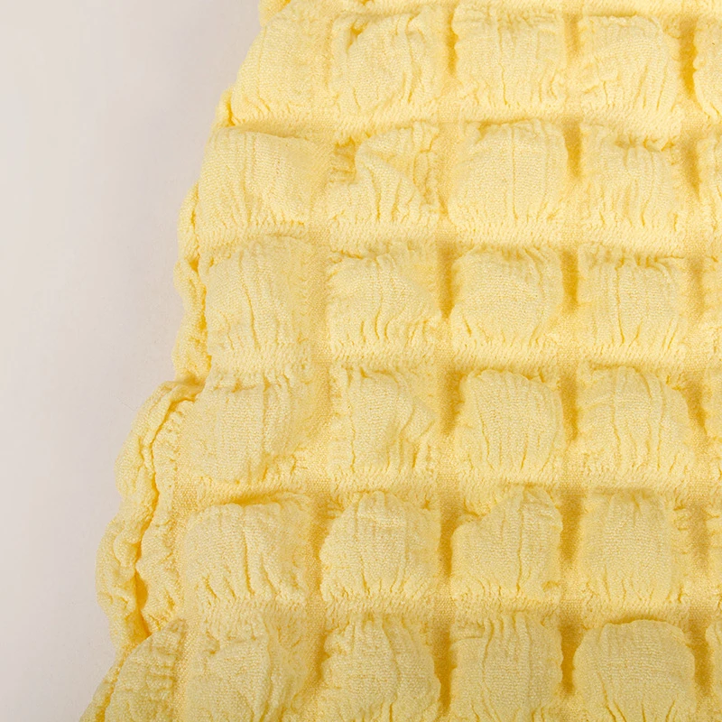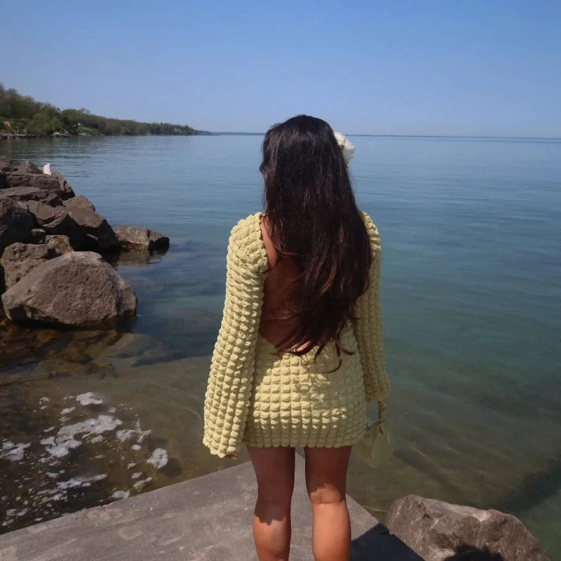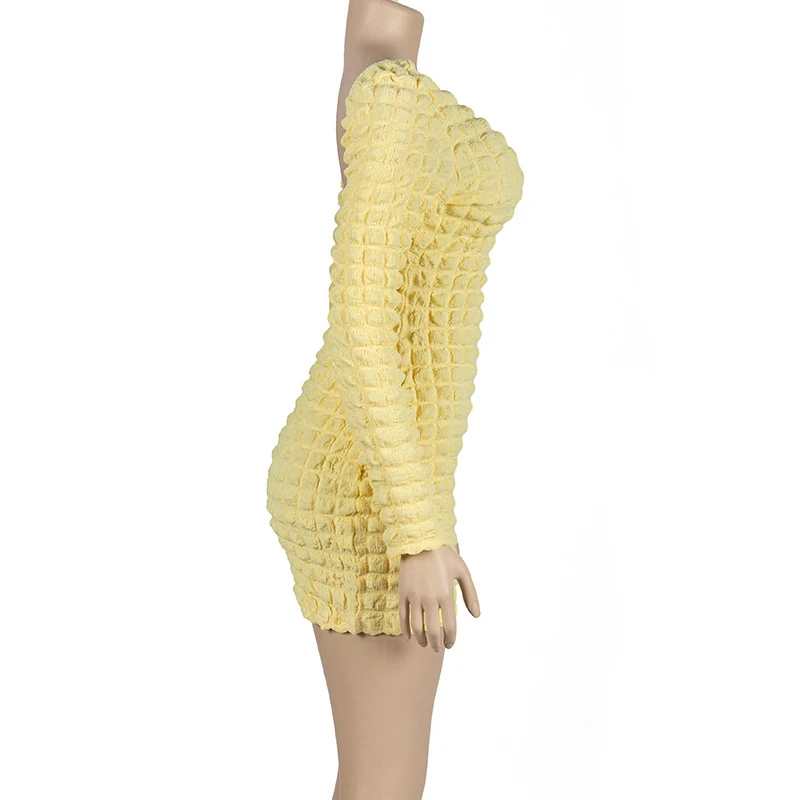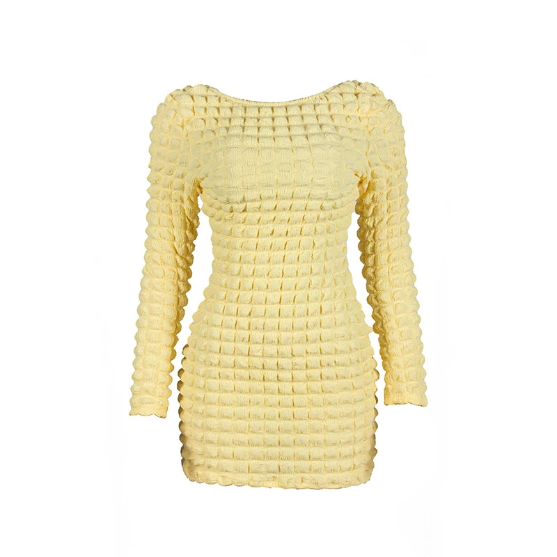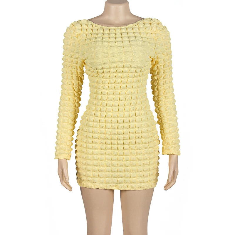 ADVBRIDGE - Autumn Yellow Sexy Open Back Popcorn Texture Short Dress Skinny High Waist Hipster Mini Dress Women Elegant Club Streetwear