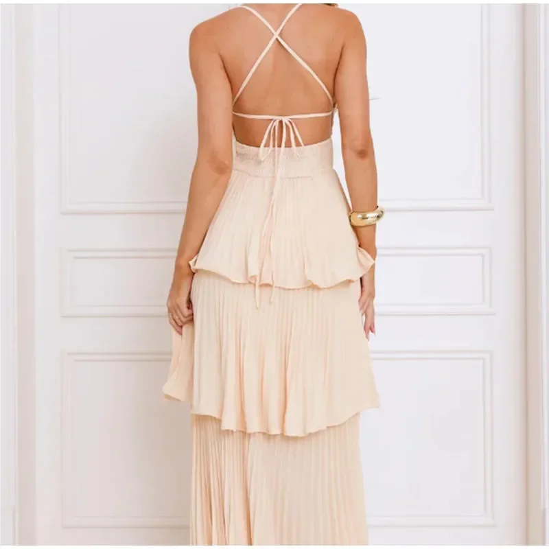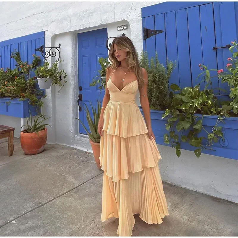Advbridge Backless Layer Yellow Sexy V-neck High Waist Bodycon Long Dresses Women Lace Up Off Shuolder Multi Maxi Dress 2025 Party Wear