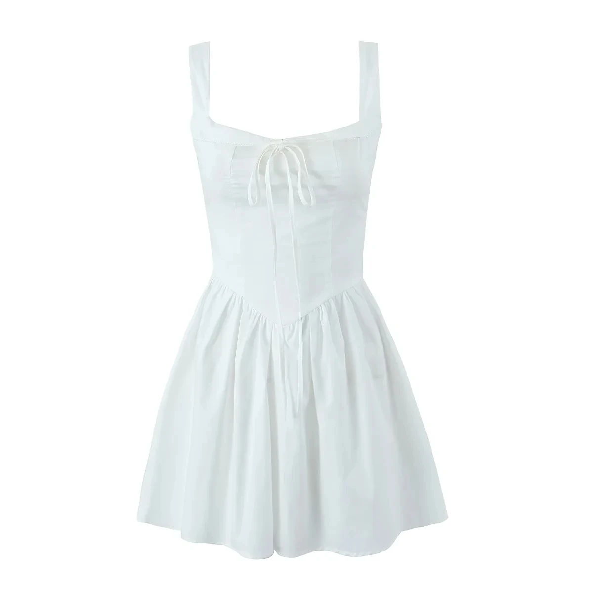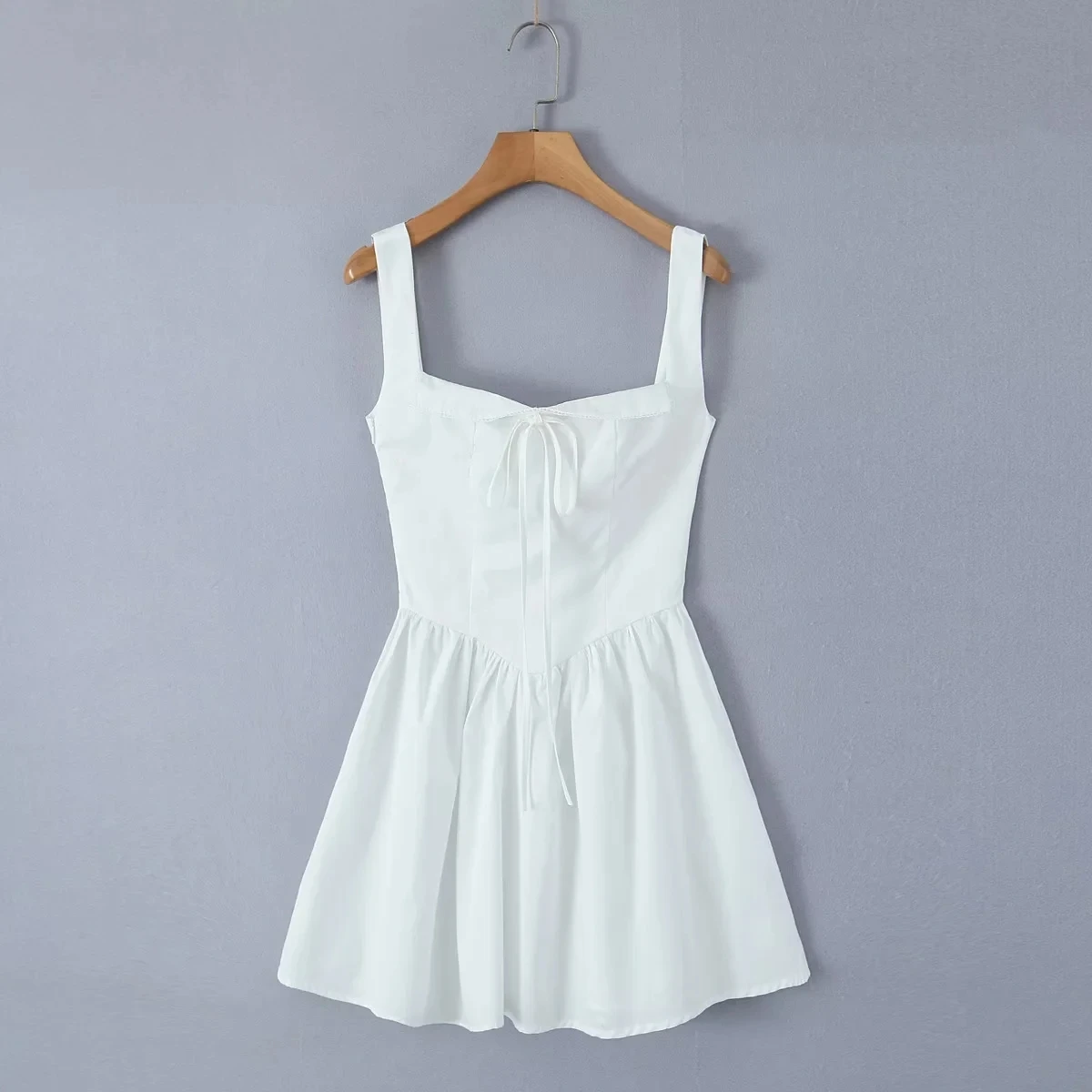 Advbridge Bowknot White Cotton Mini Dress Summer Women Sexy Short Beach Vestidos 2024 Corset A-line Tank Dress Party Club New