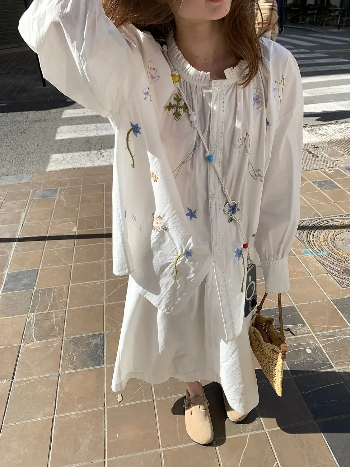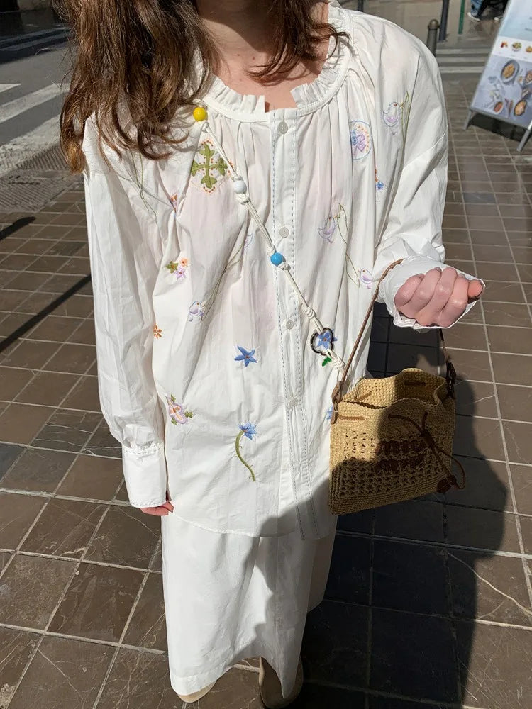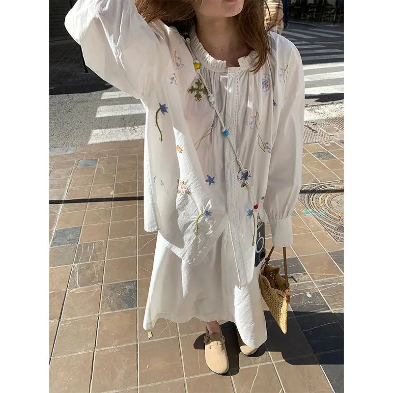Advbridge Colorful Embroidery Lace Dress Sets Round Collar Loose Shirts Summer Women Conjuntos Para Mujeres 2 Piezas Skirt Set