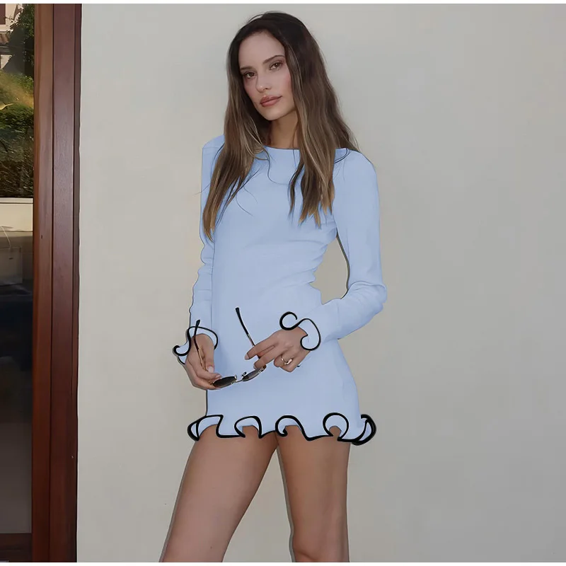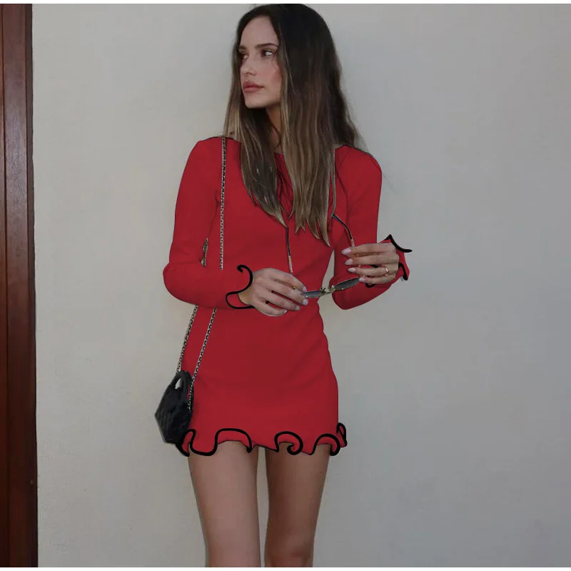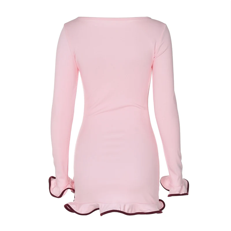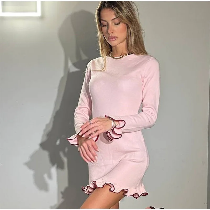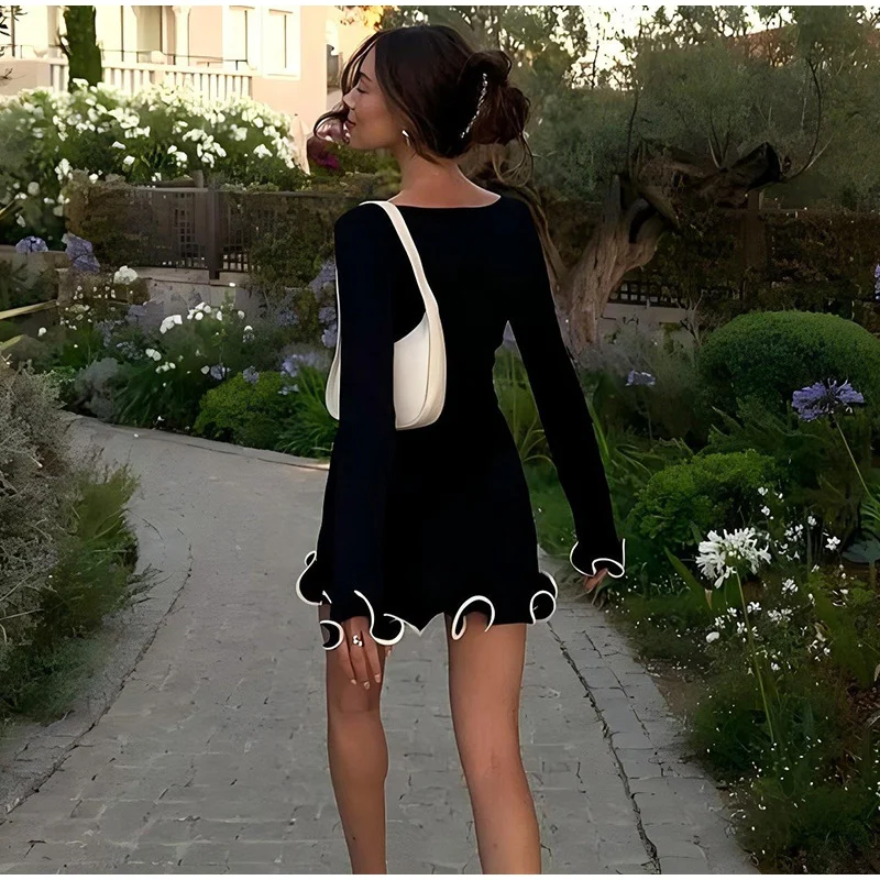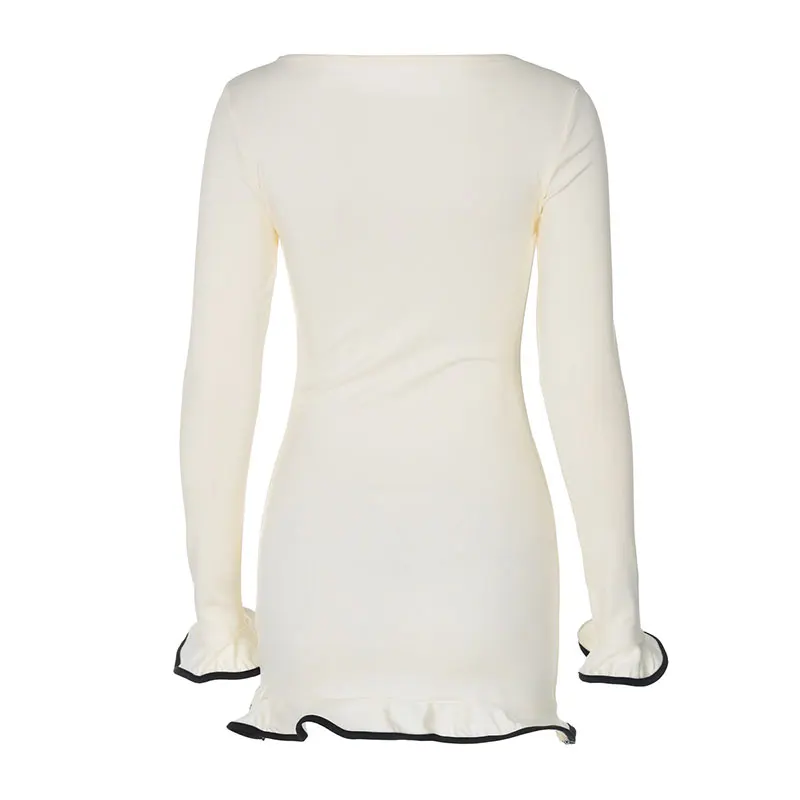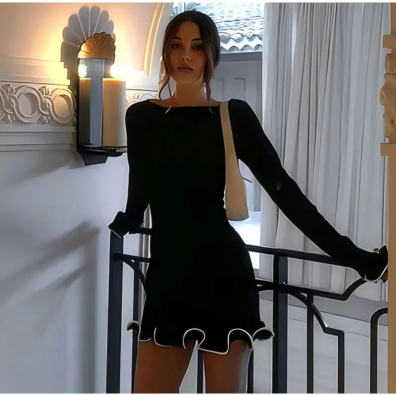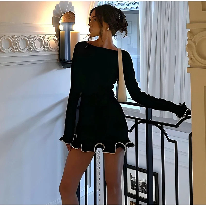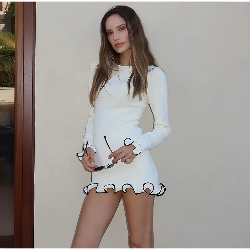 Advbridge Contrast Ruffles Mini Dresses Women Elegant Patchwork Flare Sleeve Lady Dresses 2025 Spring Summer New Female Evening Vestidos