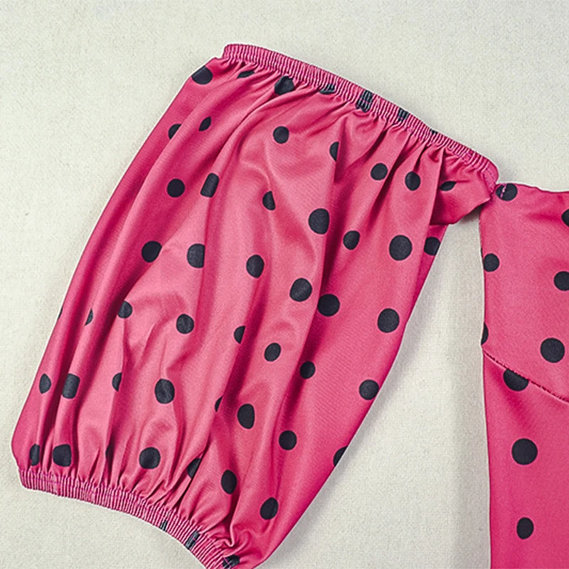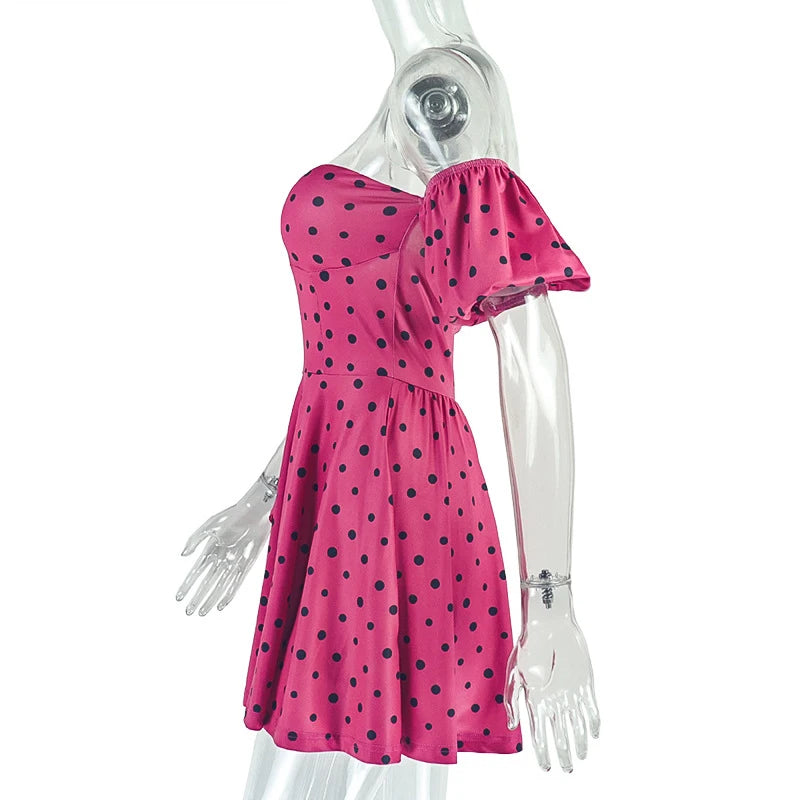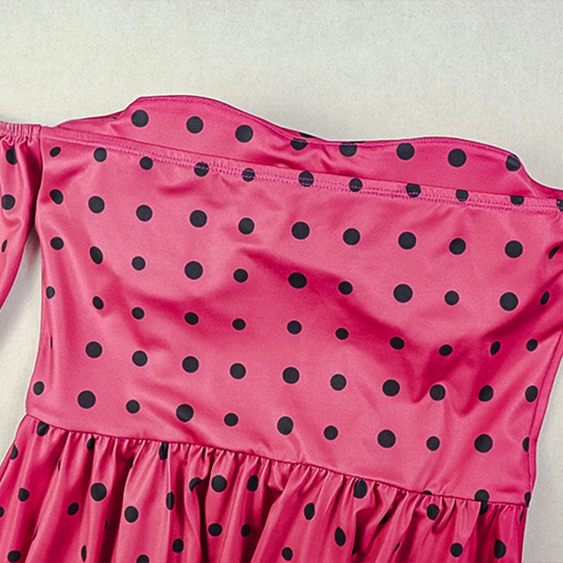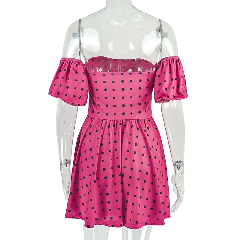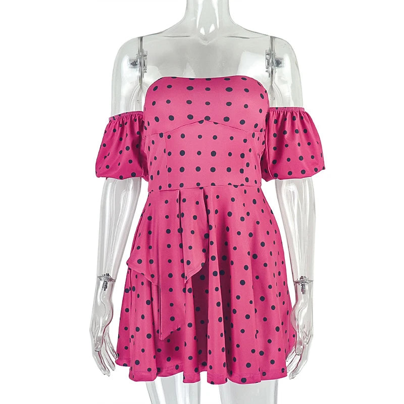 ADVBRIDGE  - Contrasting Dot Printed Off-shoulder Strapless Sexy Ruched Puff Sleeved High Waist Mini Dress Women's Casual Party Vestidos