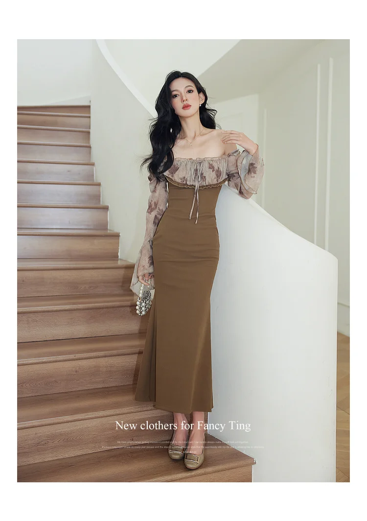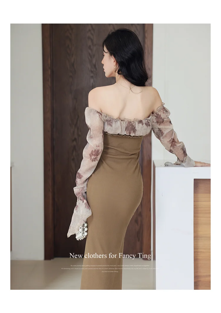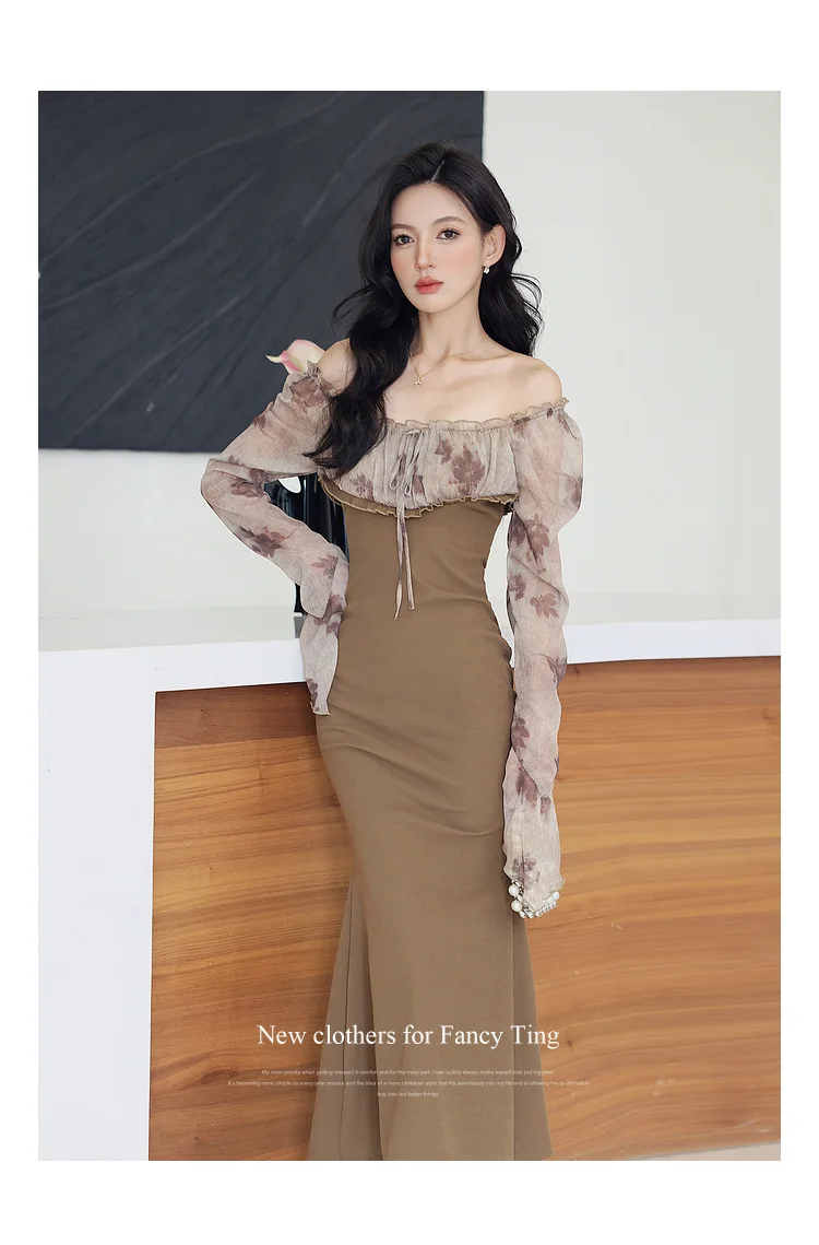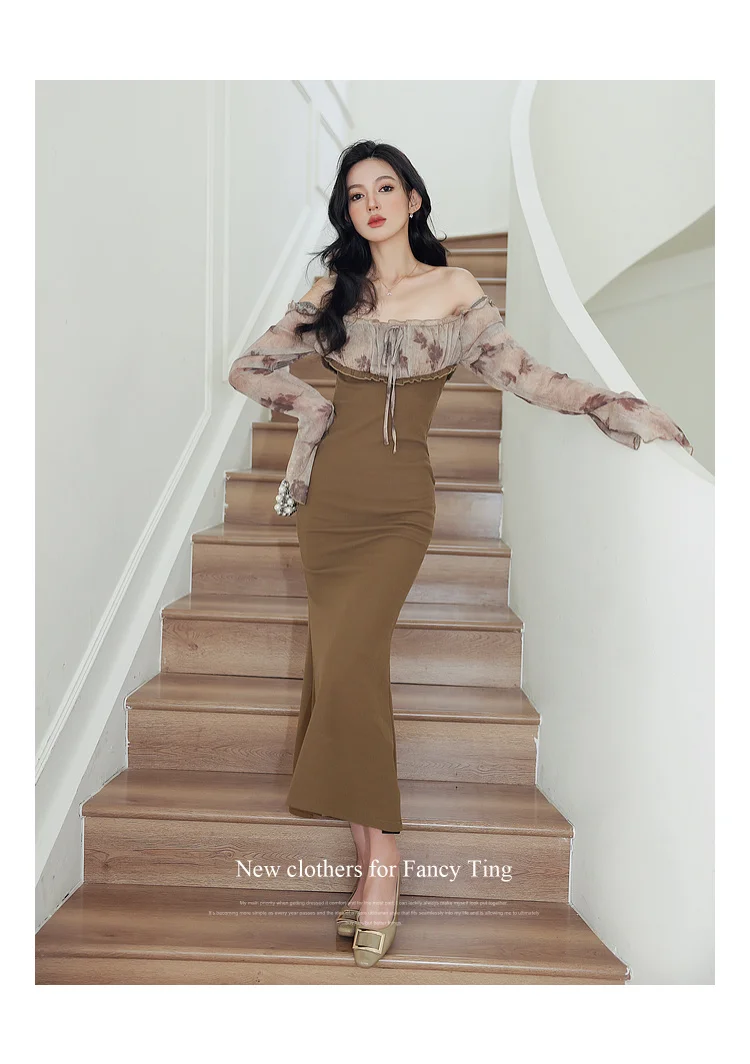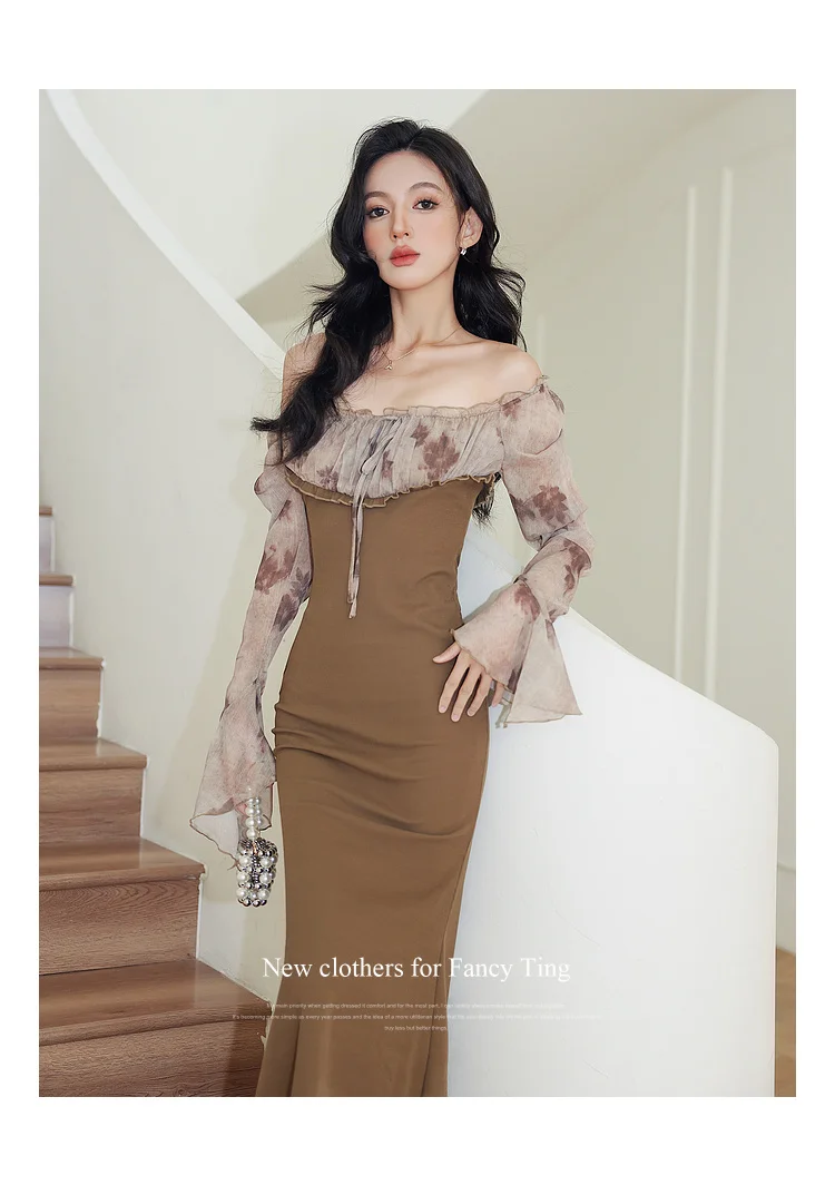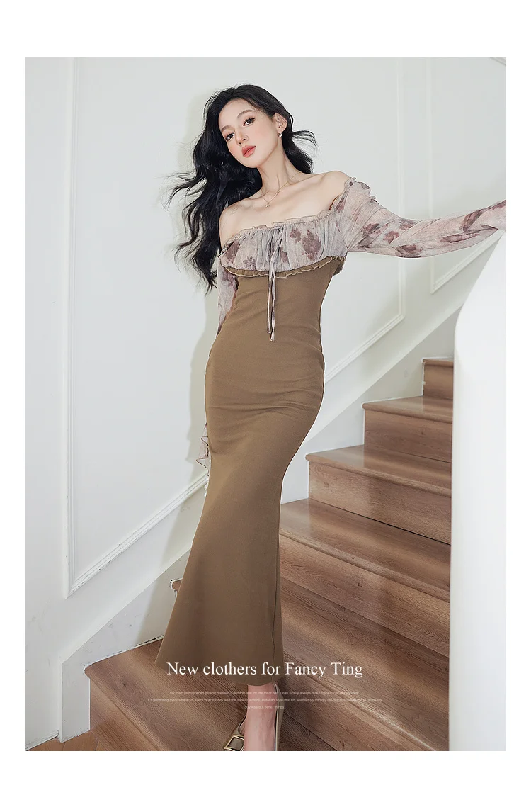 Advbridge Elegant and Chic Women Bodycon Slim Midi Dress Spring Floral Print Fishtail Party Prom Vestidos Female Sexy Robe Clothes