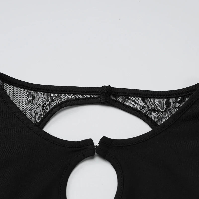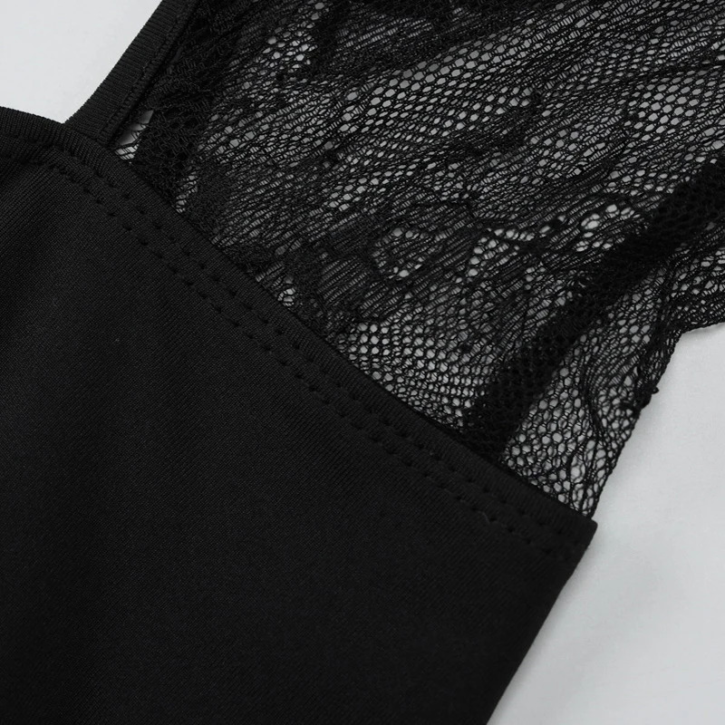 ADVBRIDGE  - Elegant Black Floral Pattern Irregular Hollow Out Round Neck Open Back Bodycon Women's Dress Party Mesh Summer Tank Dresses