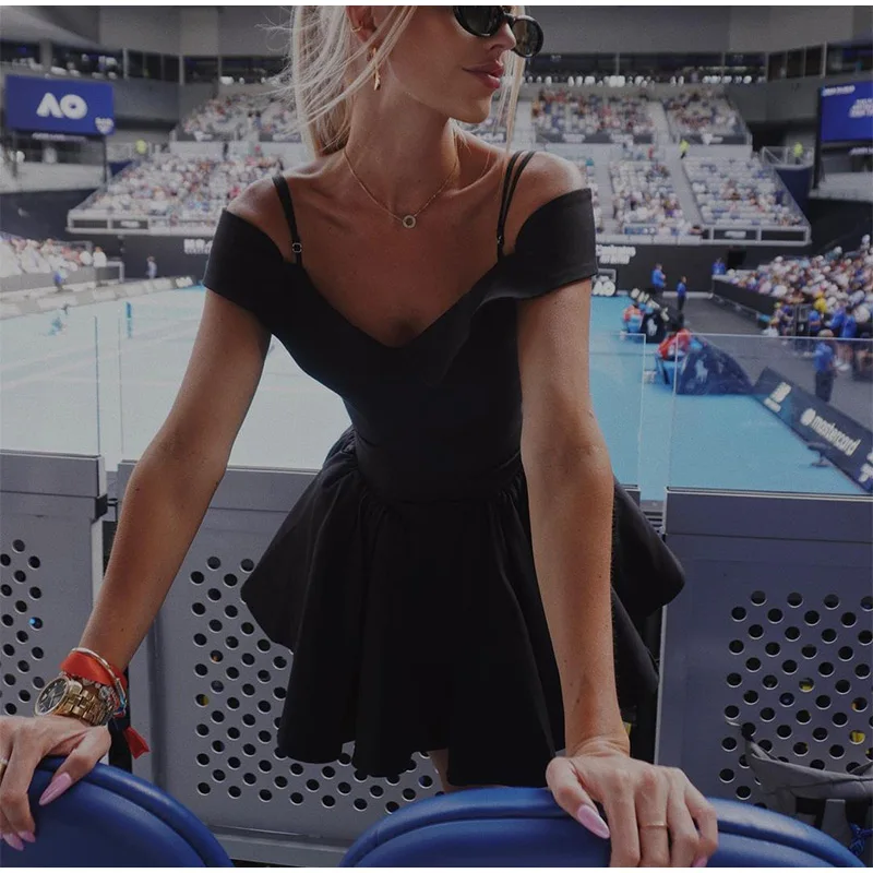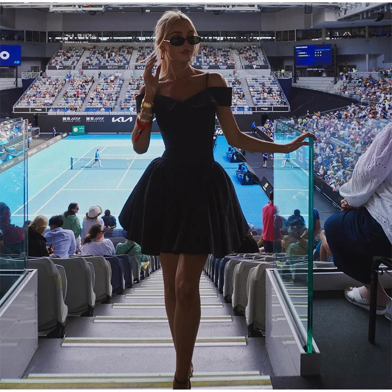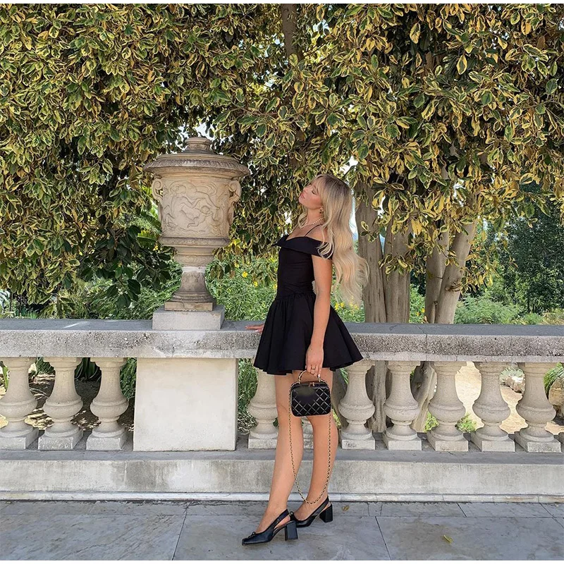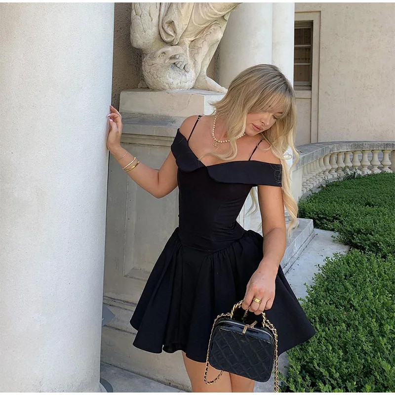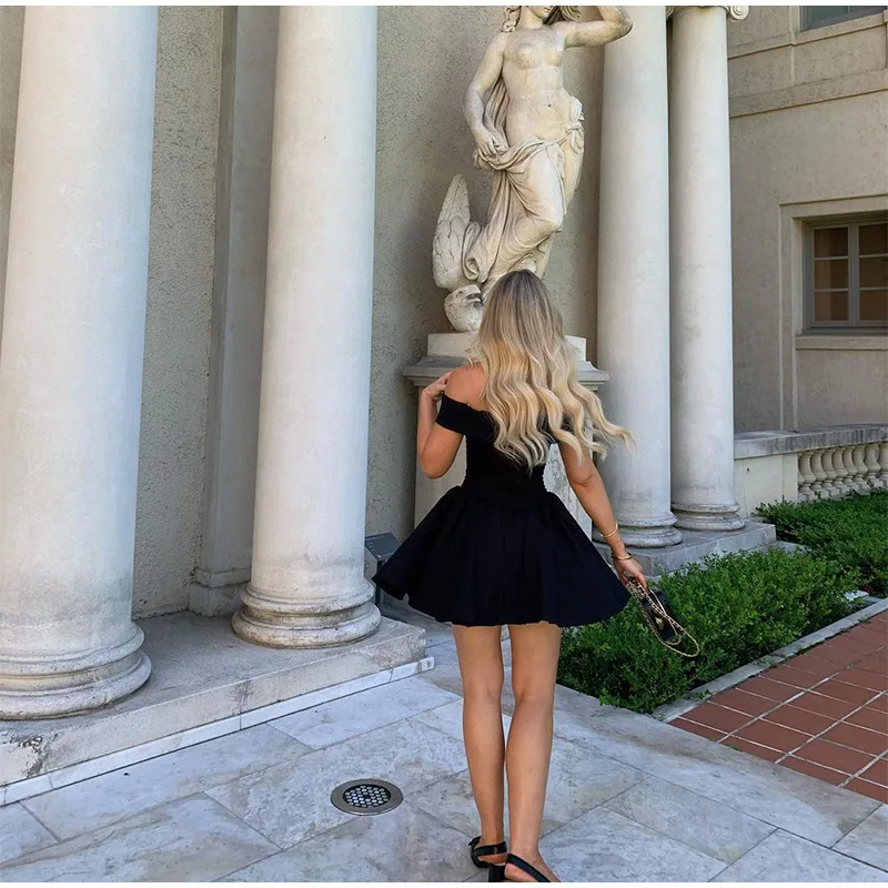 Advbridge Elegant Black Off Shoulder Pleated A-line Mini Dress Women Fashion Backless Slim High Waist Vestido Female Chic Party Gown 2024