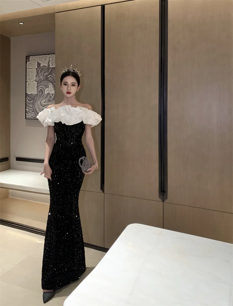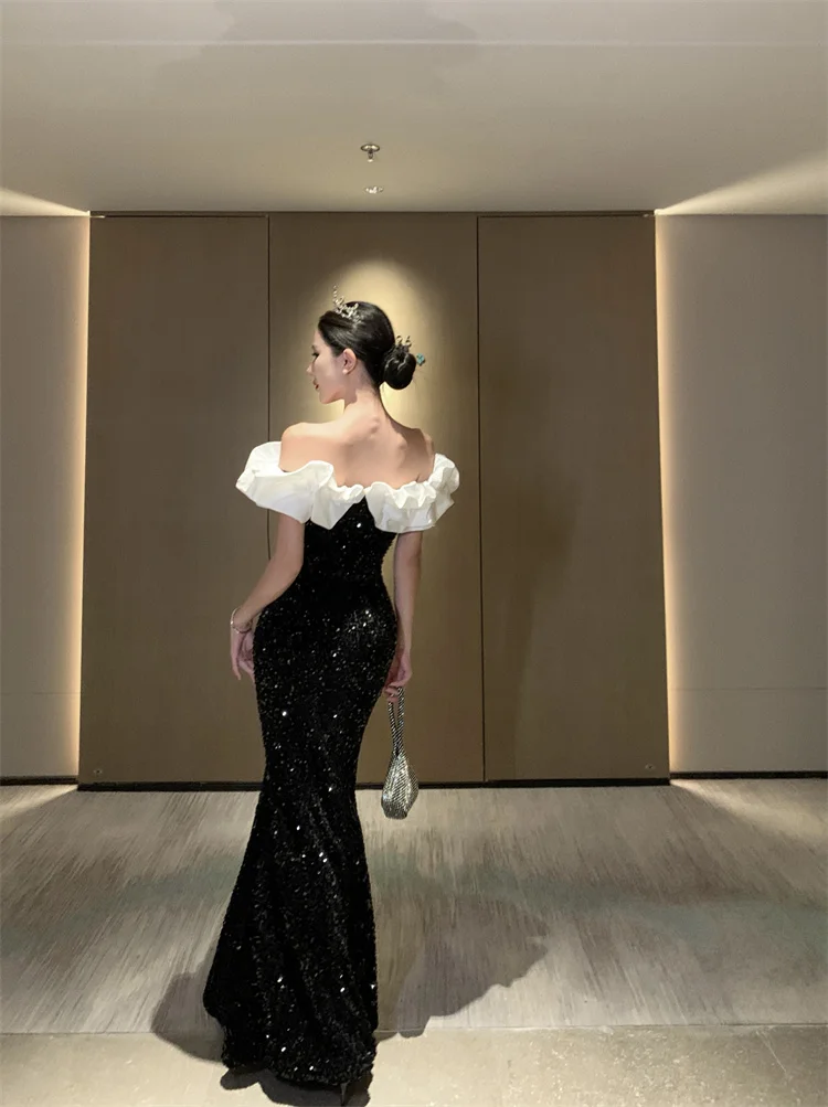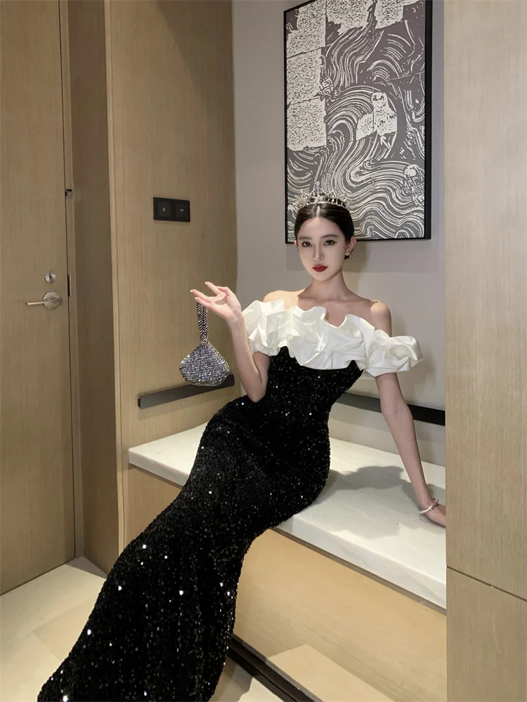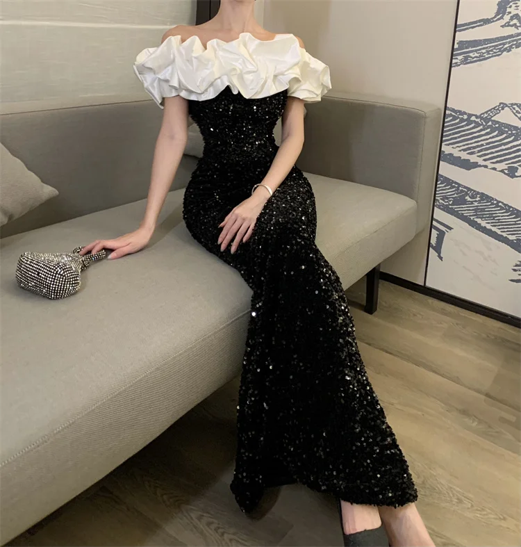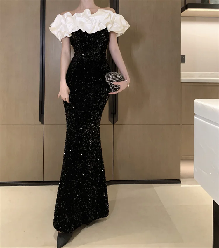 Advbridge Elegant Bodycon Velvet Sequined Long Dresses for Women Patchwork Slim Mermaid Evening Party Dress Prom Robe Vestidos Mujer New