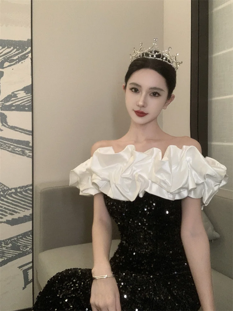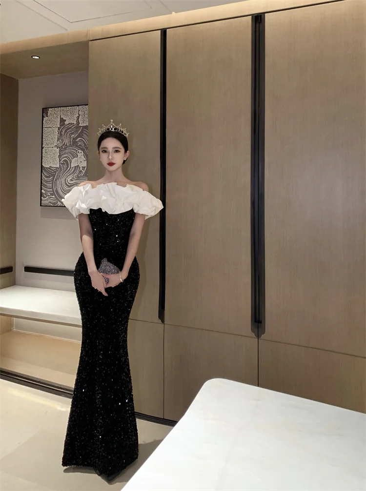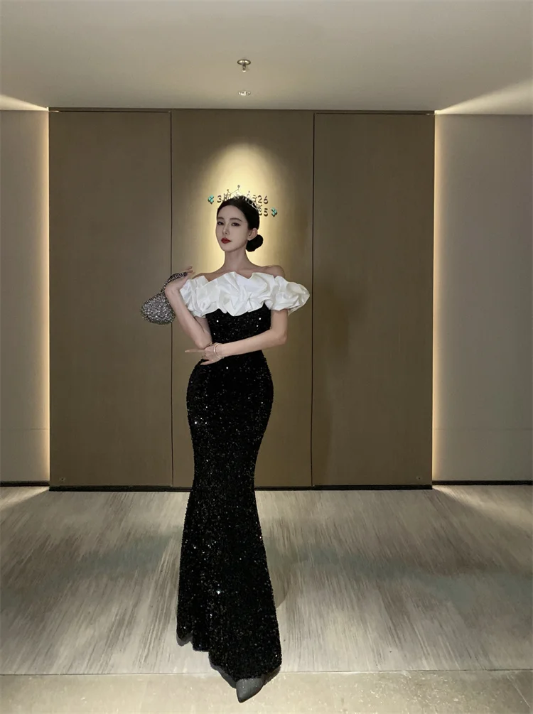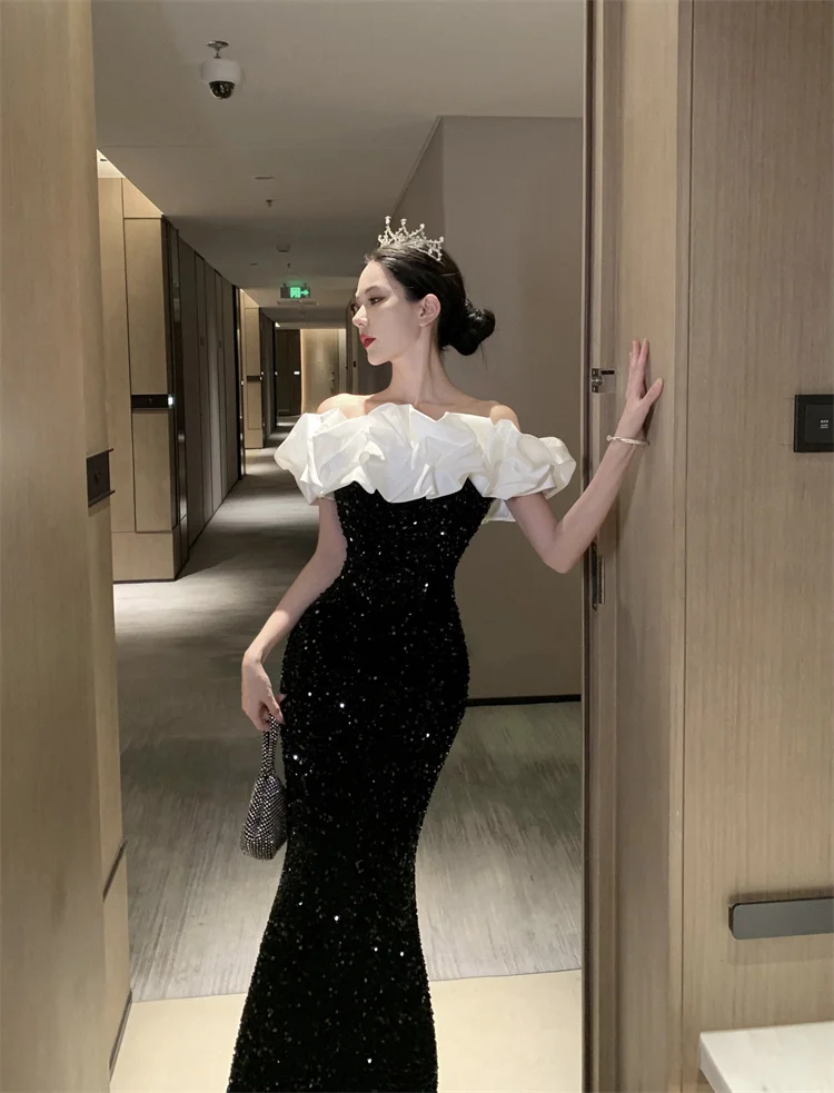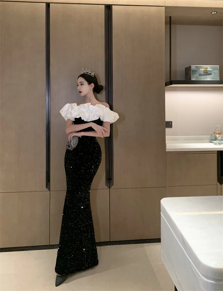 Advbridge Elegant Bodycon Velvet Sequined Long Dresses for Women Patchwork Slim Mermaid Evening Party Dress Prom Robe Vestidos Mujer New