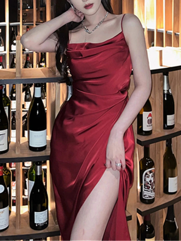 Advbridge Fashion Bodycon Women Red Dress Satin Sleeveless Spaghetti Strap Sexy Party Club Vestidos Female Casual Evening Mujers Robe