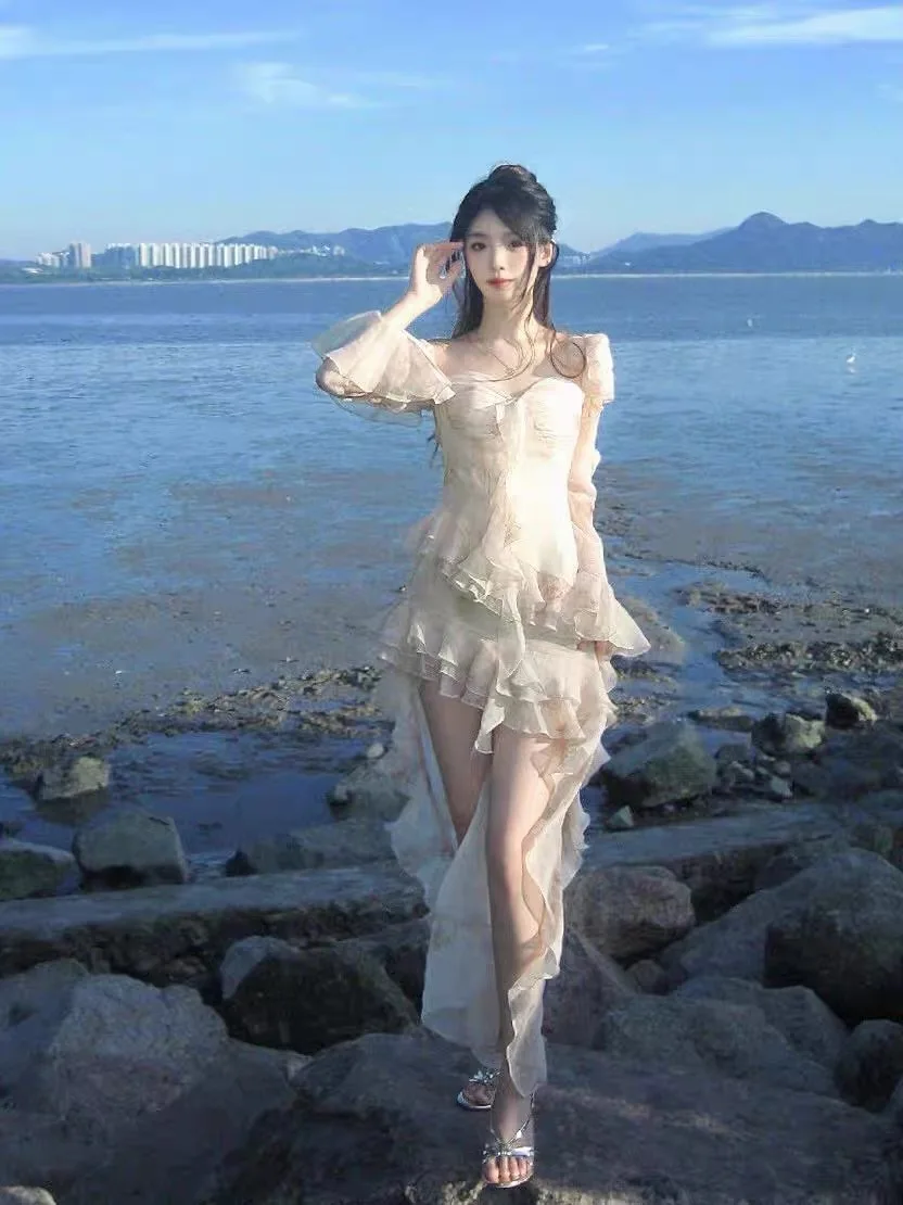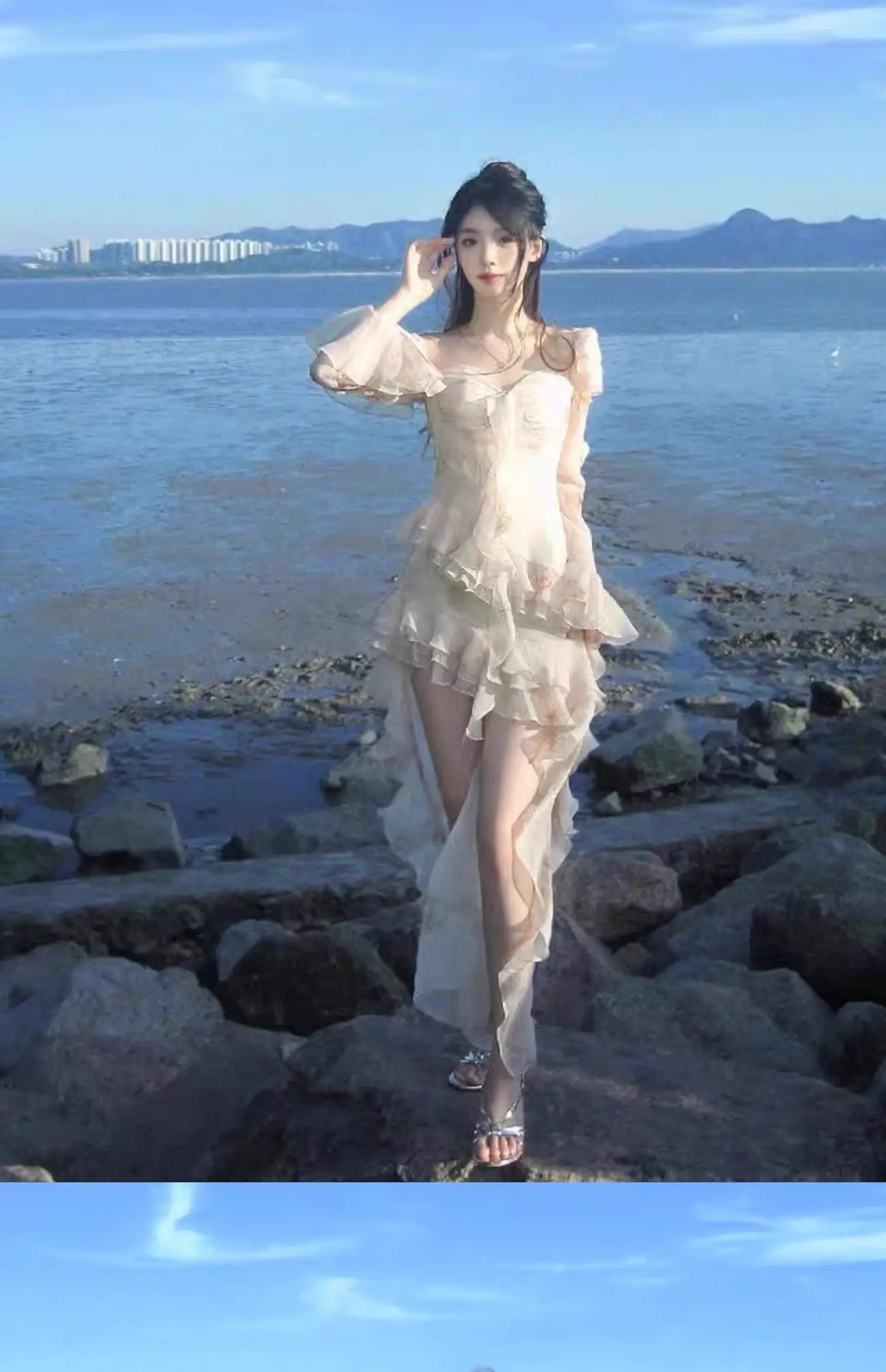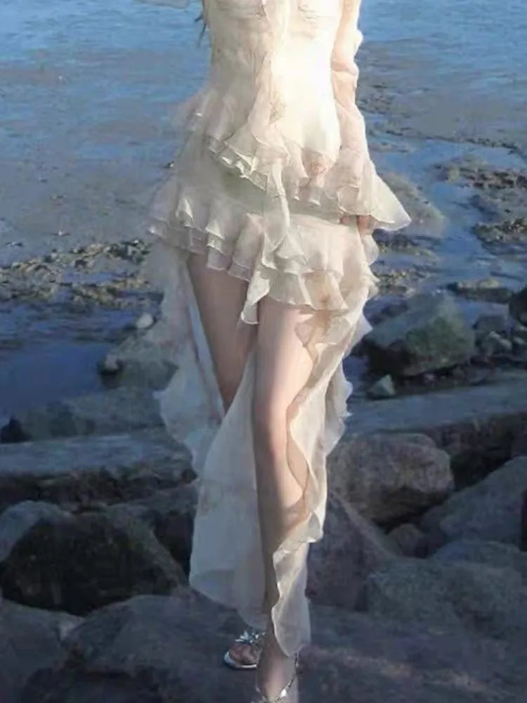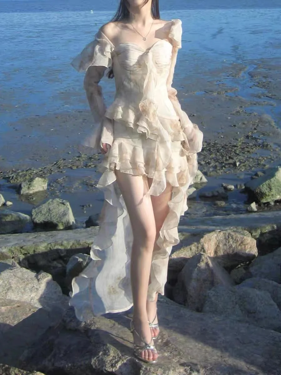 Advbridge Fashion New Women Chiffon Ruffle Beach Dress Spring Summer Vintage Chic Solid Elegant Sexy Vestidos Female Holiday Clothes