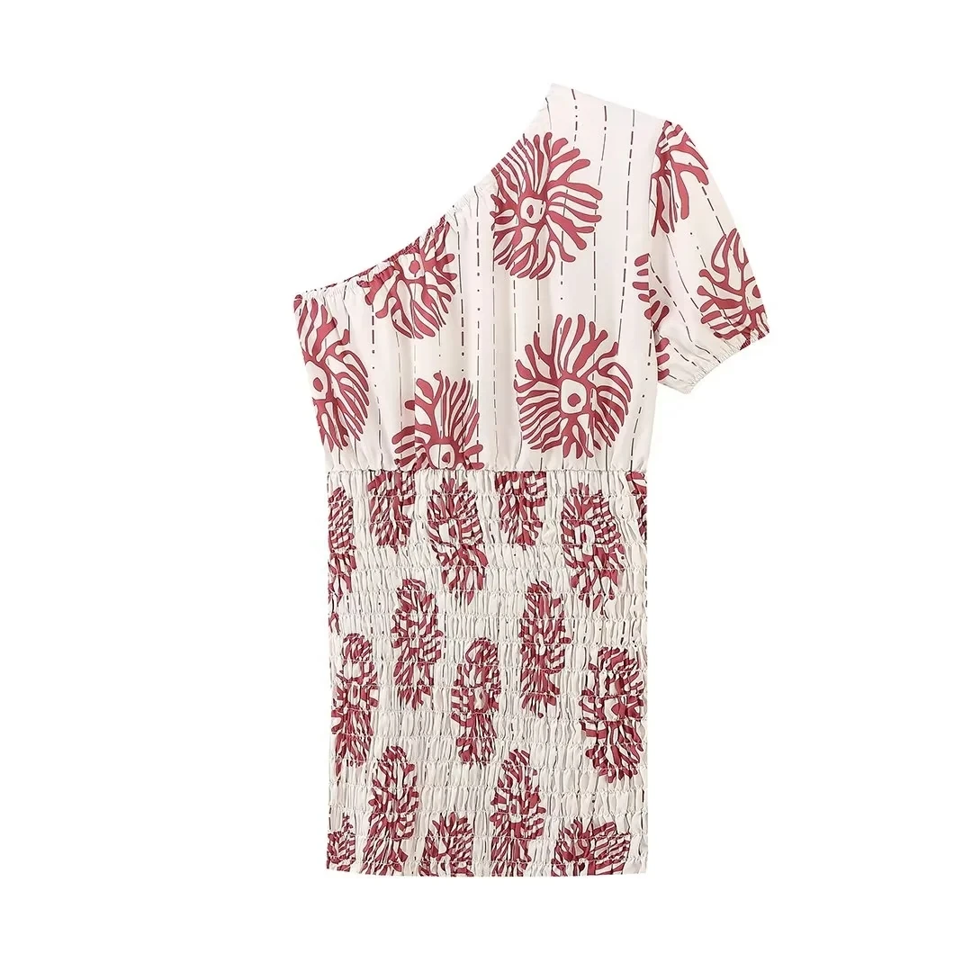 Advbridge Flower Printed One Shoulder Bodycon Mini Summer Dress Women Casual Pink Short Sundress for Petite Female Beach Vestidos