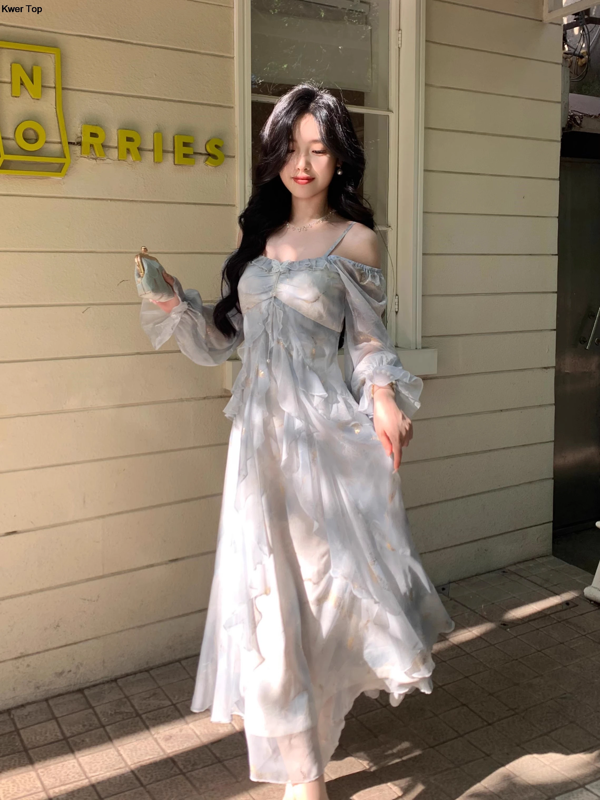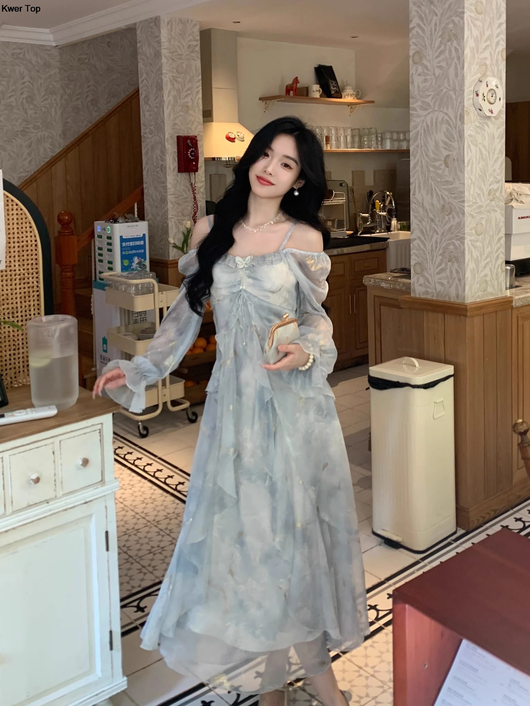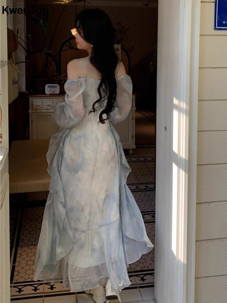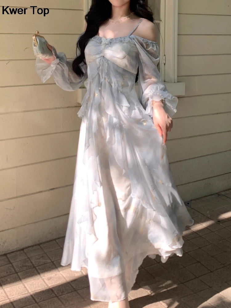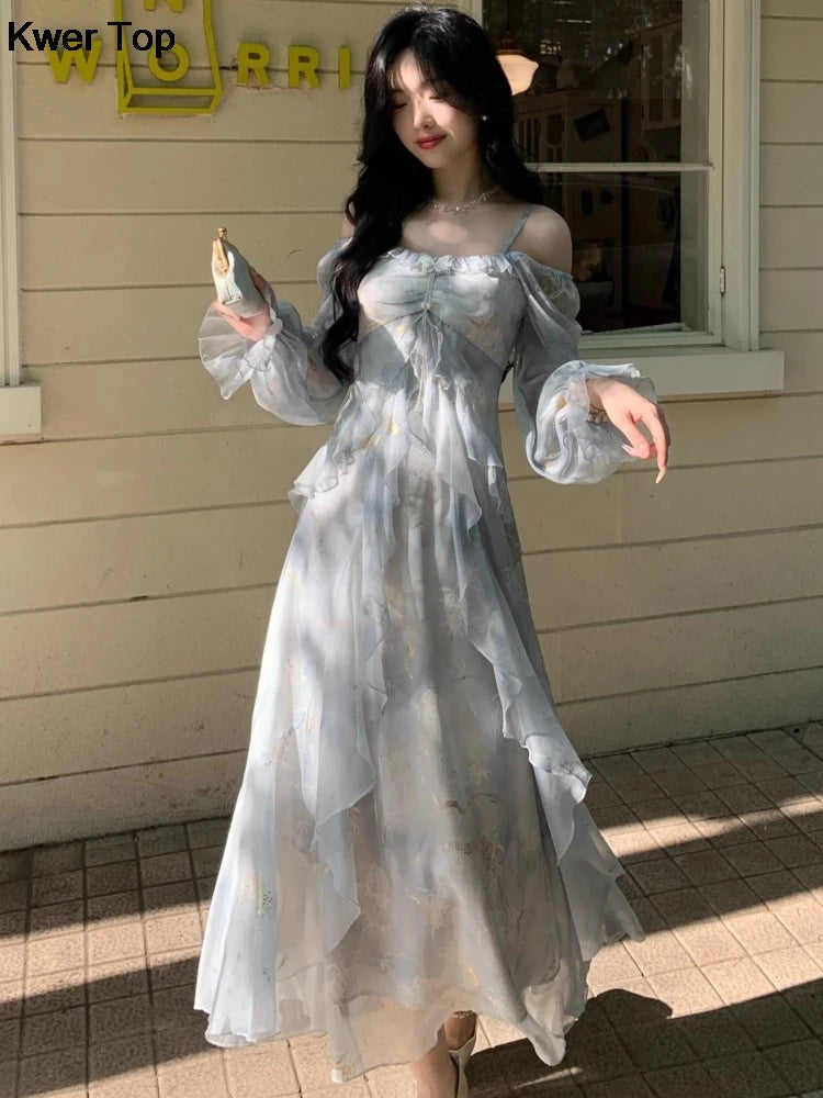 Advbridge French Fashion Print Fairy Long Dresses Women 2024 Autumn New Ruffles A-Line Party Birthday Vestidos Female One Piece Clothes