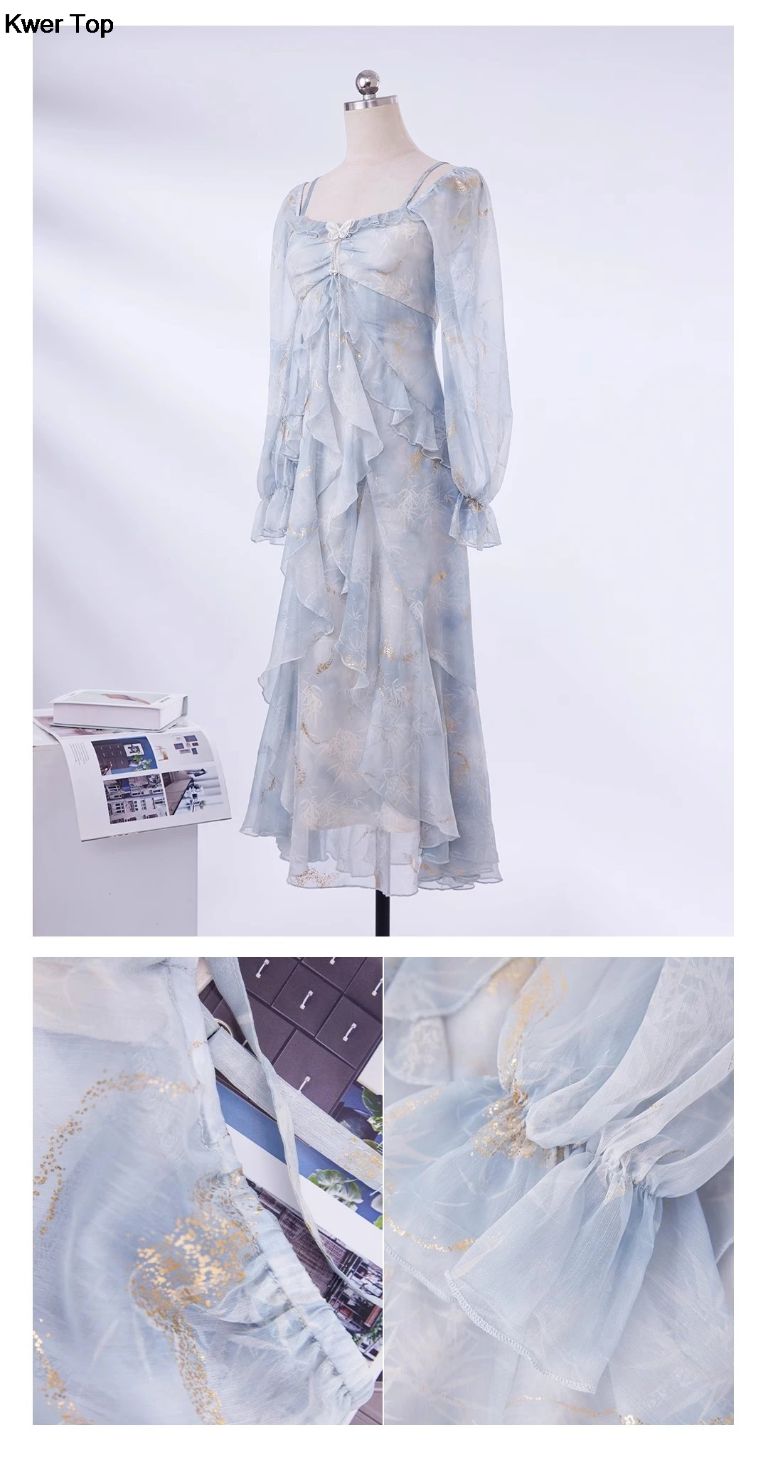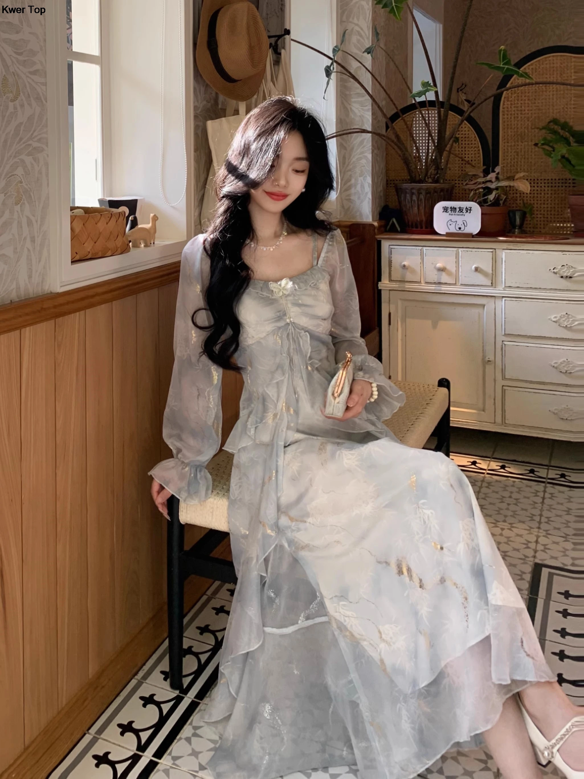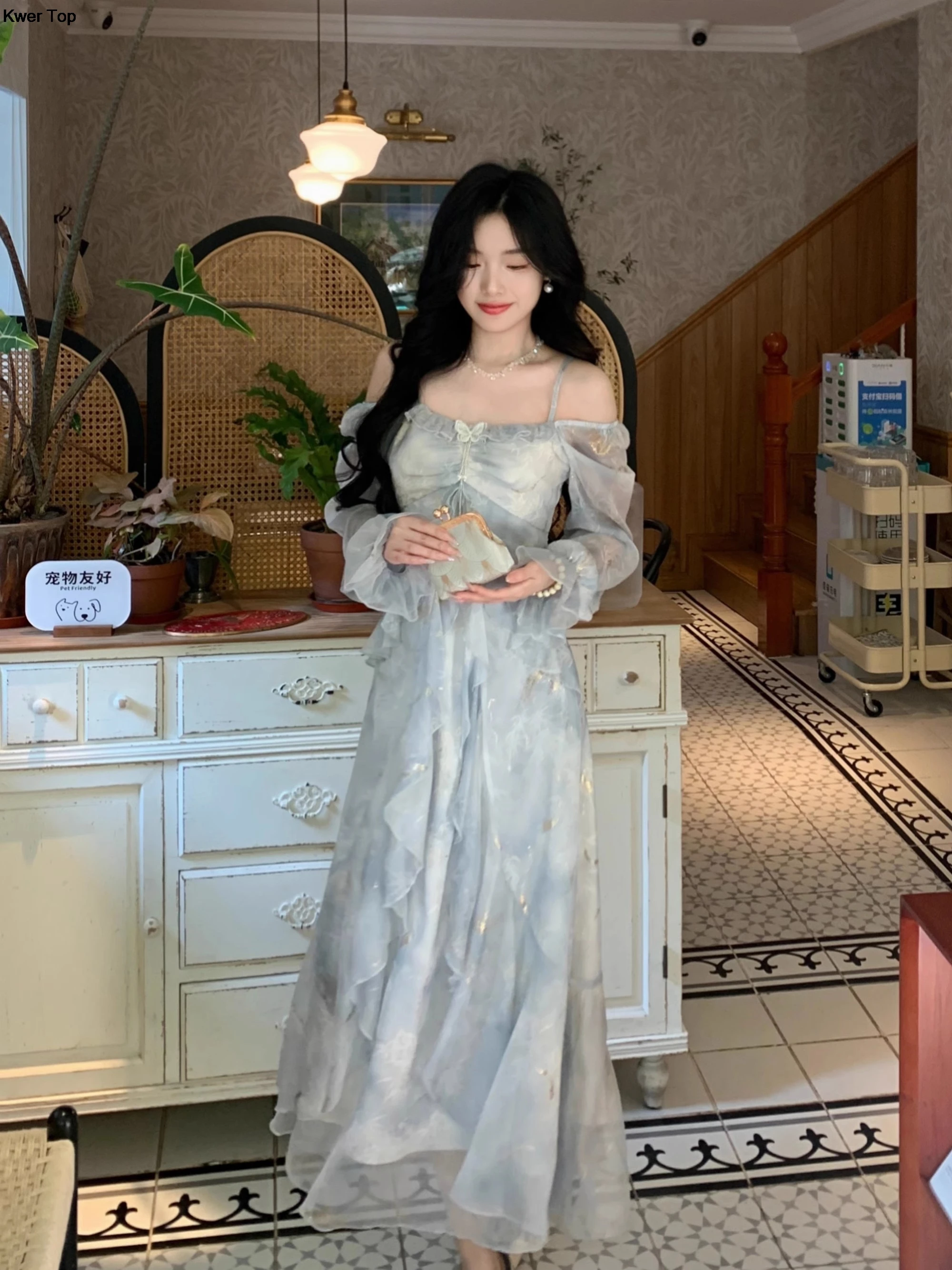 Advbridge French Fashion Print Fairy Long Dresses Women 2024 Autumn New Ruffles A-Line Party Birthday Vestidos Female One Piece Clothes