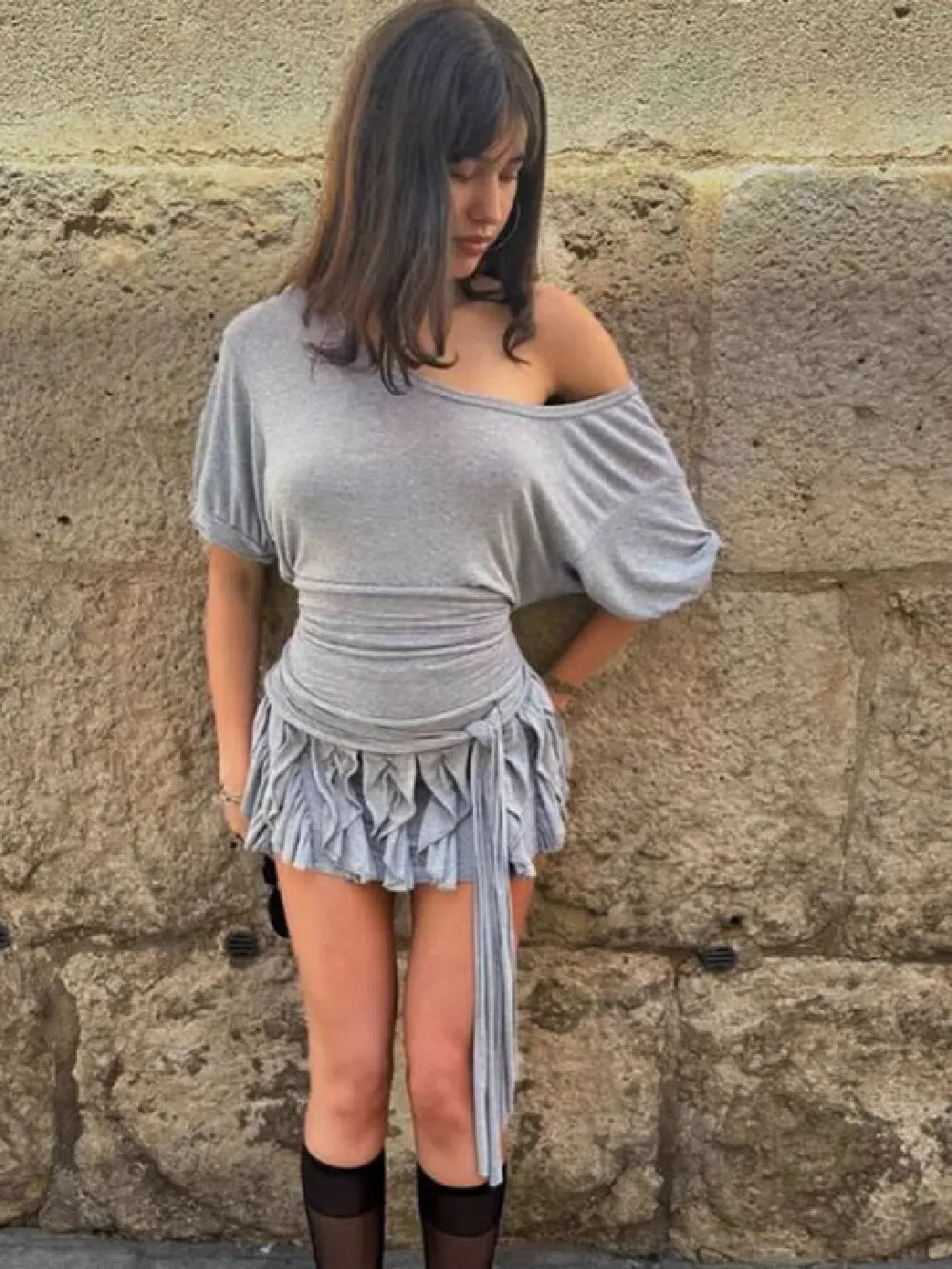 ADVBRIDGE - Girls 90S Short Sleeves Dress Women Summer Ruffle Mini Dress Sexy Pleated Short Dress Casual Party Dress Vestidos Y2K Streetwear