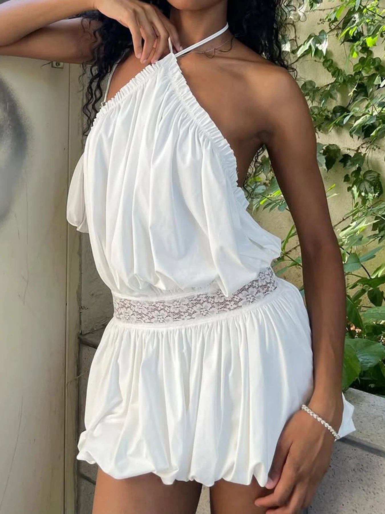 ADVBRIDGE - Holiday Patchwork Lace Halter Dress Sexy Slim Bandage Sleeveless Backless Mini Dresses For Women 2025 Summer Fashion