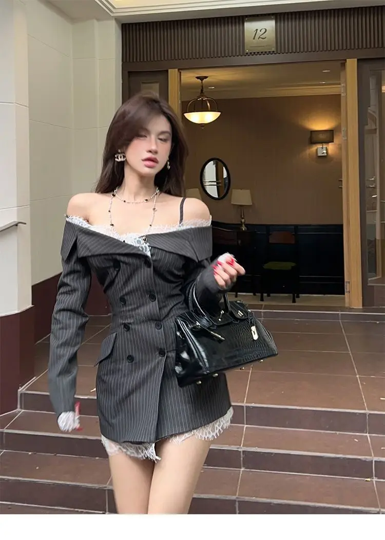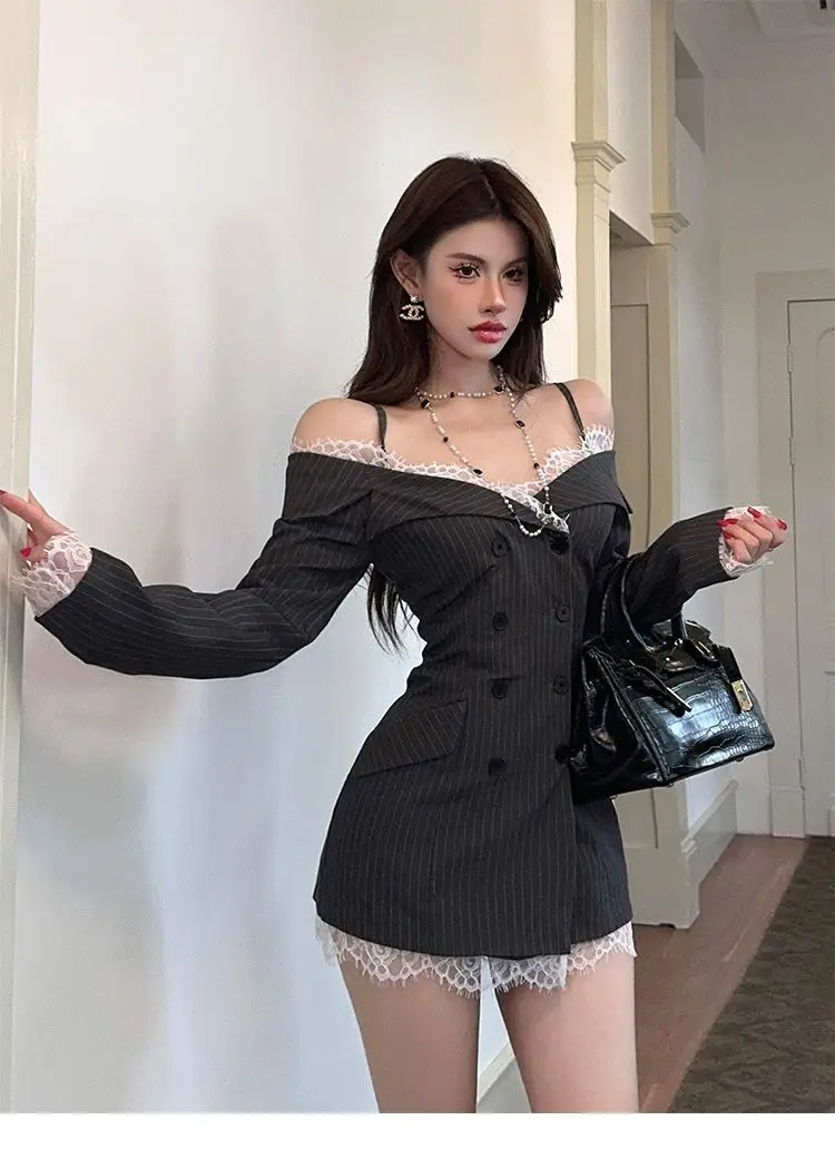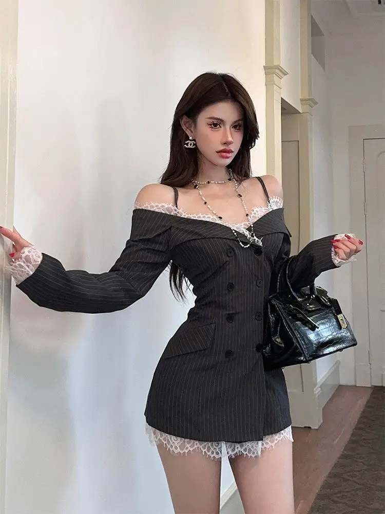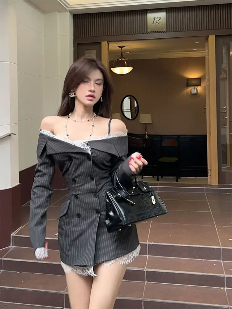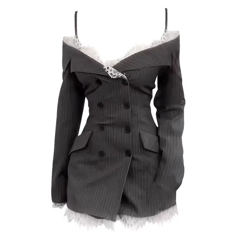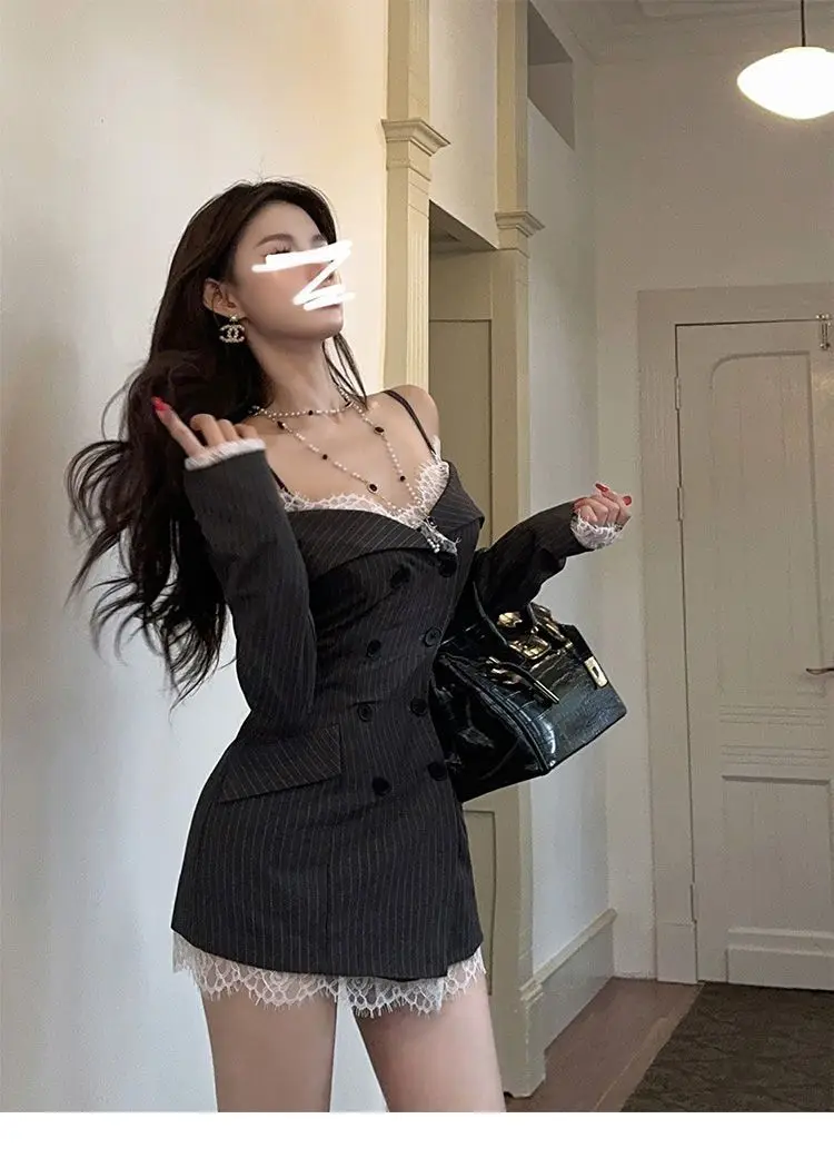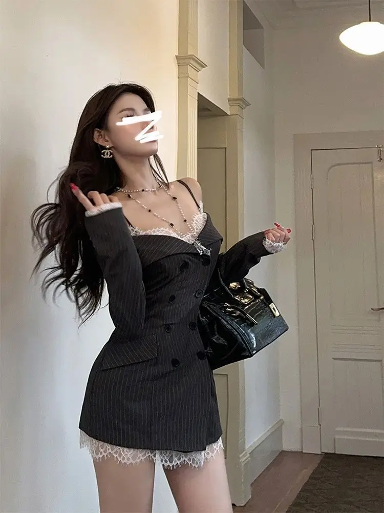 Advbridge Korean Pure Desire Sexy Dresses Spice Girl Lace Splicing Striped Dress Women Early Autumn New Waist Hip Vestido