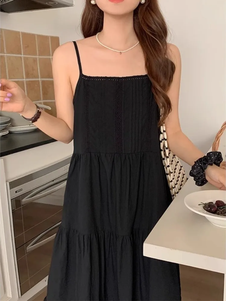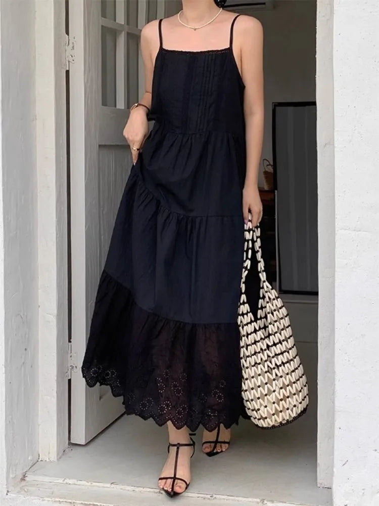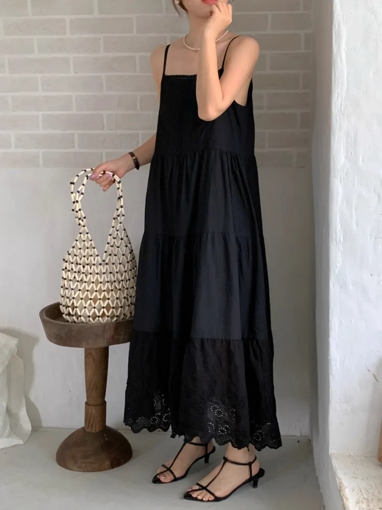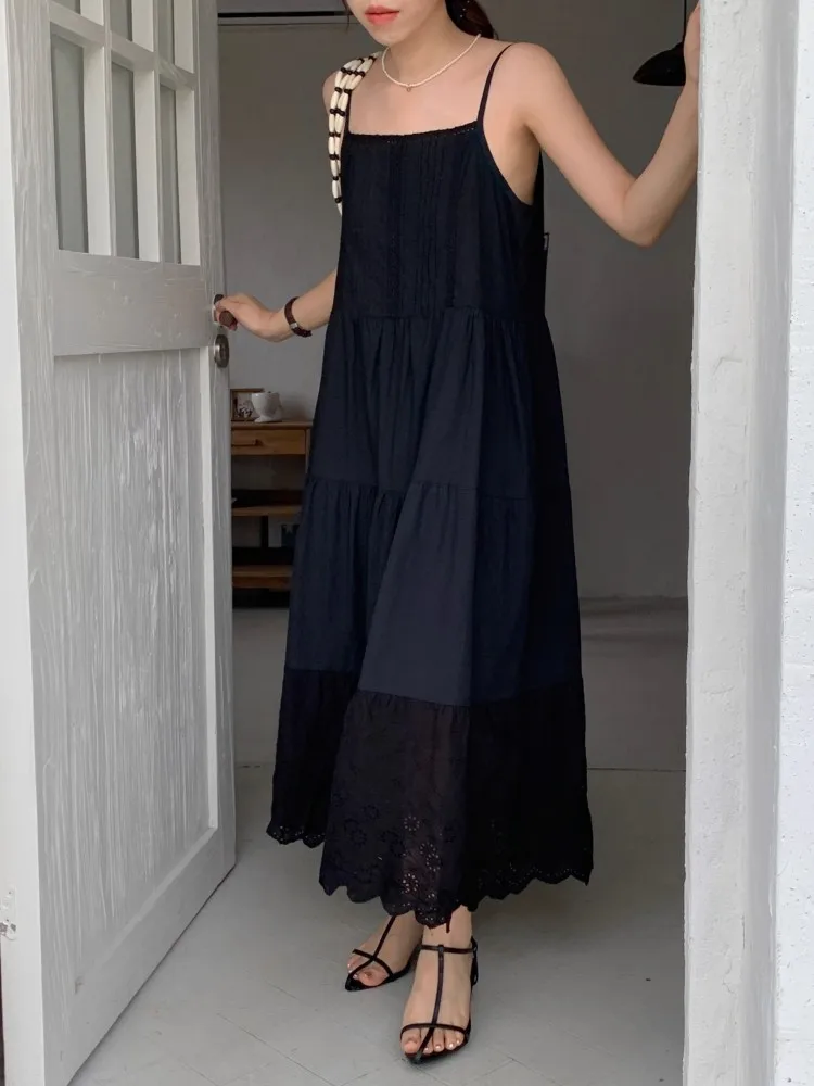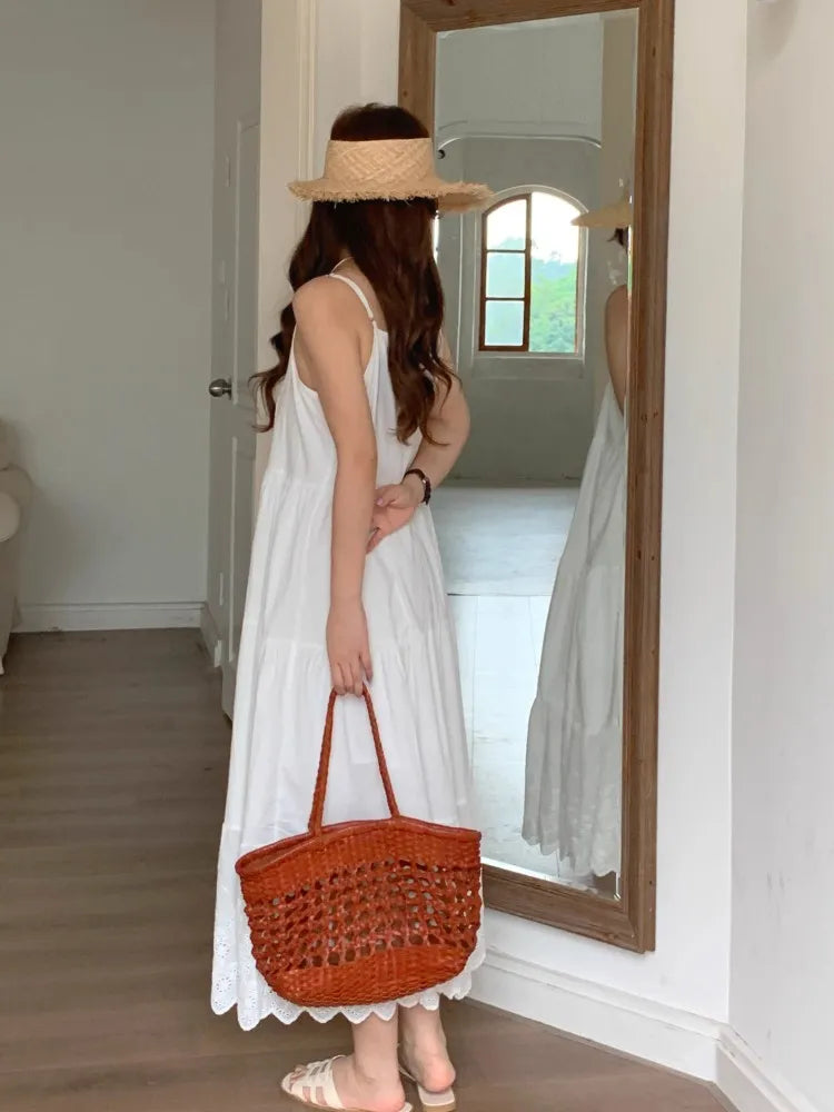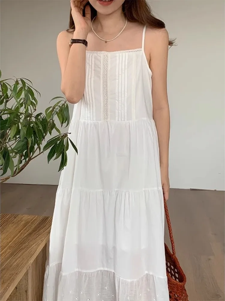 Advbridge Lace Lace Patchwork Suspender Women's Summer French Style Pure Cotton Small Fresh Suspender White Minimalist Dress