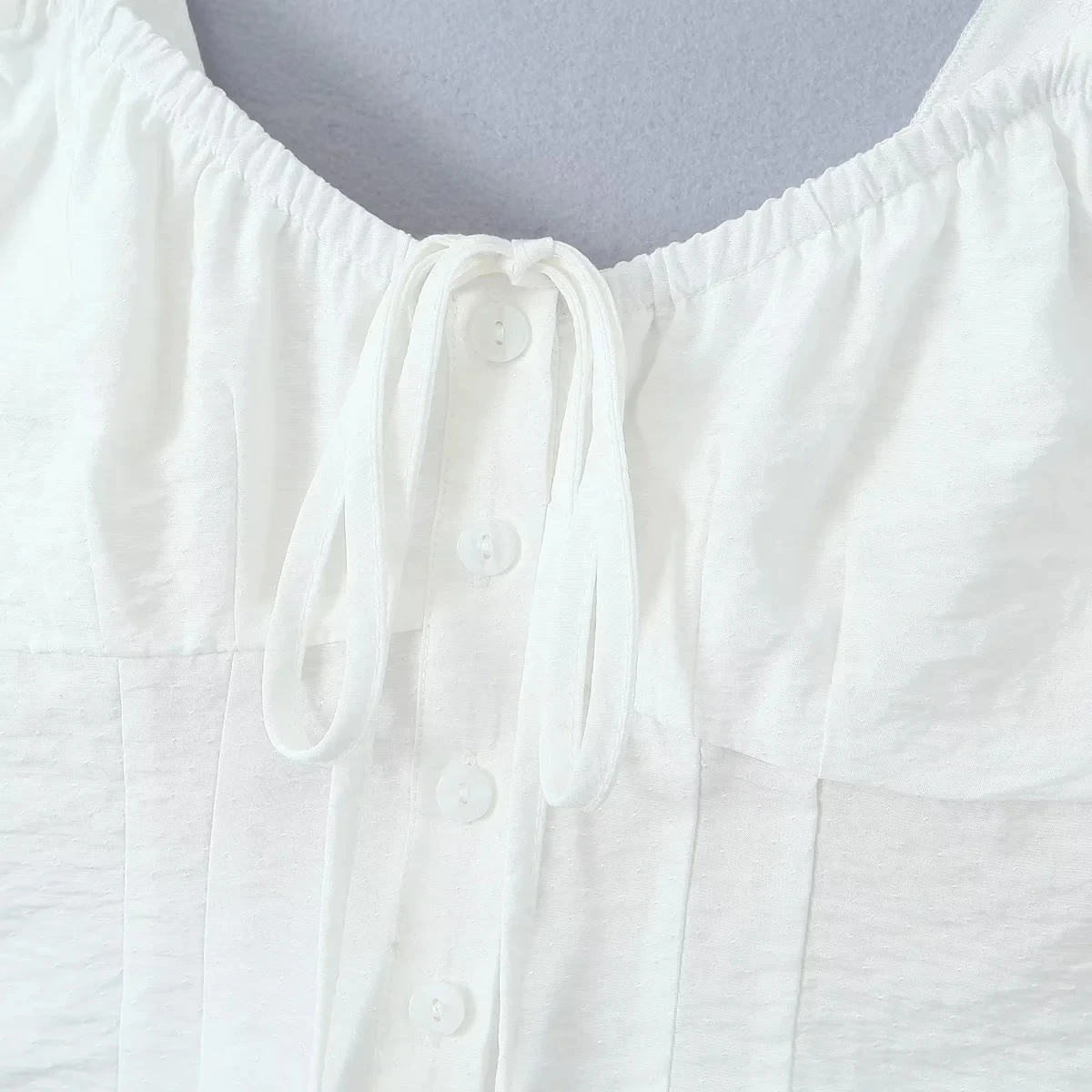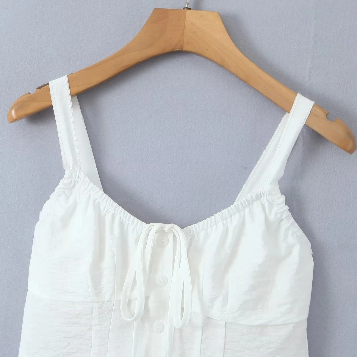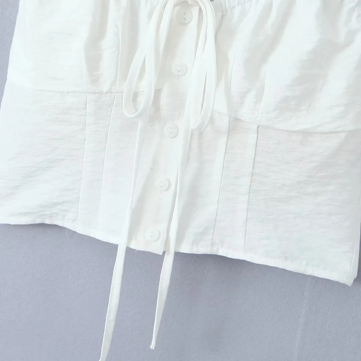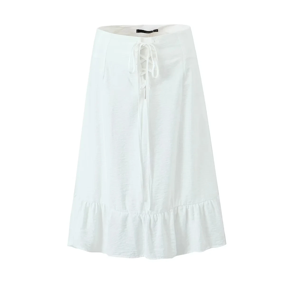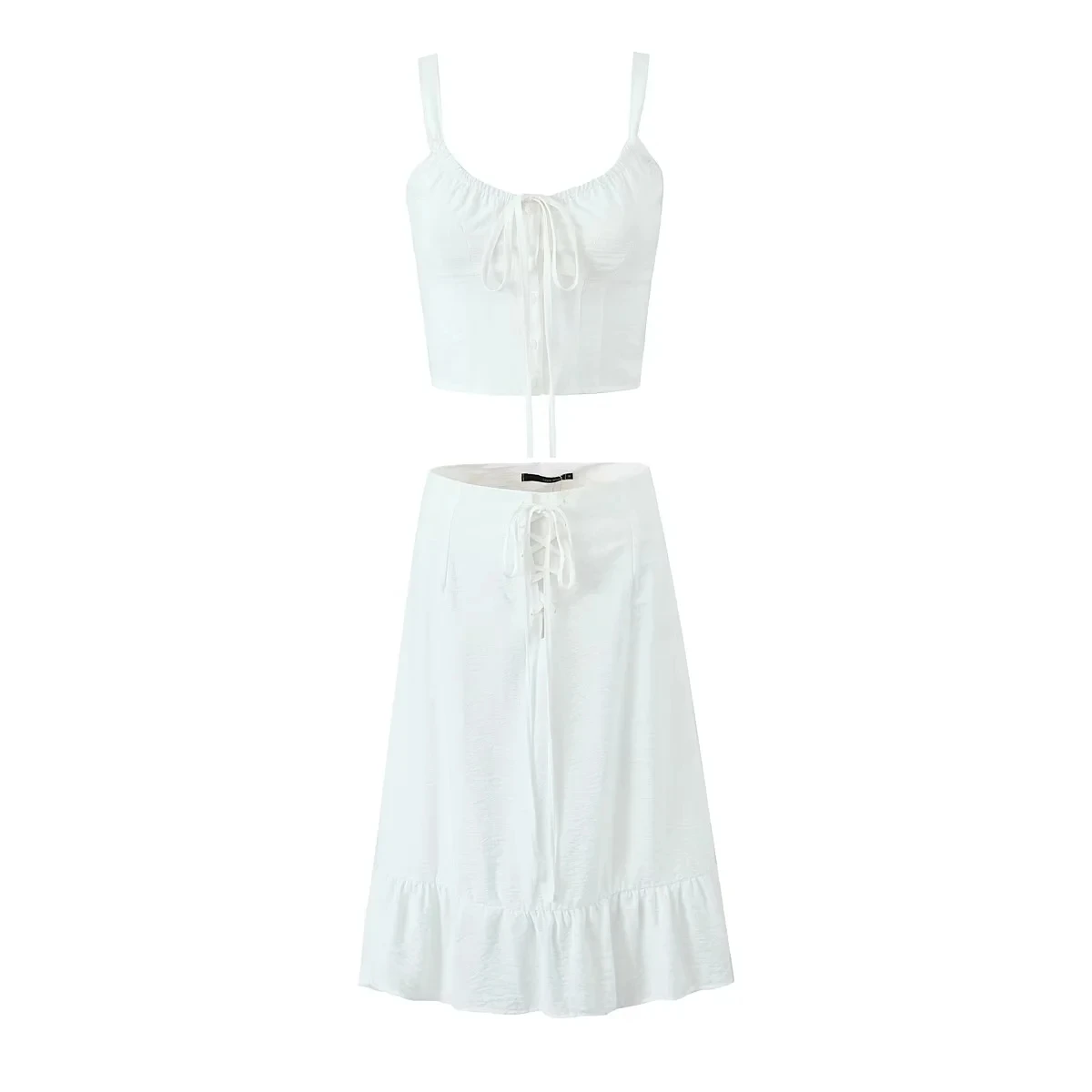 Advbridge Lace Up White 2 Pcs Outfit Women Summer Dress Set 2024 New Beach Cotton Skirt Matching Set Midi Vestido Chic Sundress