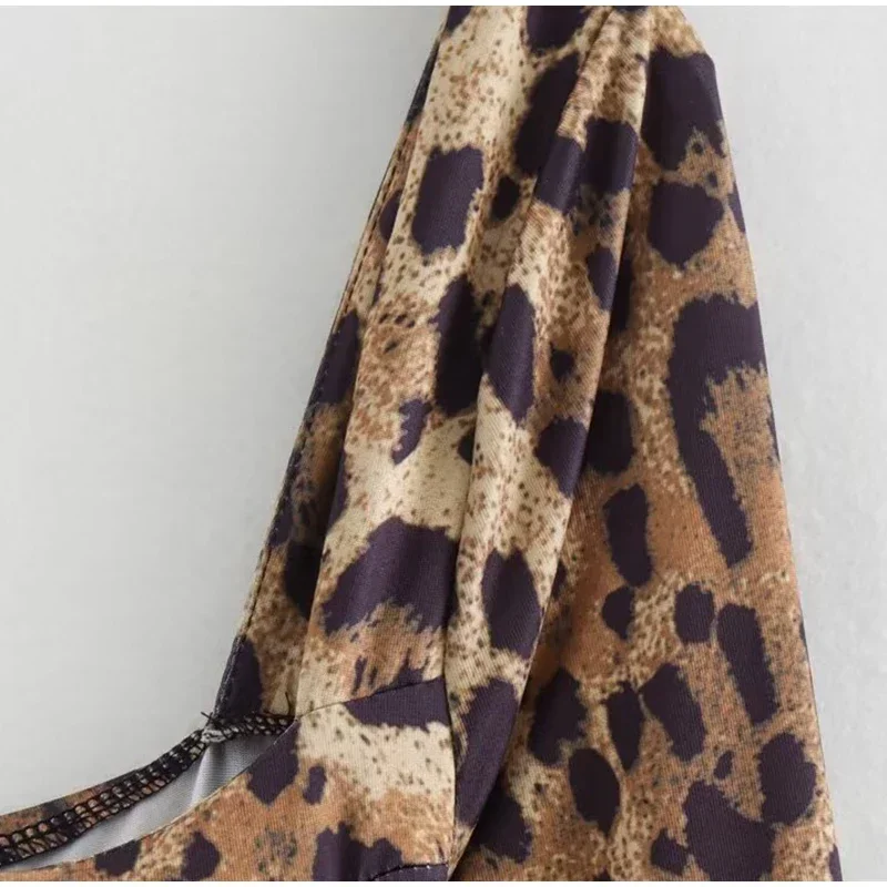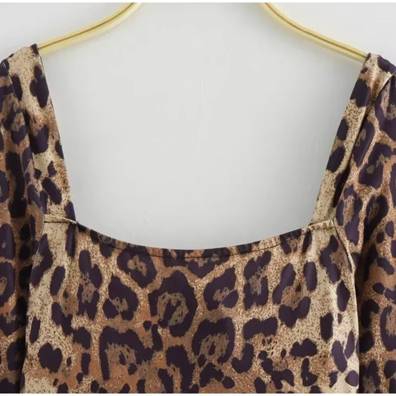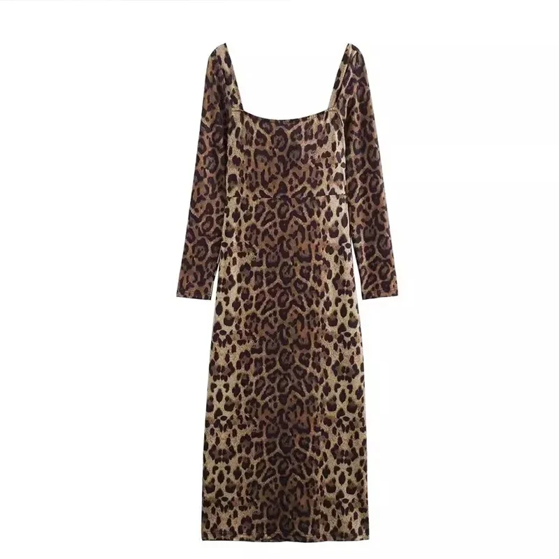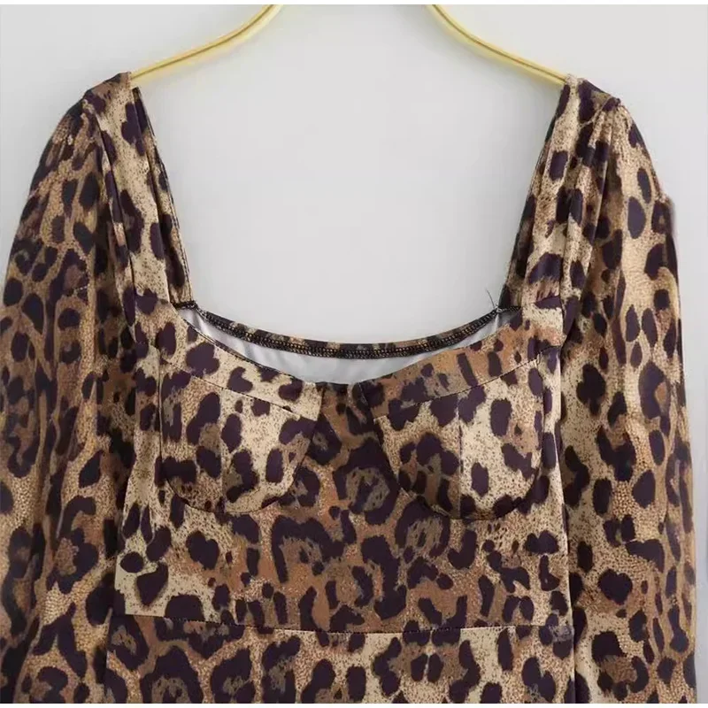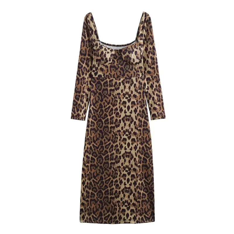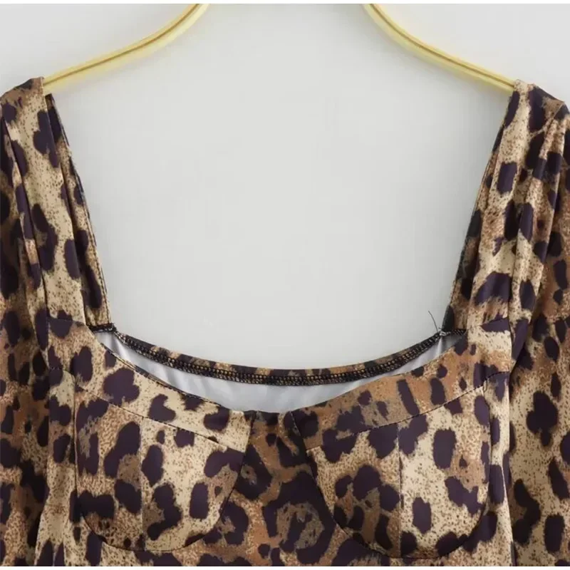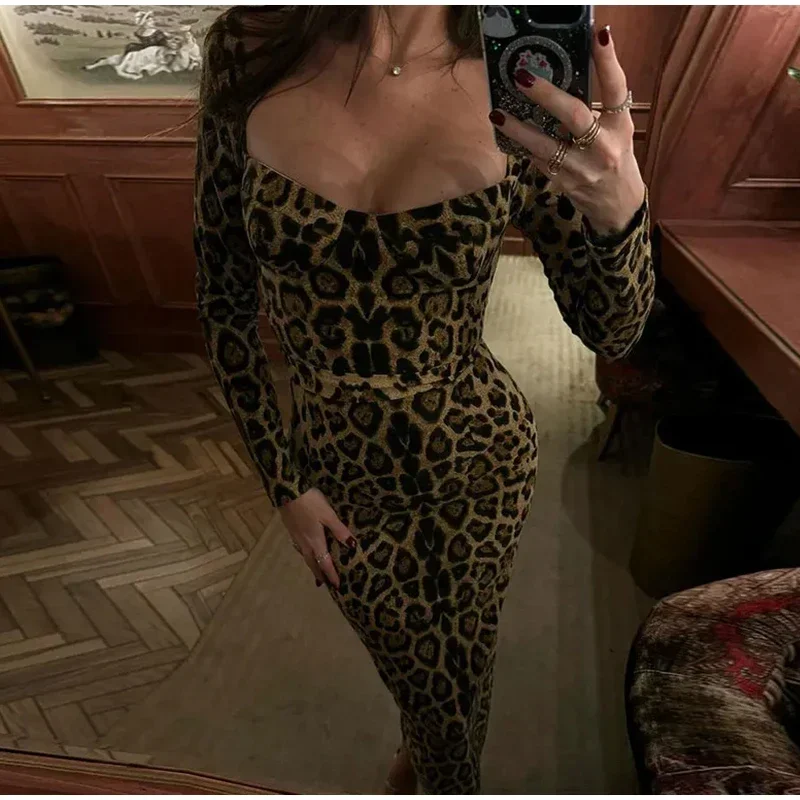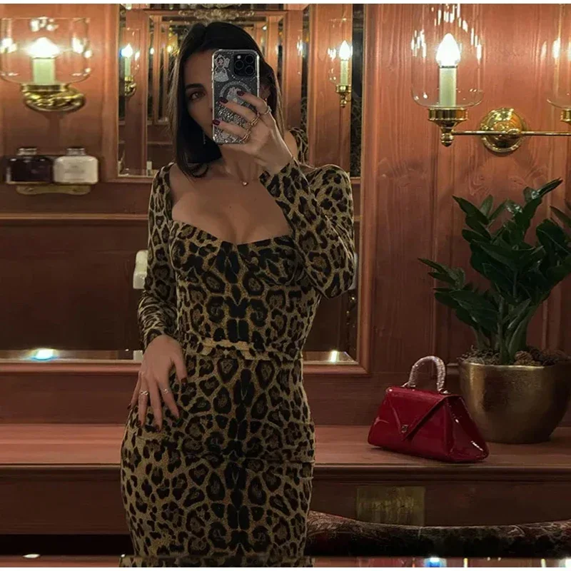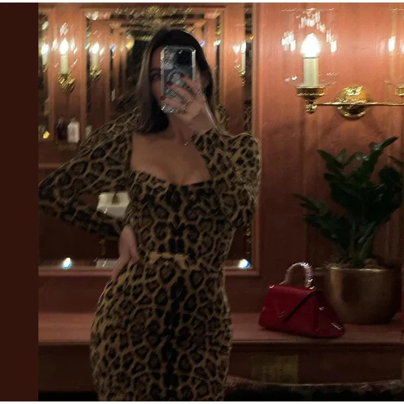 Advbridge Leopard Print Long Dress Women Sexy V-neck Slim Long Sleeve Square Collar Party Club Dresses 2024 Summer Lady Fashion Vestidos