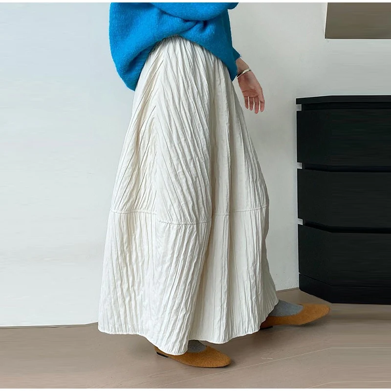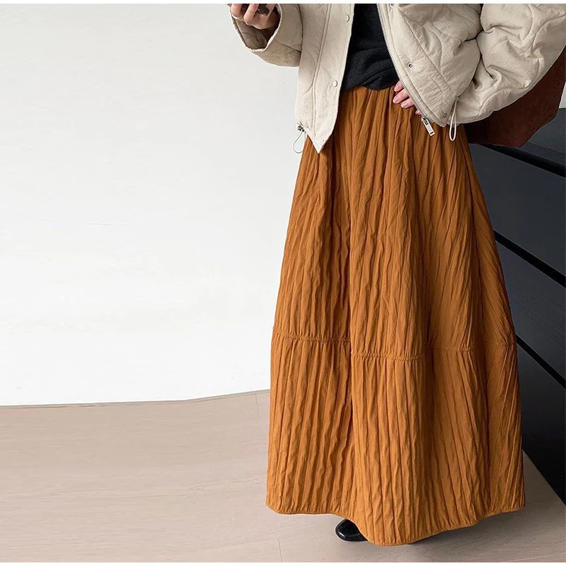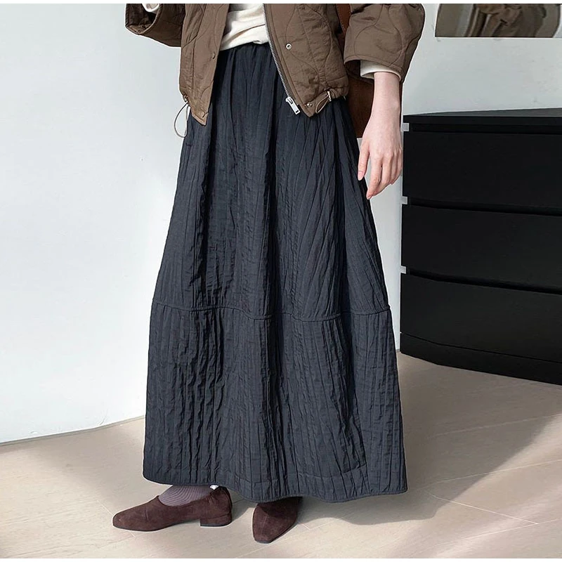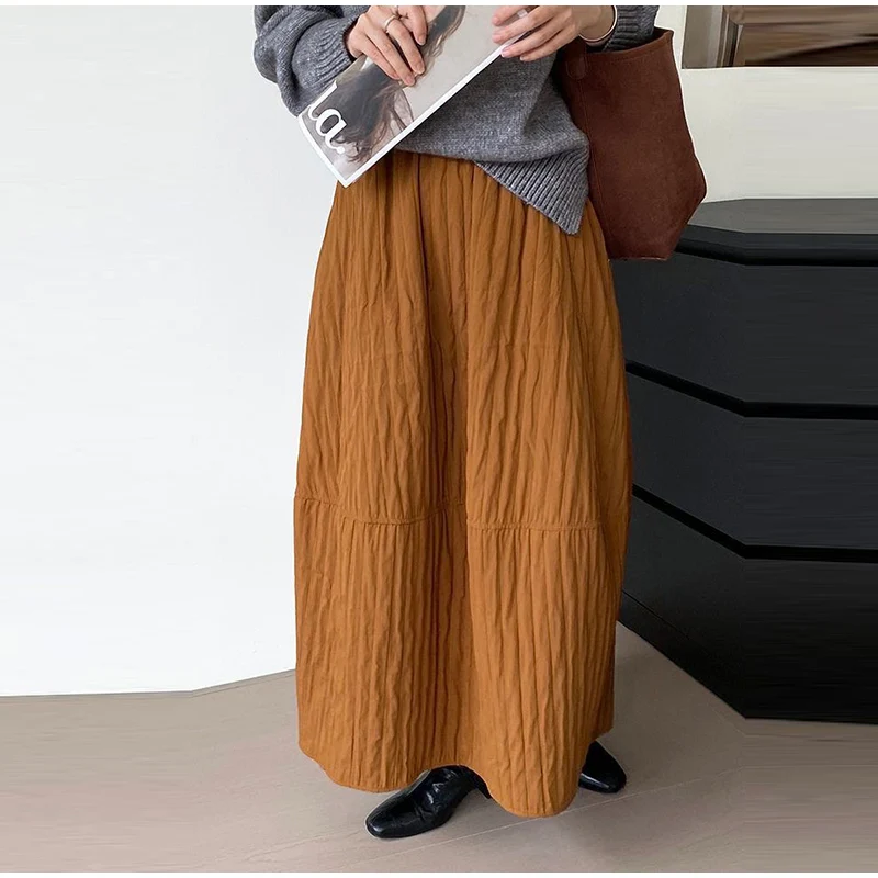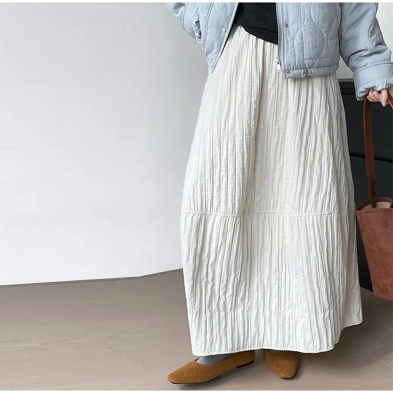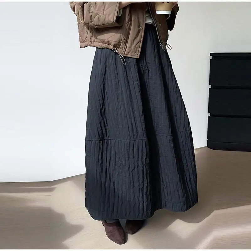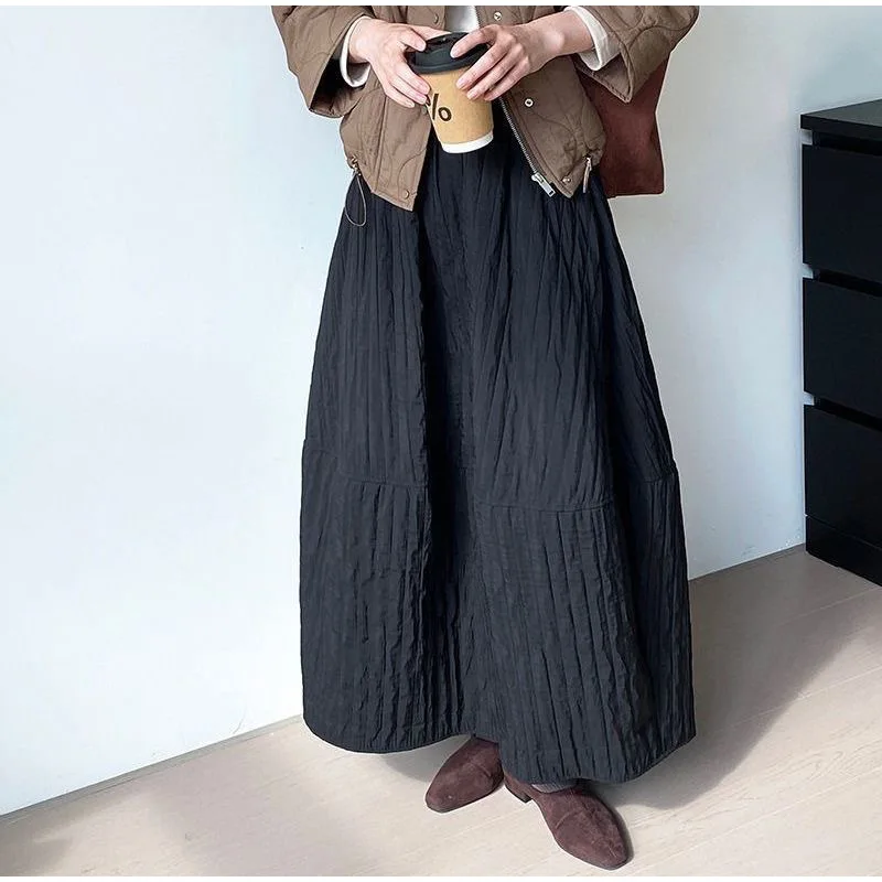 Advbridge Loose Stripe Flower Bud Skirt Women Casual High Elaist Waist Silk Line Warm Lantern Dress Female 2025 Spring New Lady Outwears