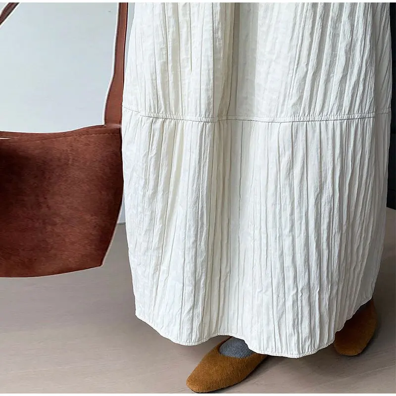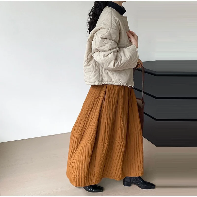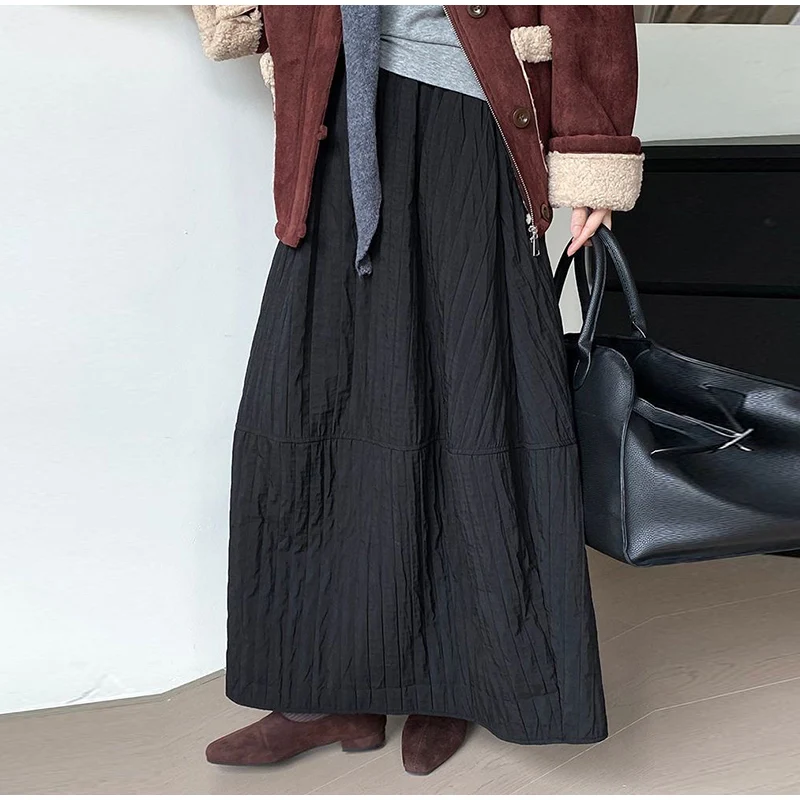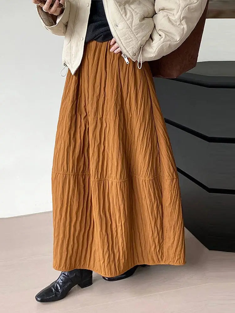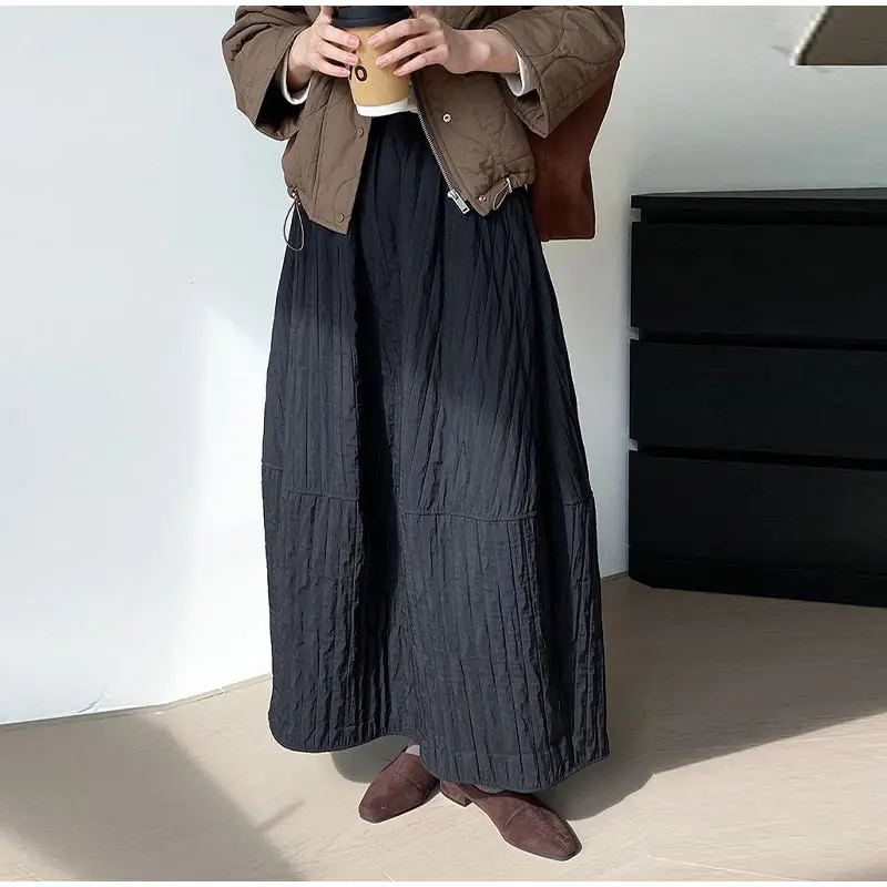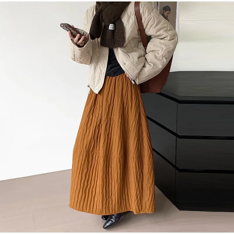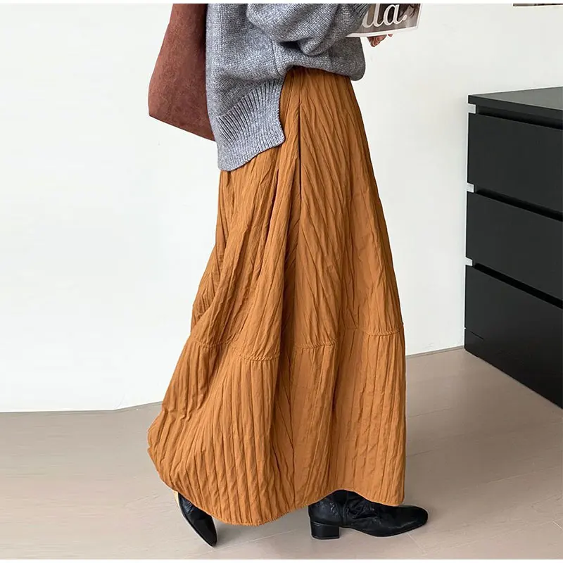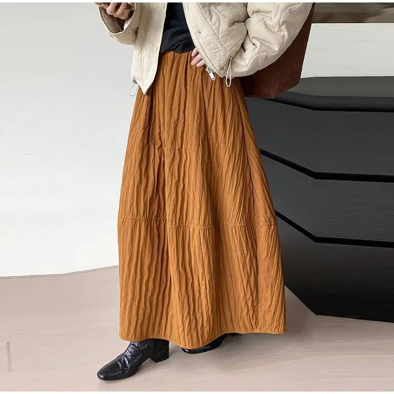 Advbridge Loose Stripe Flower Bud Skirt Women Casual High Elaist Waist Silk Line Warm Lantern Dress Female 2025 Spring New Lady Outwears