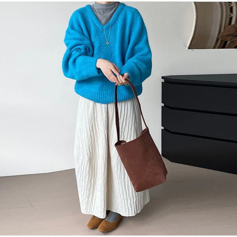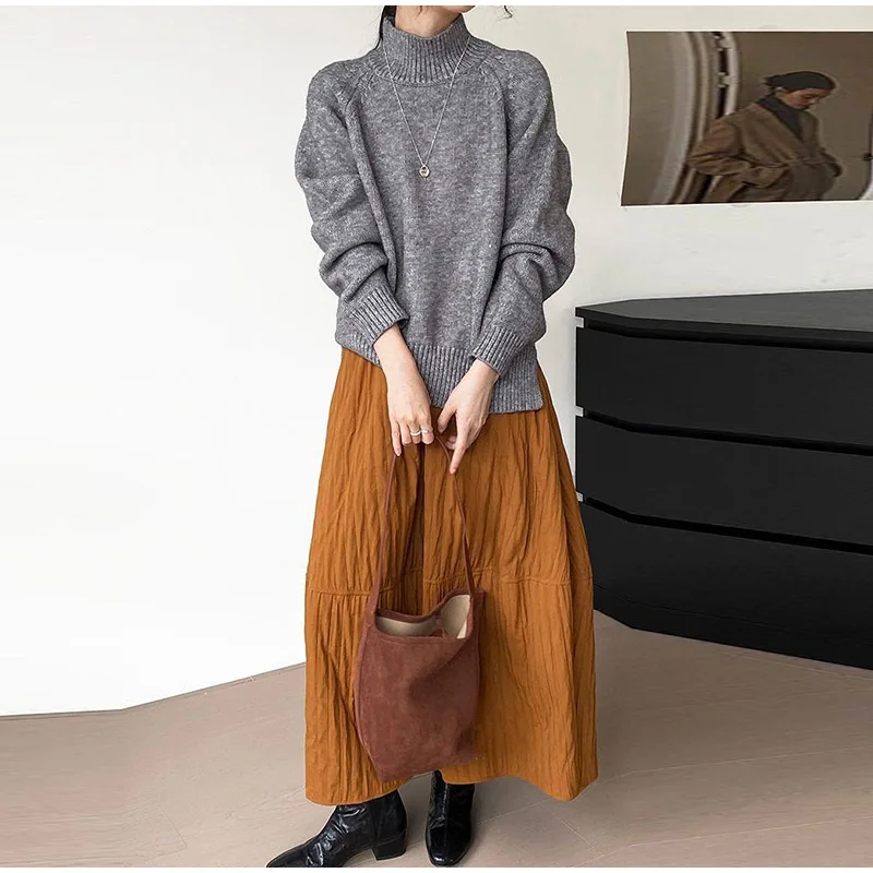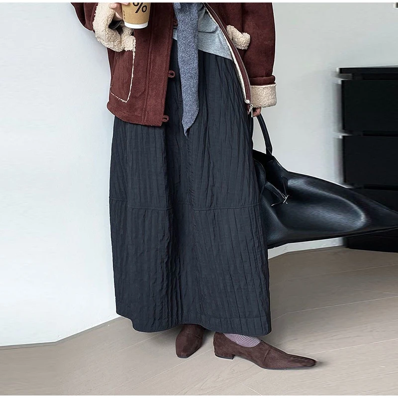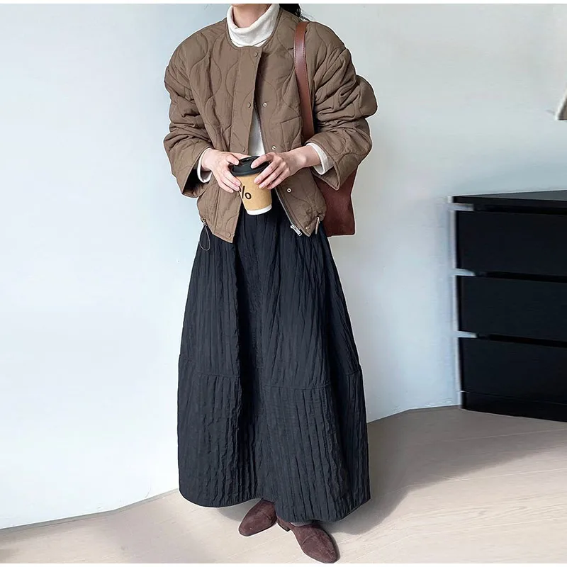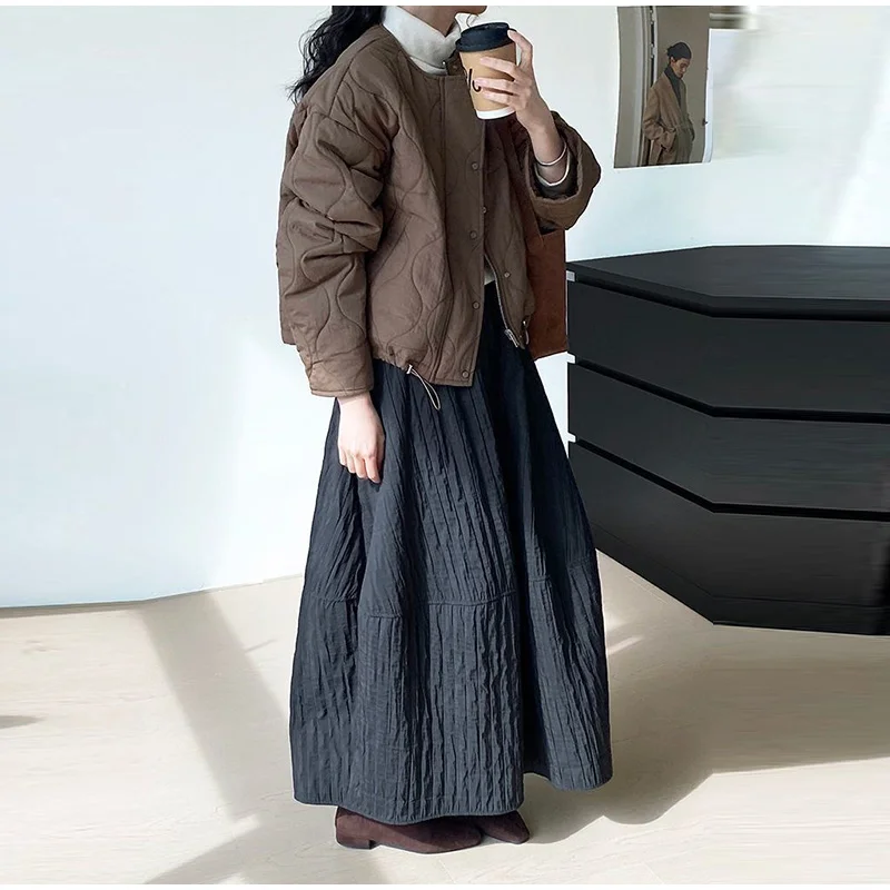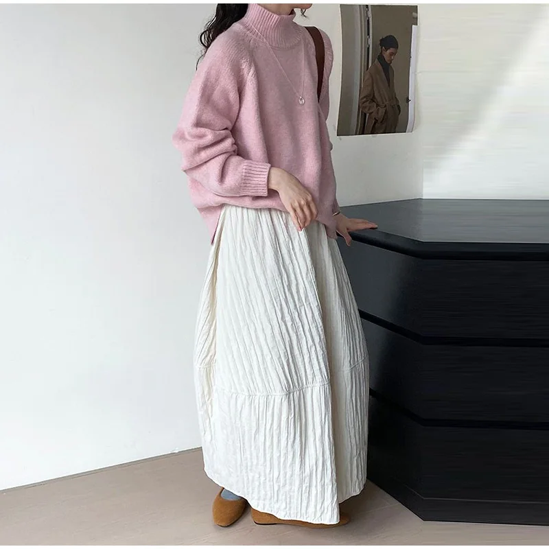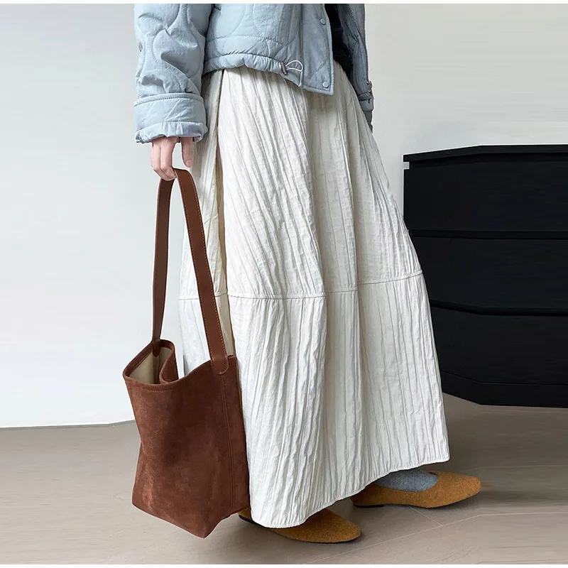 Advbridge Loose Stripe Flower Bud Skirt Women Casual High Elaist Waist Silk Line Warm Lantern Dress Female 2025 Spring New Lady Outwears