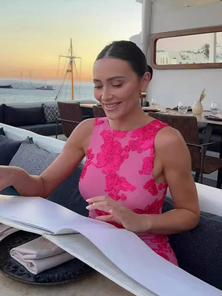 Advbridge Mesh Stereo Discoid Flower Wrapped Hip Long Dresses Sexy Slim Fit Patchwork Women 3D Design Sleeveless Round Neck Evening Dress