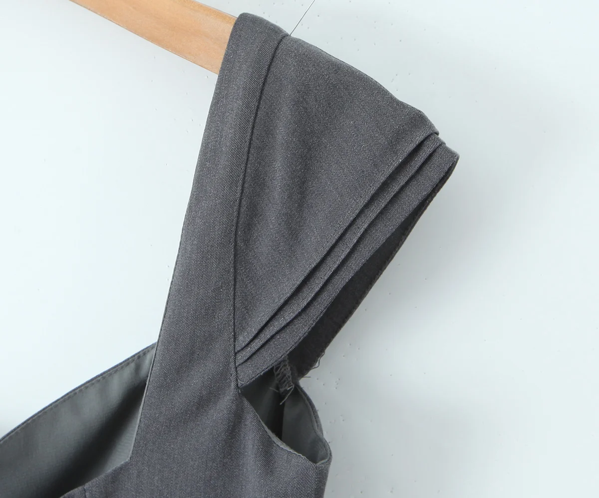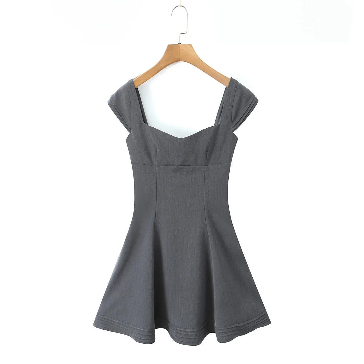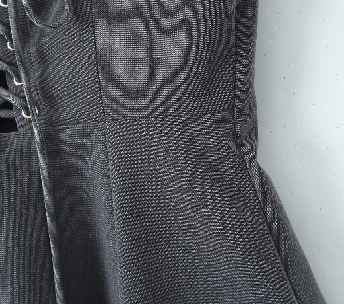 Advbridge Retro French Gray V Low Chest Bodycoon Corset style Mini Dress Women Cross Lacing up Back Short Sleeve A-line Party Robe Summer