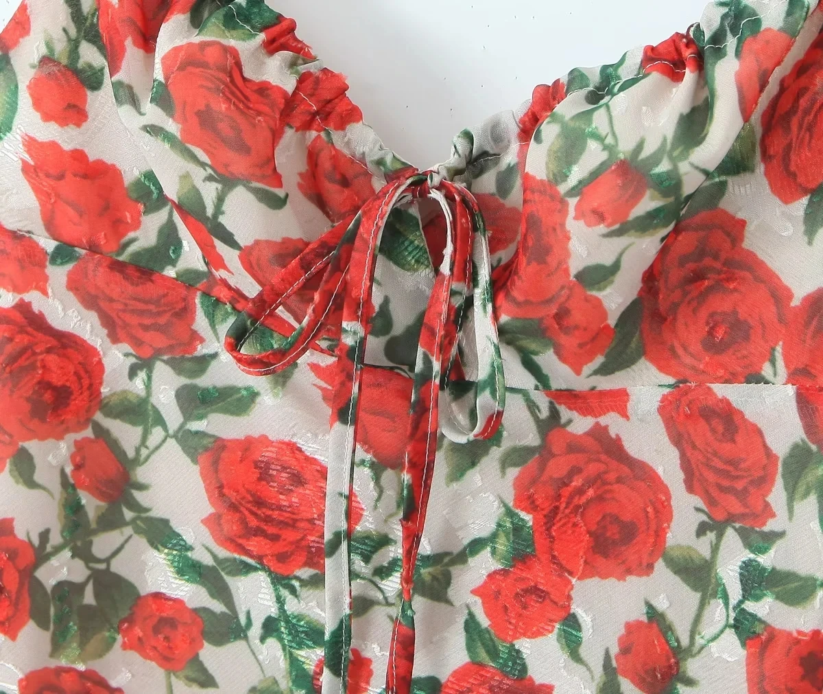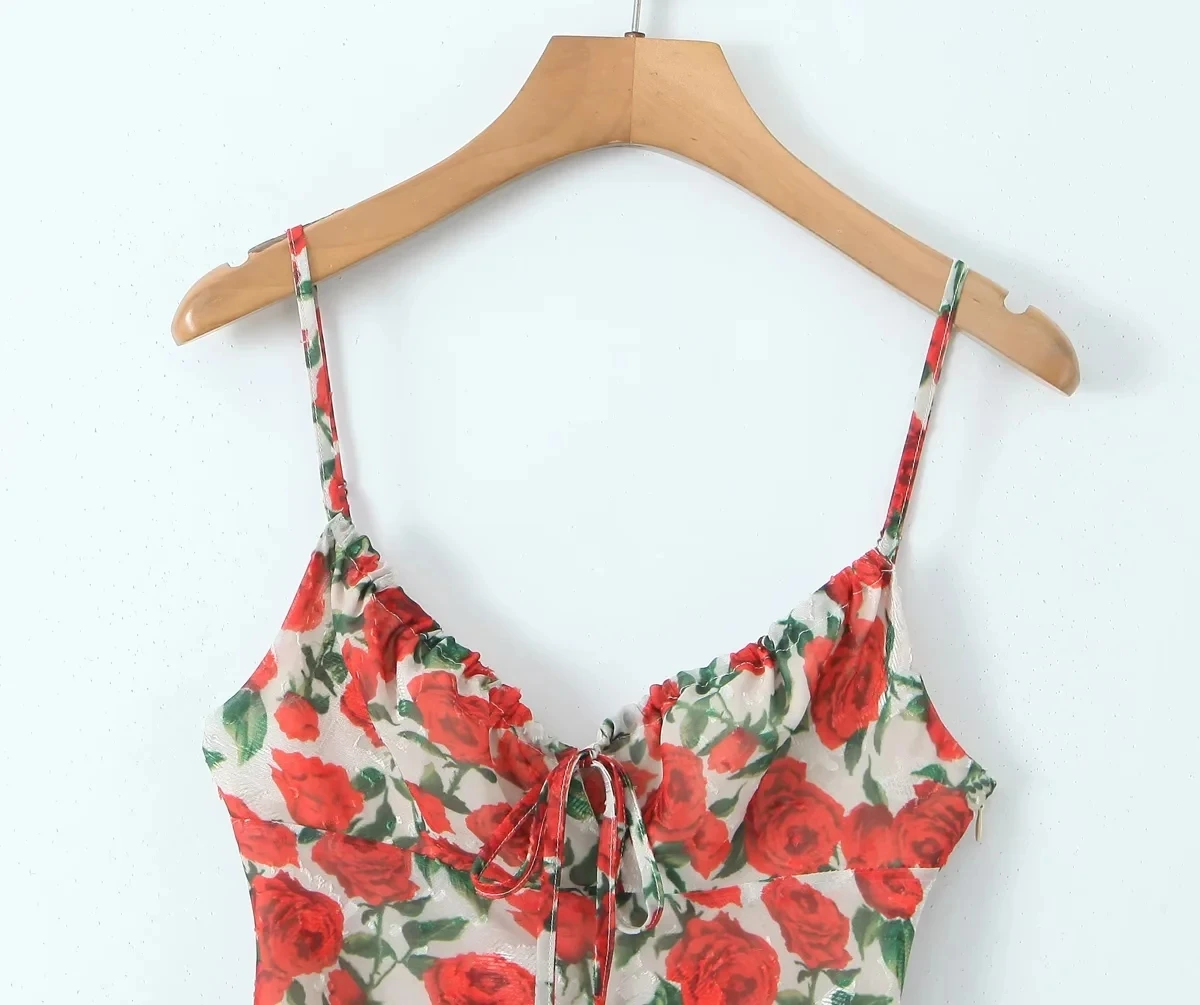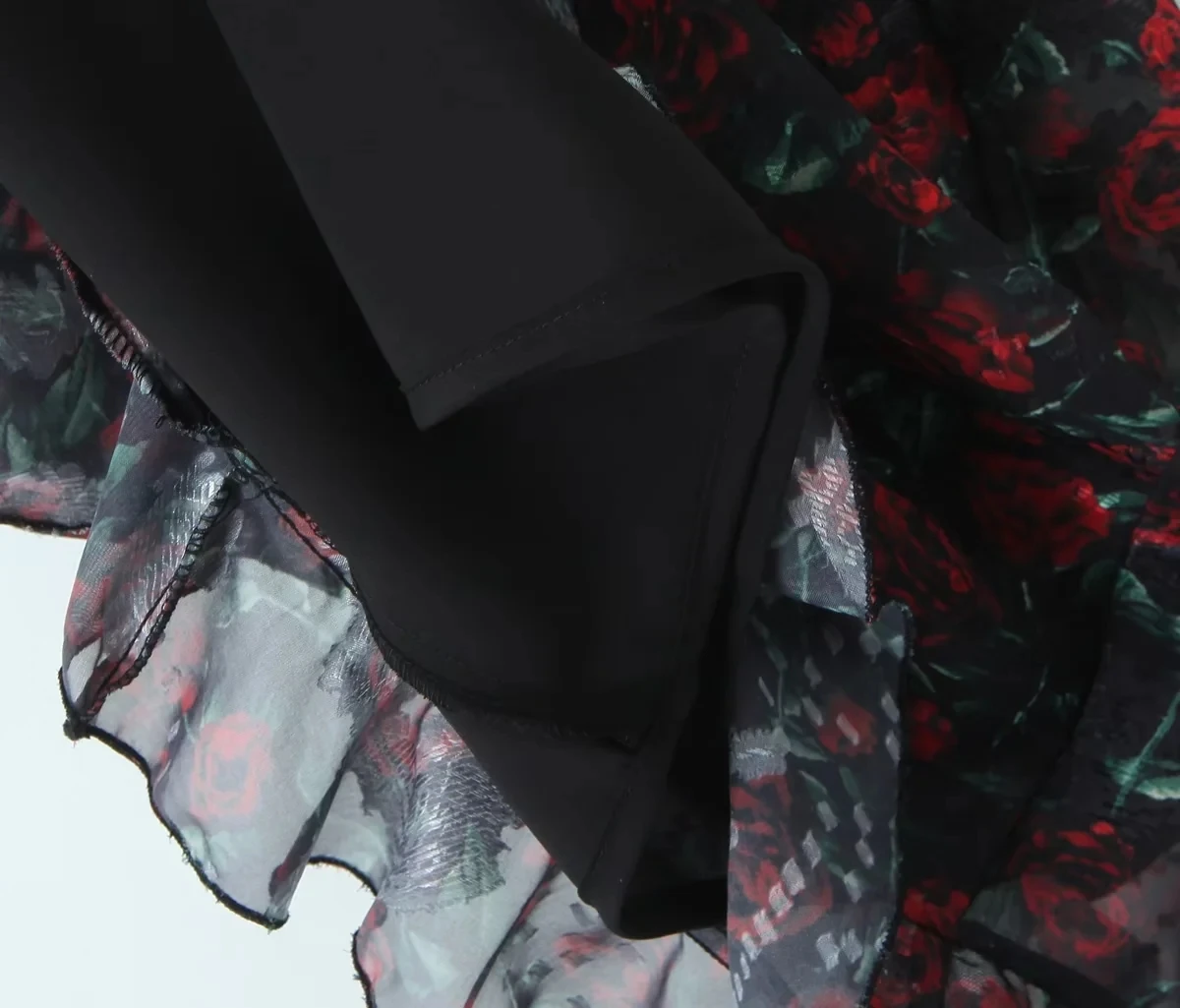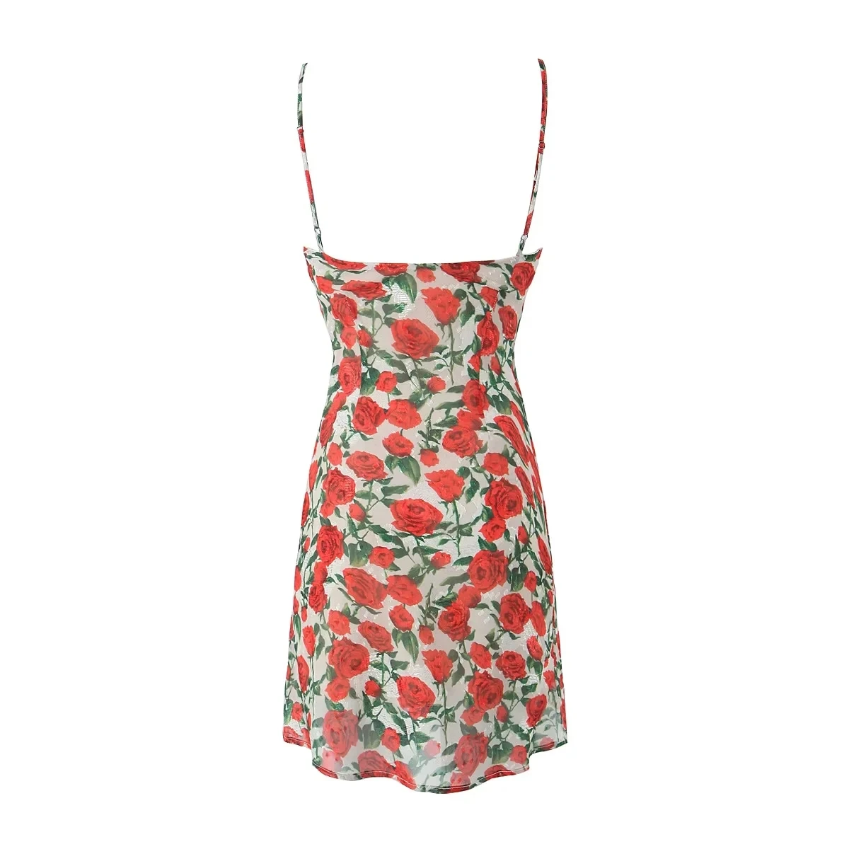 Advbridge Rose Red Flower Printed Black Bodycon Summer Dress Women 2024 Beach Boho Maxi Slip Sundress Ruffles Sleeveless Long Floral Dress