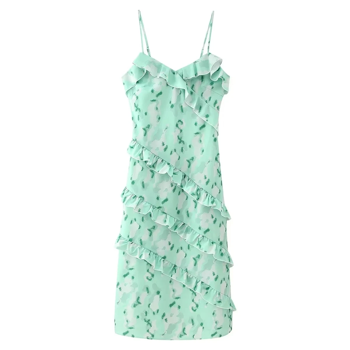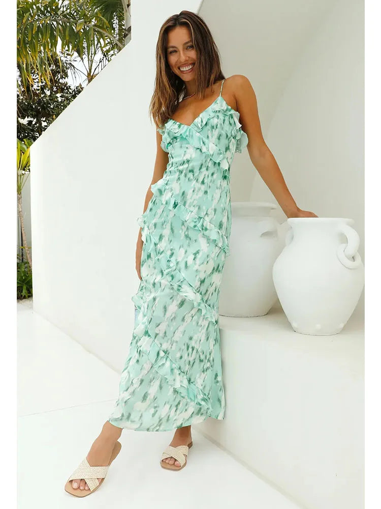Advbridge Ruffles Printed Sundress Women Summer Maxi Slip Dress for Holiday Boho Sleeveless Straight Vestidos 2024 Floral Dress