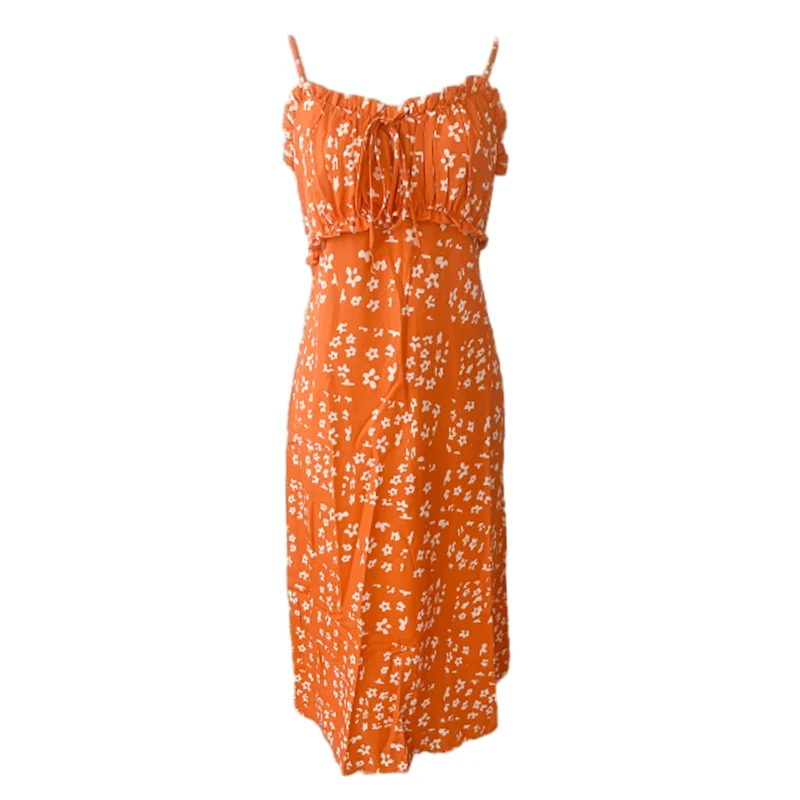 Advbridge Ruffles Straight Elegant Women's Dress Summer Printed Boho Beach Maxi Dress Spaghetti Strap Floral Blue Sundress 2024