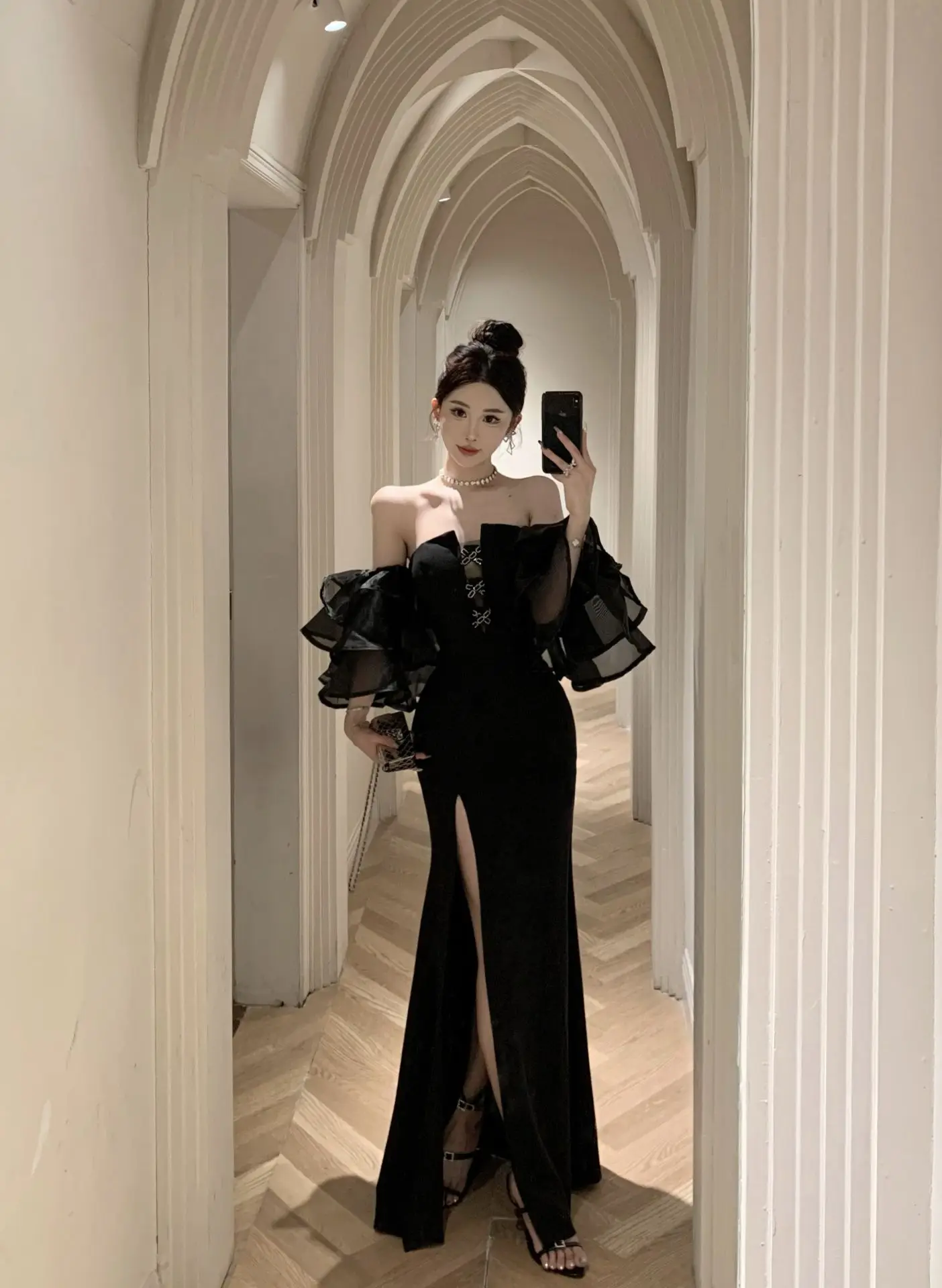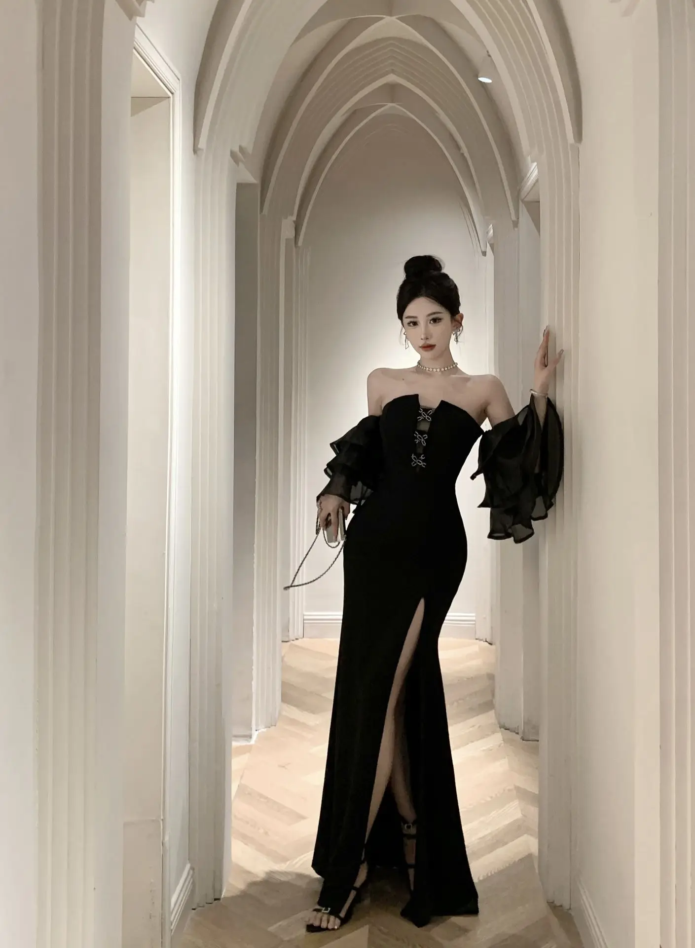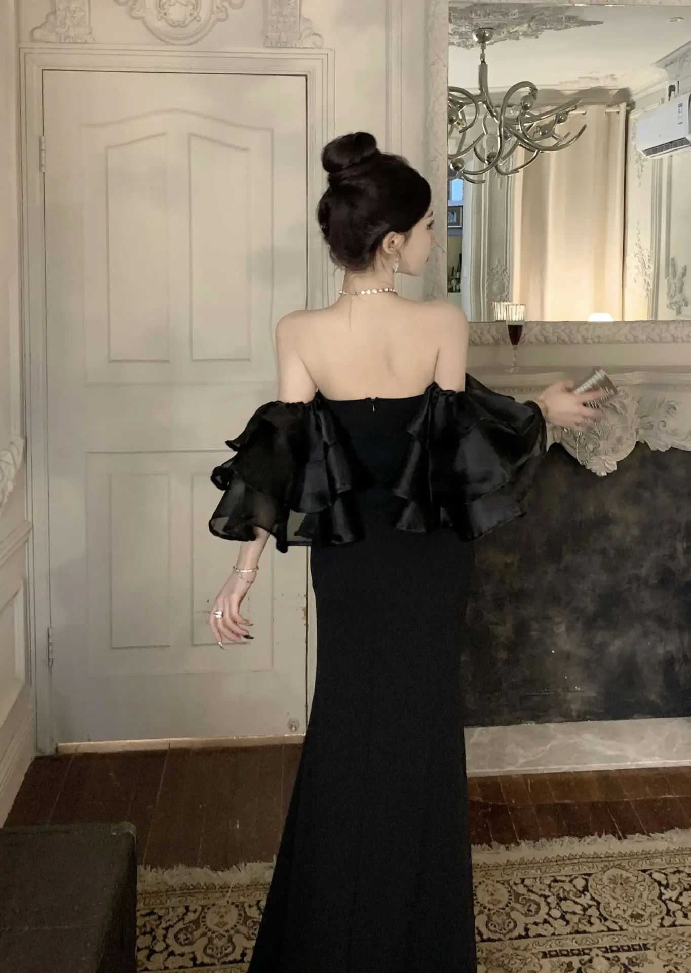 Advbridge Sexy Bodycon Evening Party Dresses for Women Ruffles Strapless High Split Black Mermaid Korean Fashion Prom Robe Vestidos New