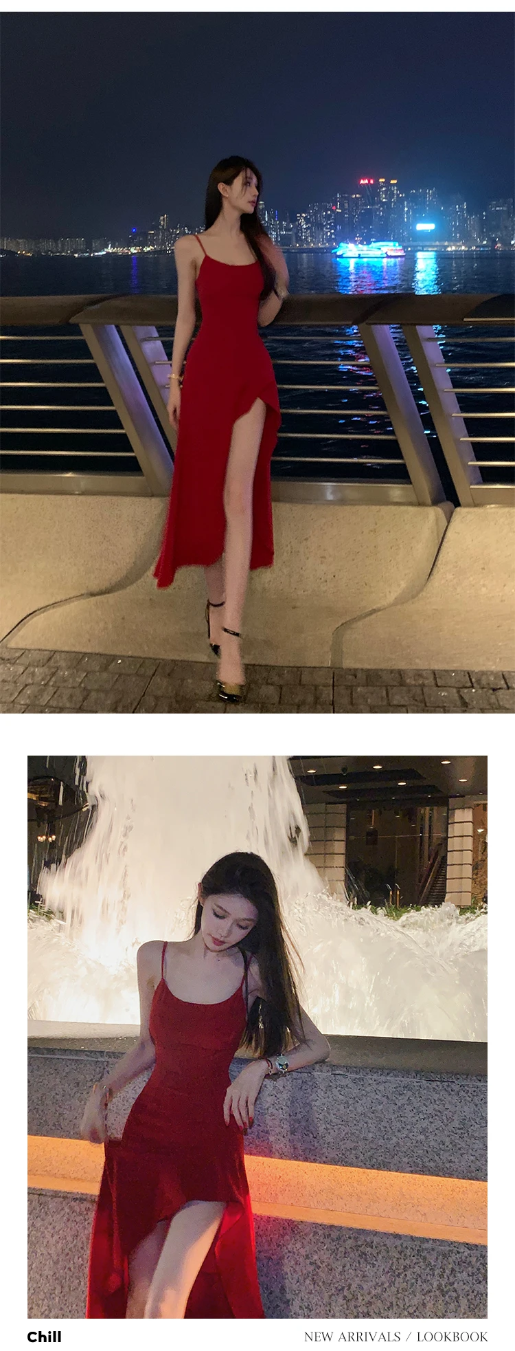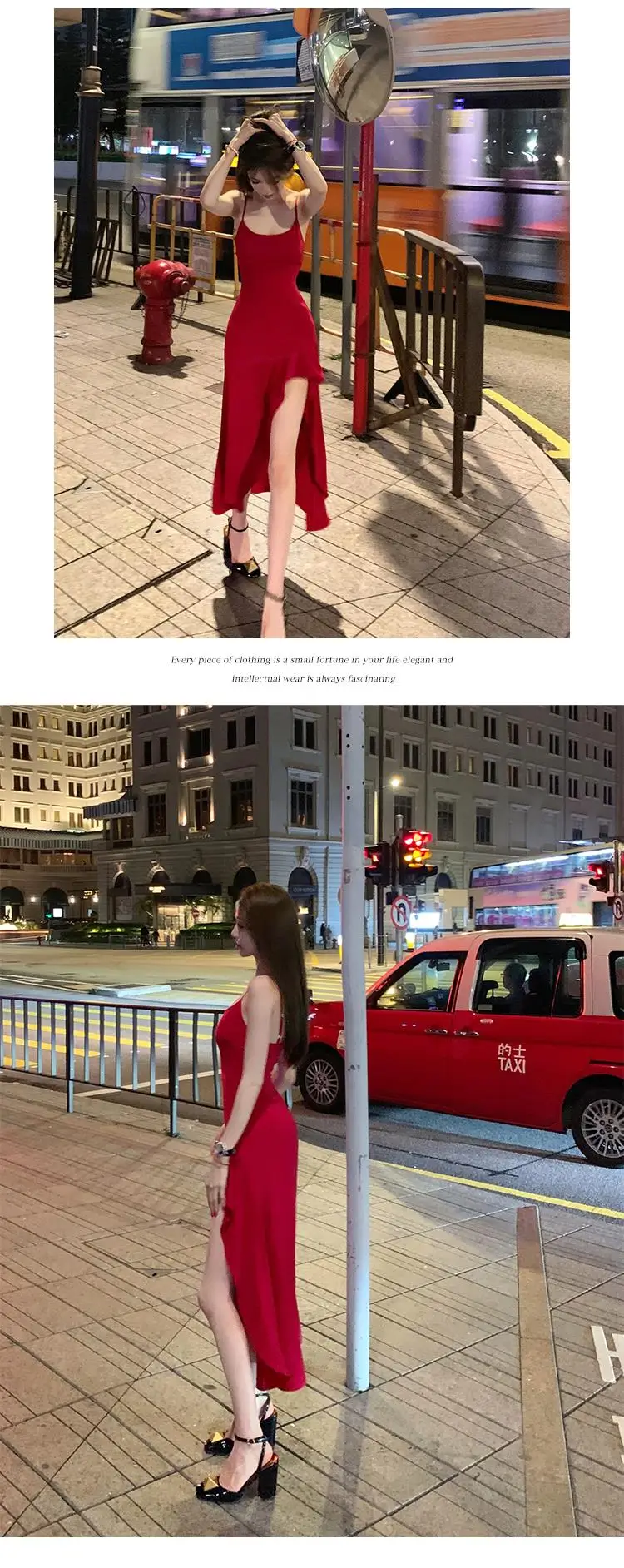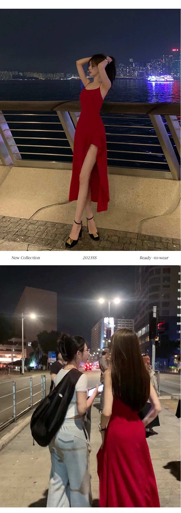 ADVBRIDGE - Sexy Red Dress Women Korean Style Casual Sleeveless Vestidos Female Evening Party Prom Robe Elegant Split Irregular Clothes New
