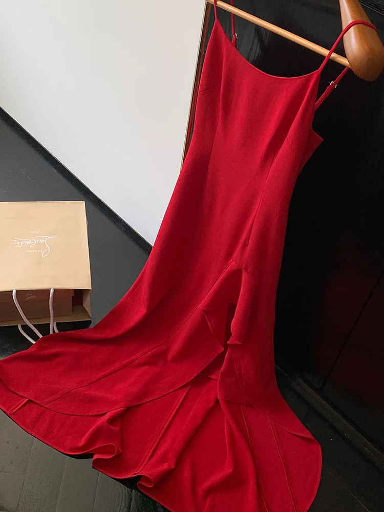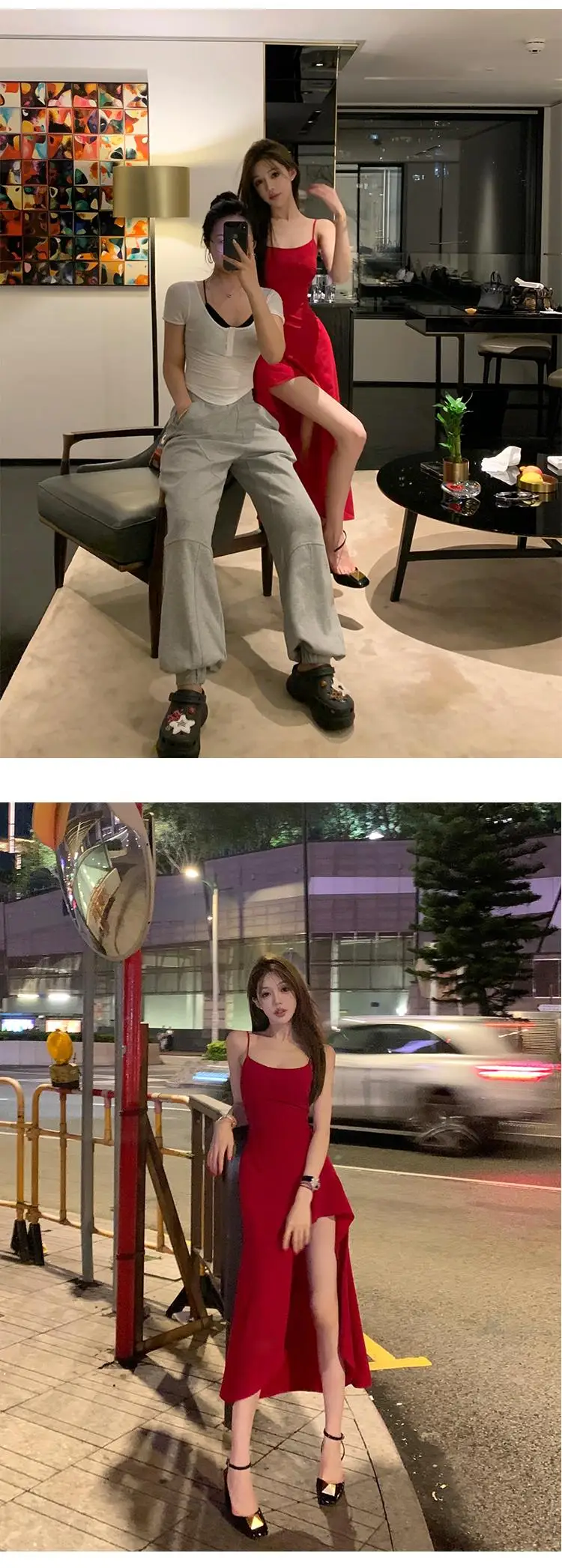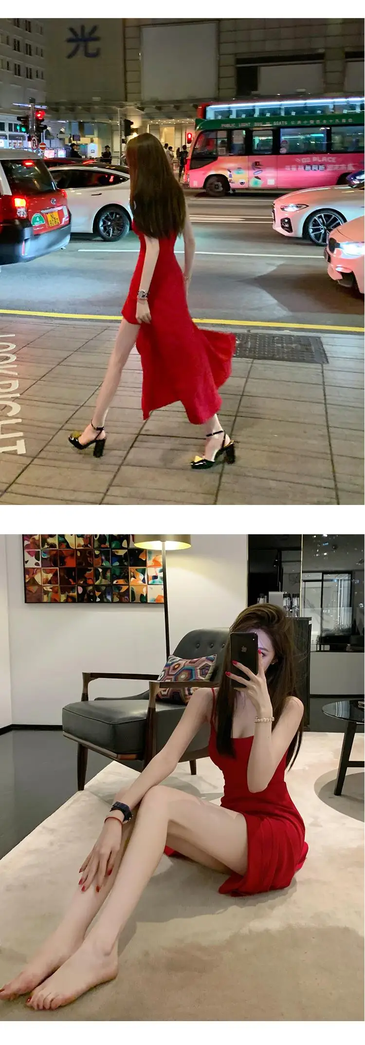 ADVBRIDGE - Sexy Red Dress Women Korean Style Casual Sleeveless Vestidos Female Evening Party Prom Robe Elegant Split Irregular Clothes New