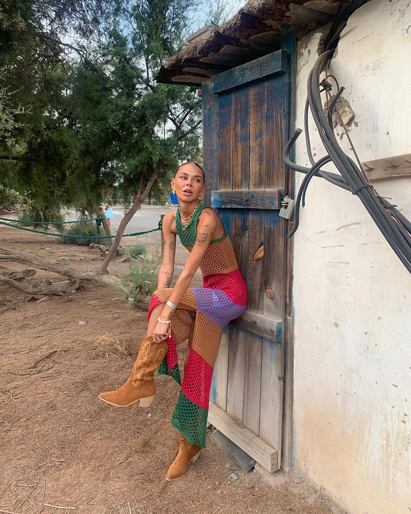 ADVBRIDGE -  Sexy See Through Knitted Dress Fashion Women Sleeveless Tank Mix Dresses Female Patchwork Elegant Beach Holiday Long Robes