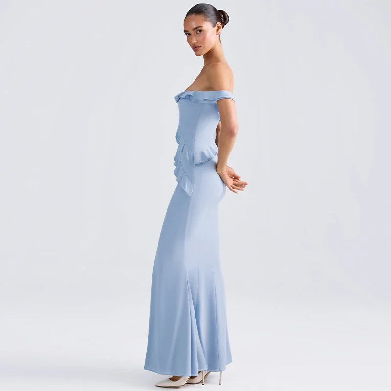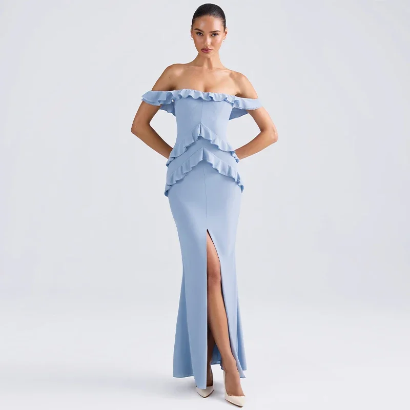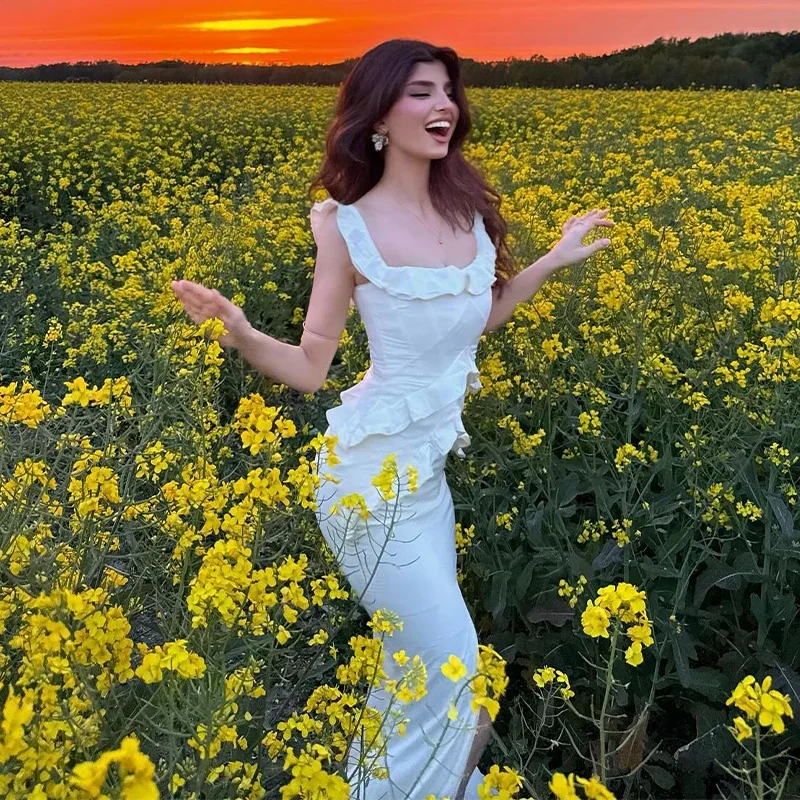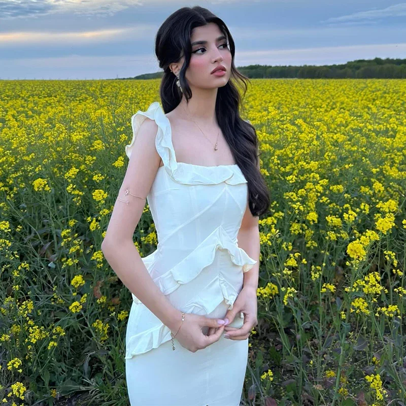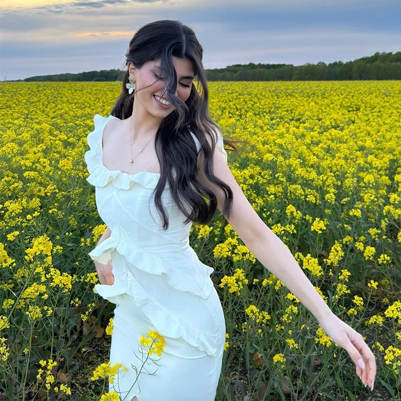 Advbridge Sexy Solid Layered Ruffles Spliced Slim Dress Women Chic Square Neck Sleeveless Split Dresses 2024 New Lady Party Club Robes
