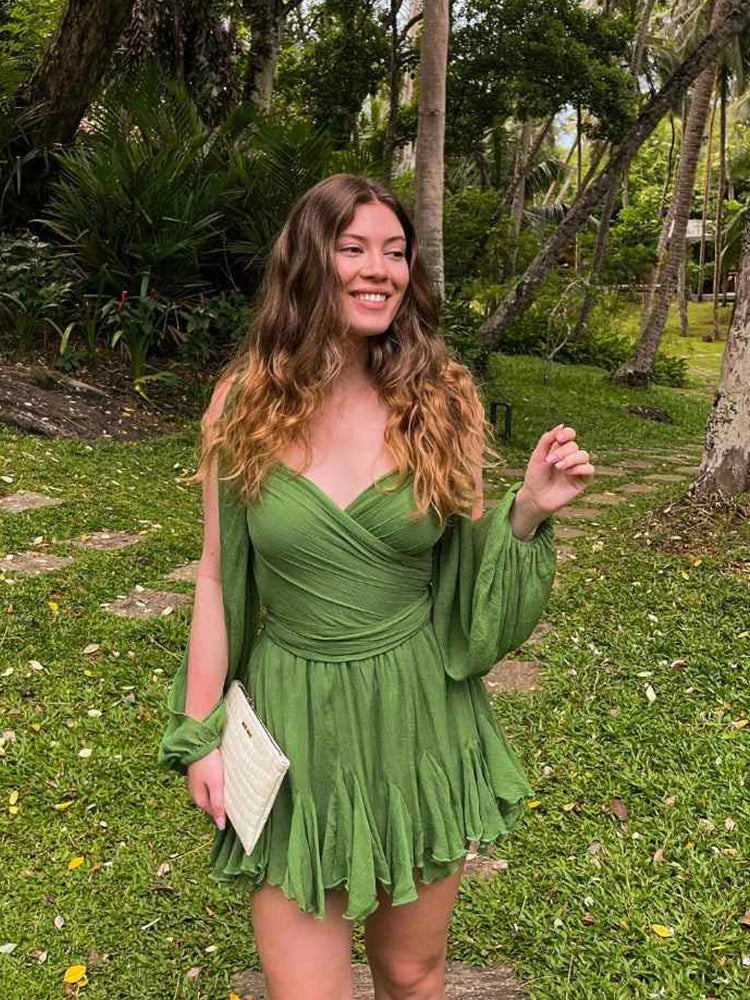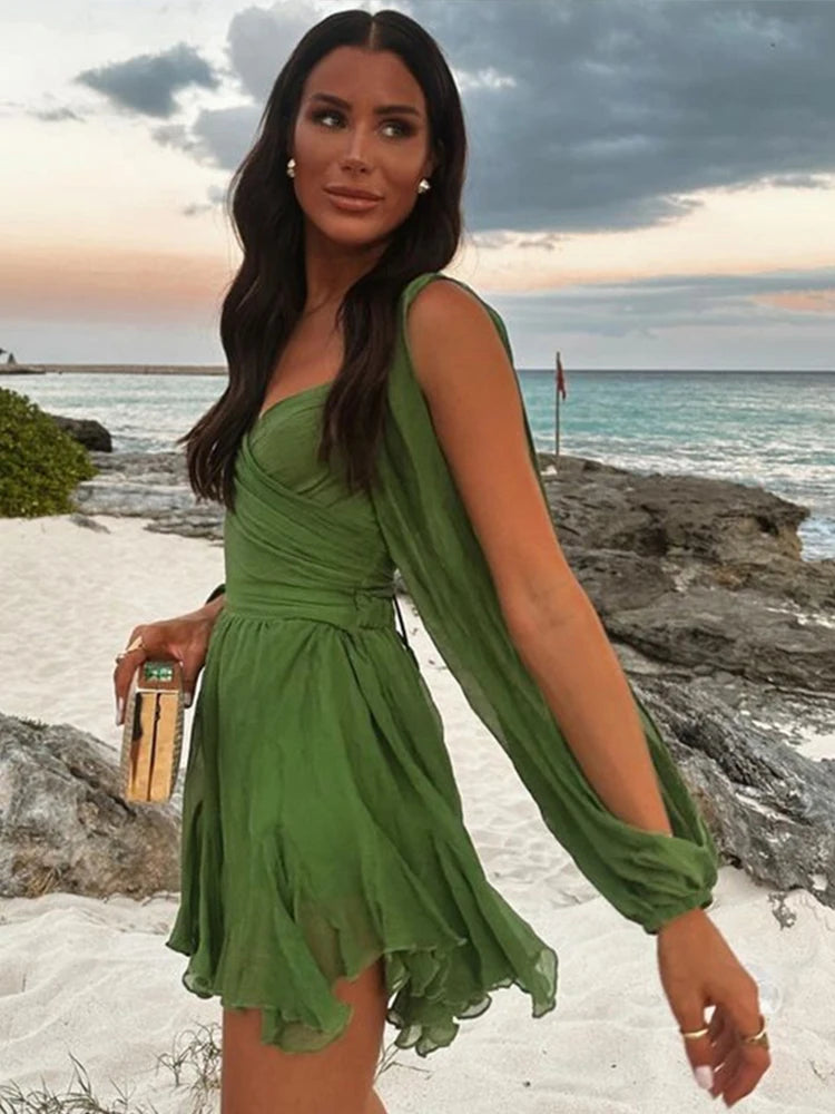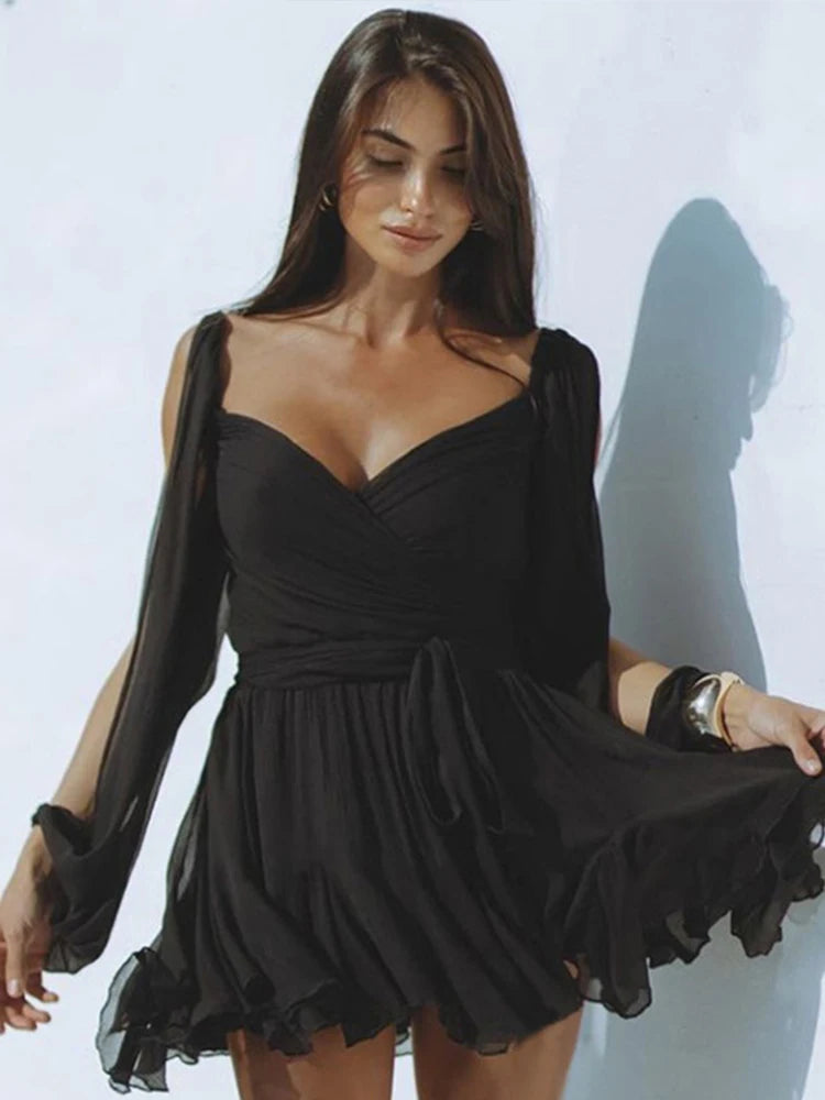 Advbridge Sexy V Neck Solid Womens Dresses Pleated Hollow Out Backless Lady Dress 2024 Summer Beach Long Sleeve Casual Lady Vestidos