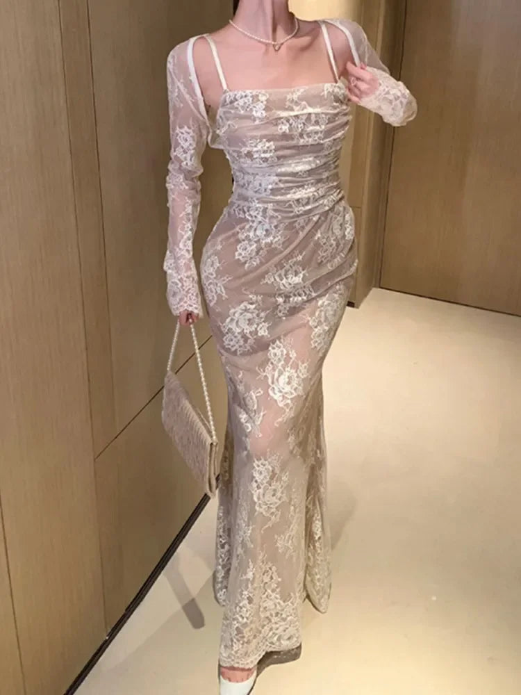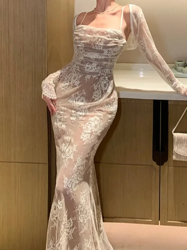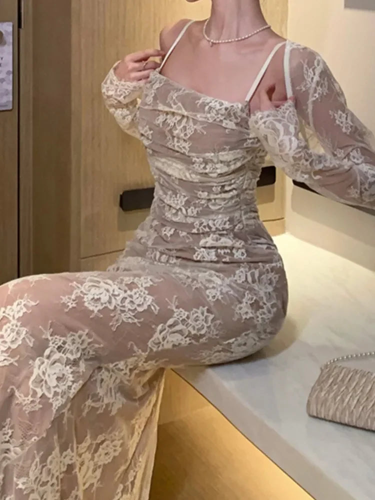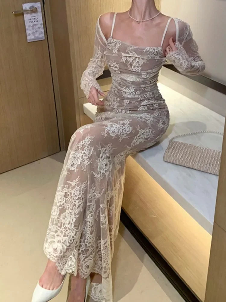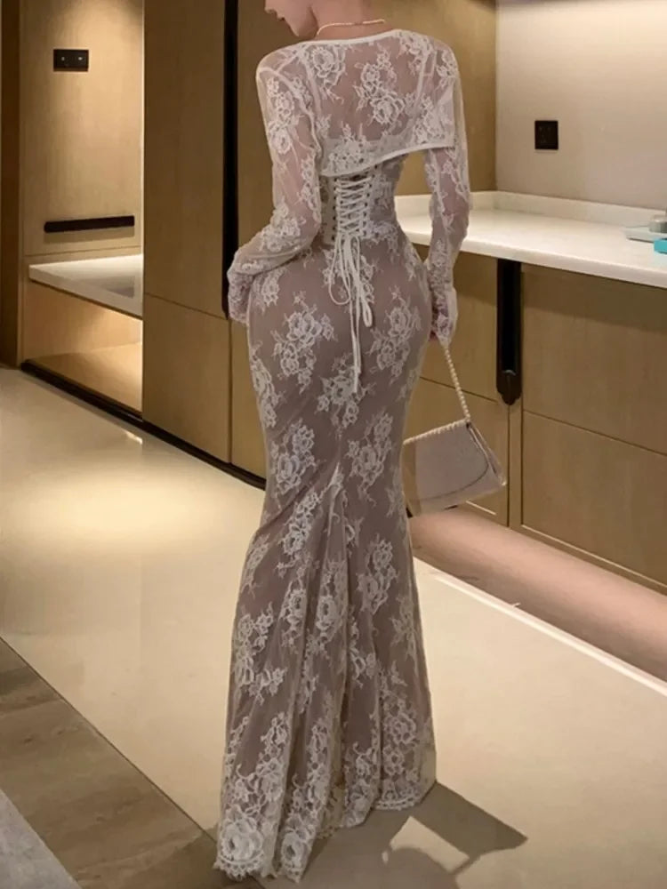 Advbridge Sexy Women Elegant Bodycon Slim Lace Dress Vintage Casual Backless Bandage Party Dress Female Fashion Long Robe Clothes Spring