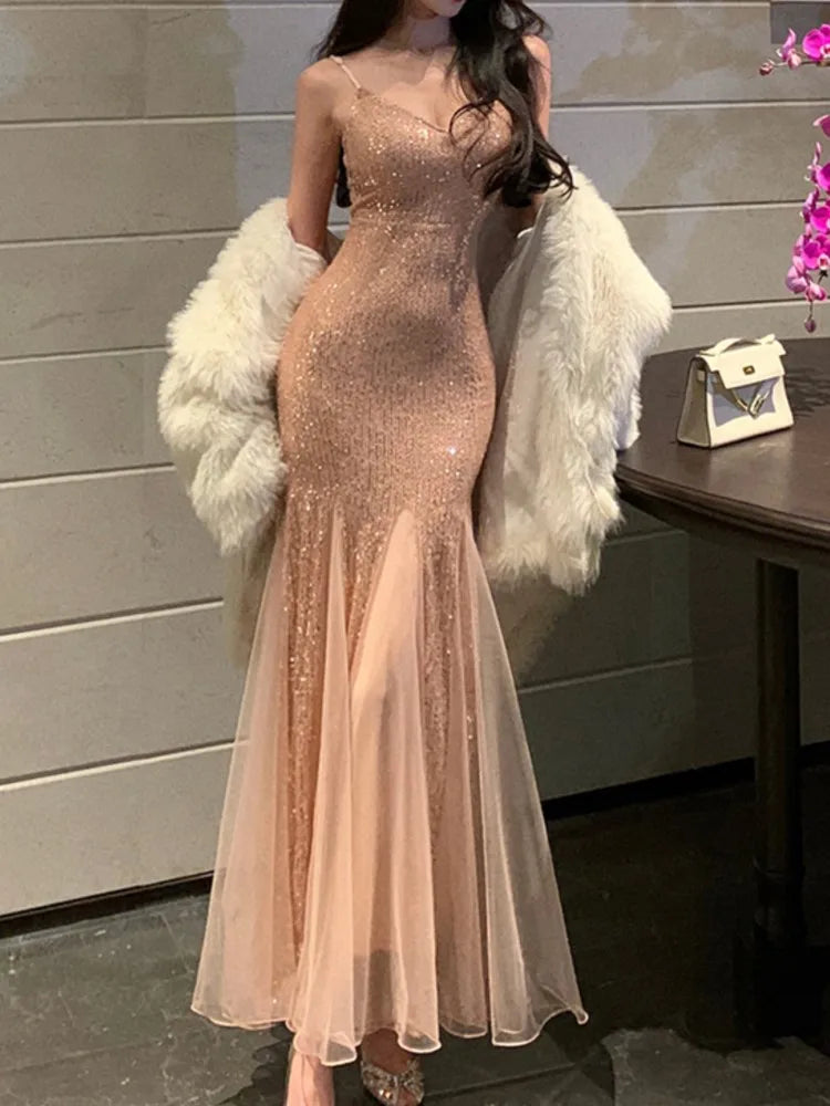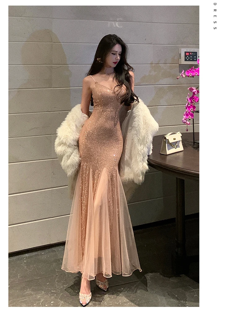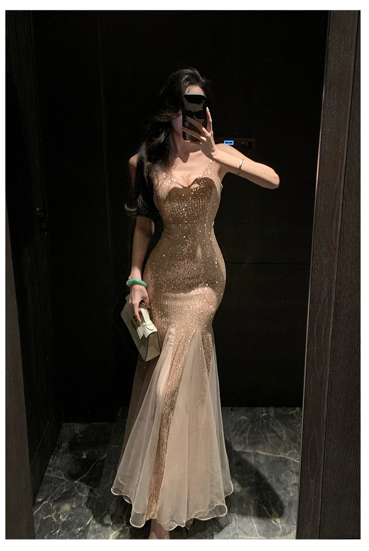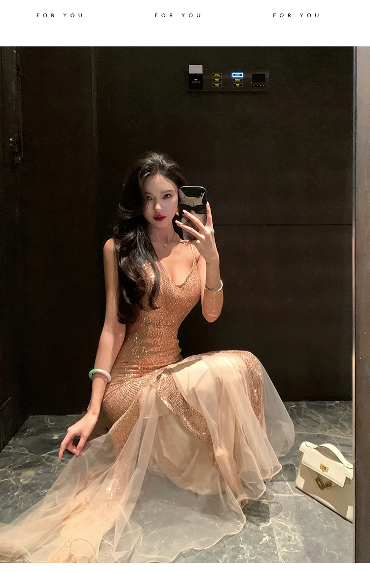 Advbridge Sexy Women Sequin Bodycon Mermaid Dress Sleeveless Slim Mesh Patchwork Party Prom Evening Vestidos Female New Spring Clothes