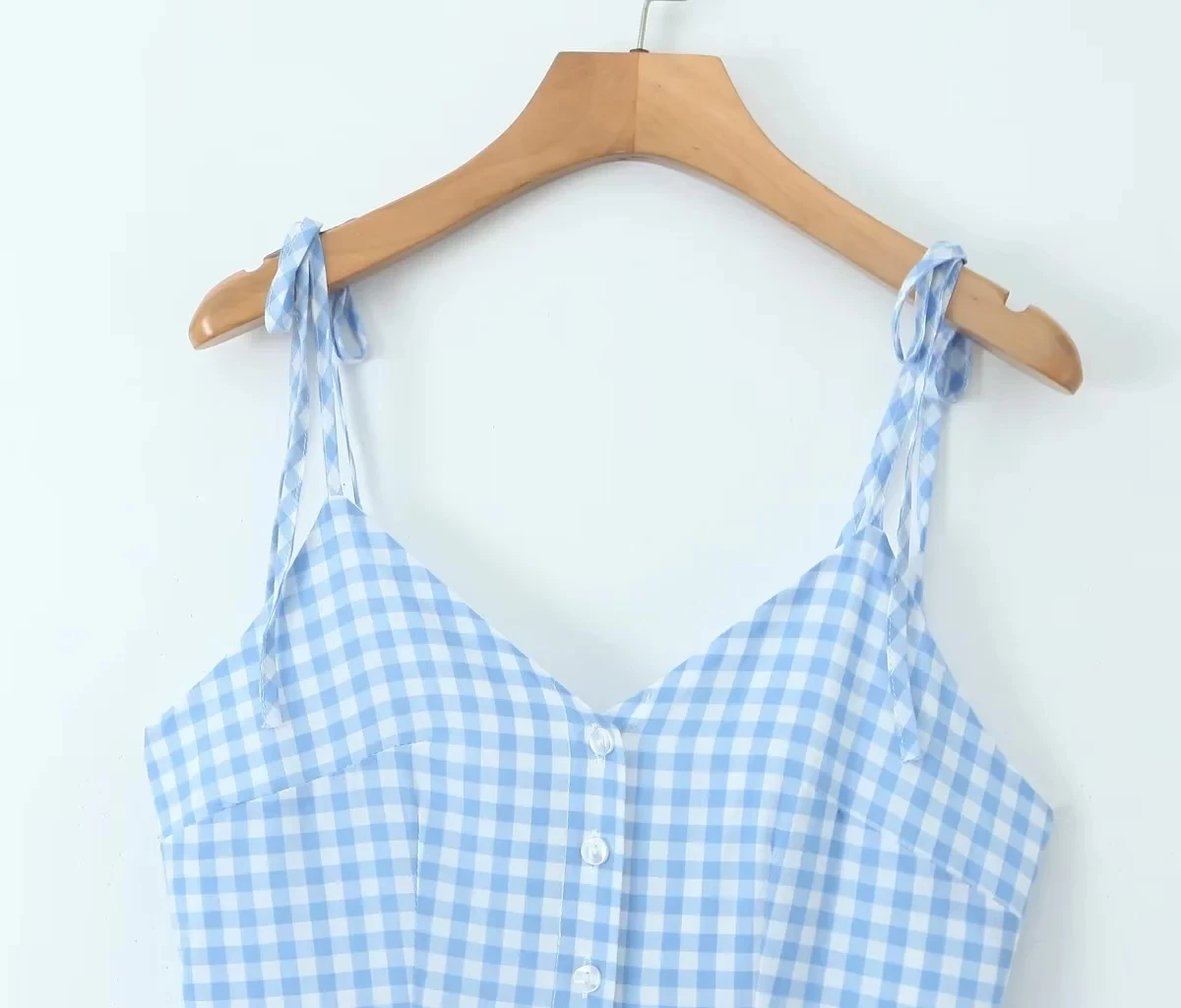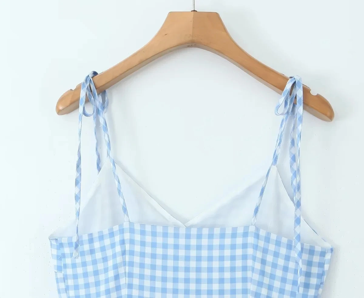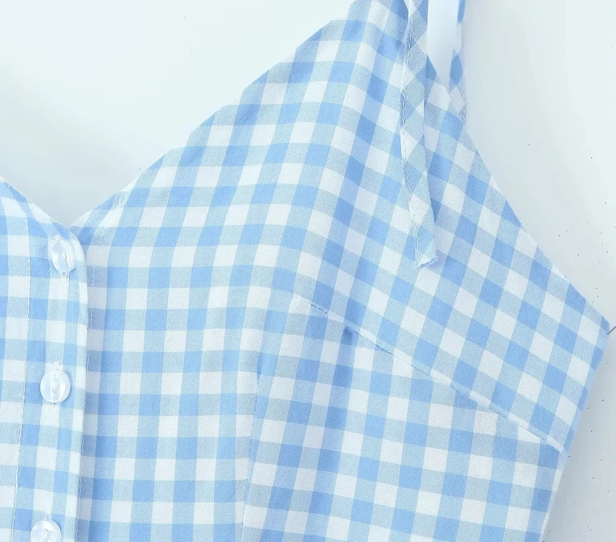 Advbridge Single Breasted Plaid Blue Summer Women Dress Spaghetti Strap Midi Casual Female Vestidos 2024 Cotton Slip Dress New