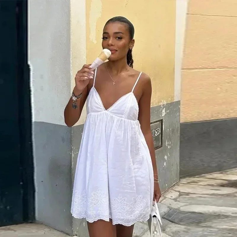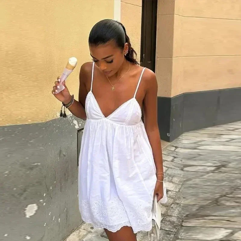 Advbridge Sling V Neck Women Mini Dresses Lace Up Backless Sleeveless Lady Party Dresses 2024 Spring Summer High Waist Sexy Beach Vestidos