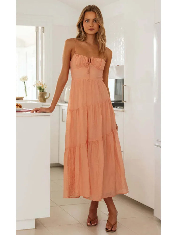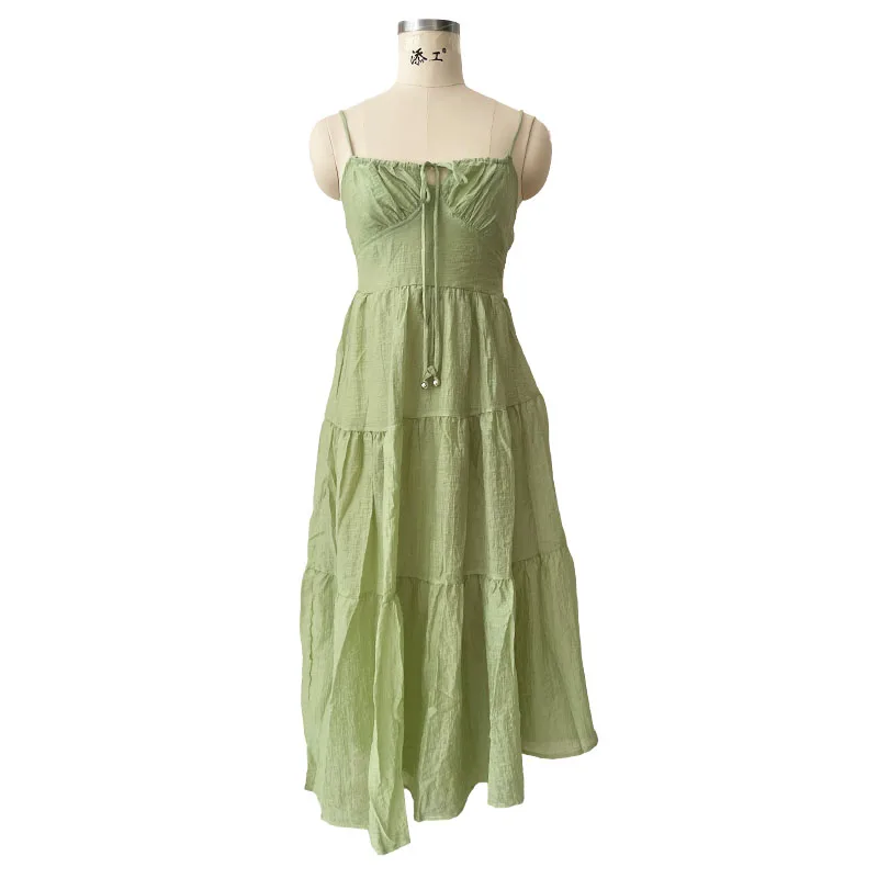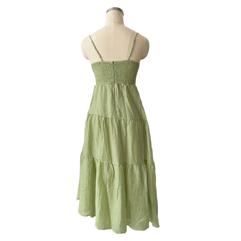 Advbridge Smocked Summer Beach Maxi Dress Women Spaghetti Strap A-line Long Holiday Sundress 2024 Spring Boho Chic Green Vestidos