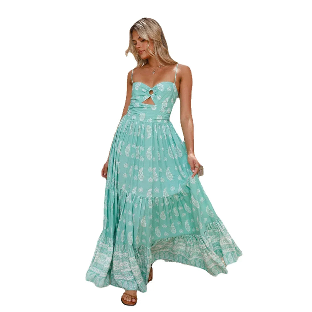 Advbridge Spaghetti Strap Sundress Cut Out Women's Dress Summer Printed Boho Beach Maxi Dress 2024 Paisley Printed A-line Vestidos