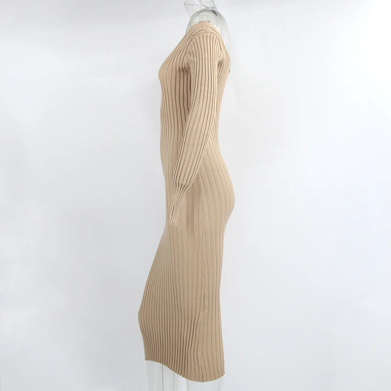 Advbridge Spring Knitted Dress Women V-Neck Long Sleeve Bodycon Sweater Dresses Basic Elastic Casual Skinny Vestidos Black