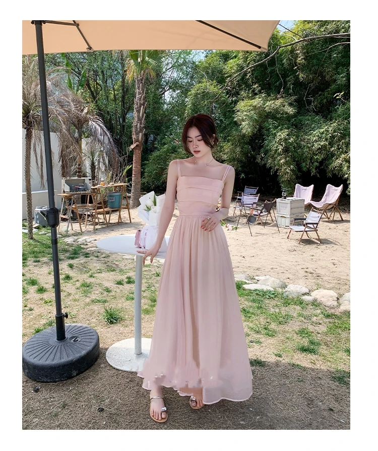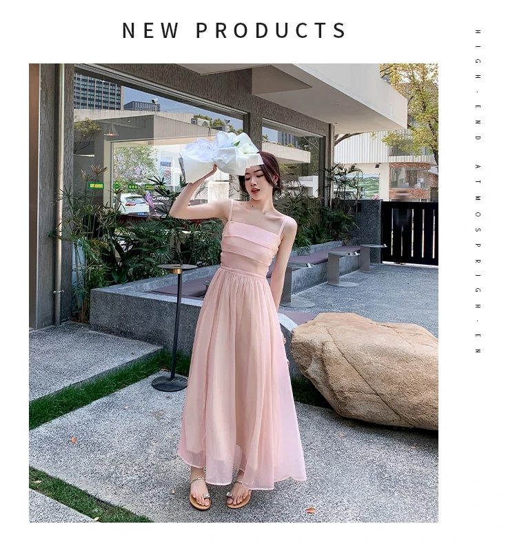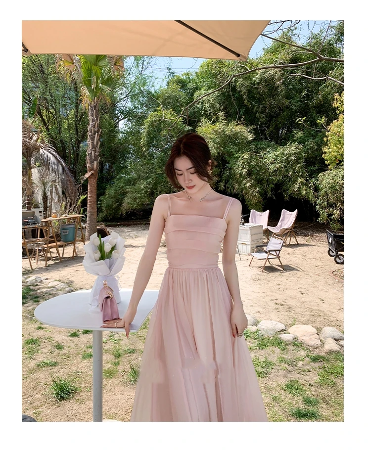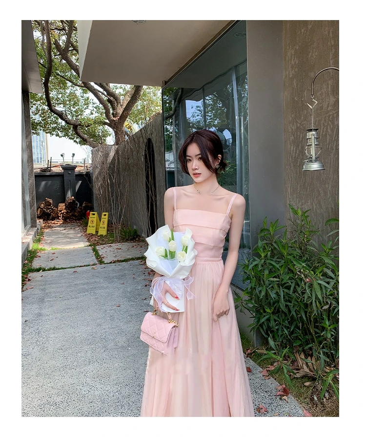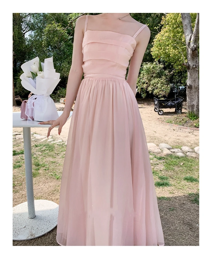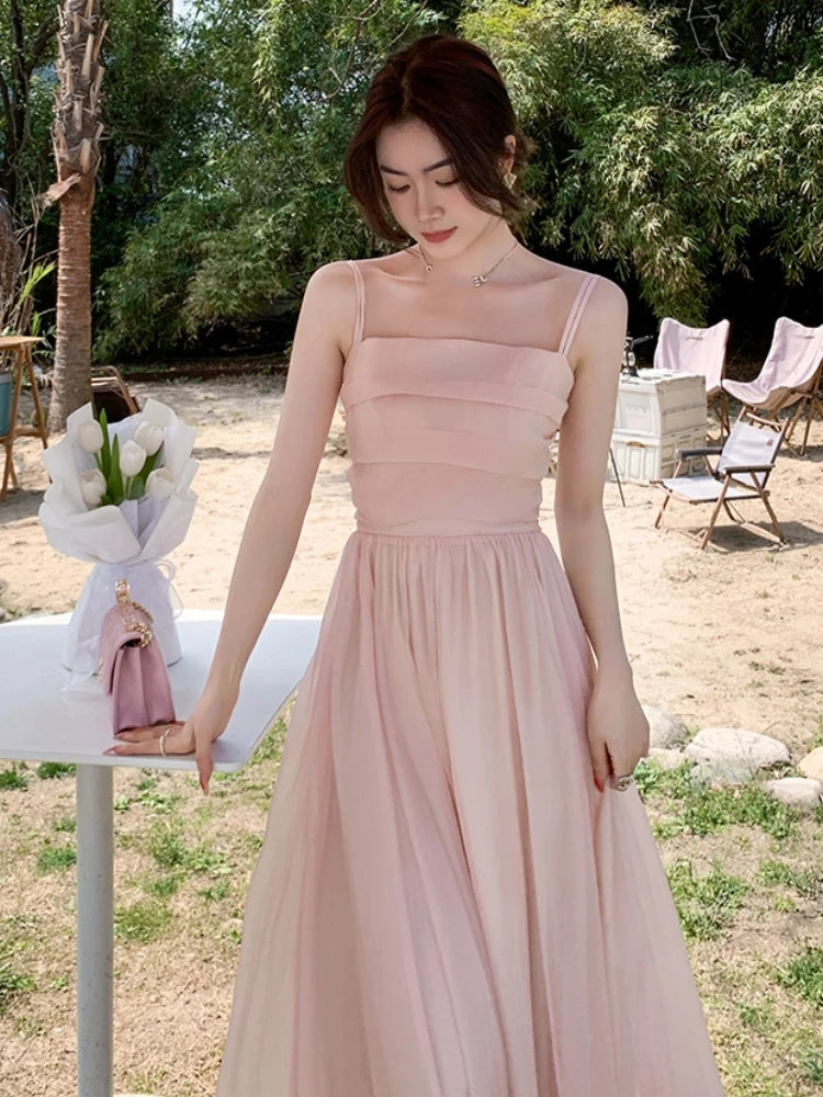 Advbridge Spring Summer New Satin Midi Spaghetti Strap Dresses for Women Pink Dress Wedding Evening Party Dress Prom Robe Vestidos